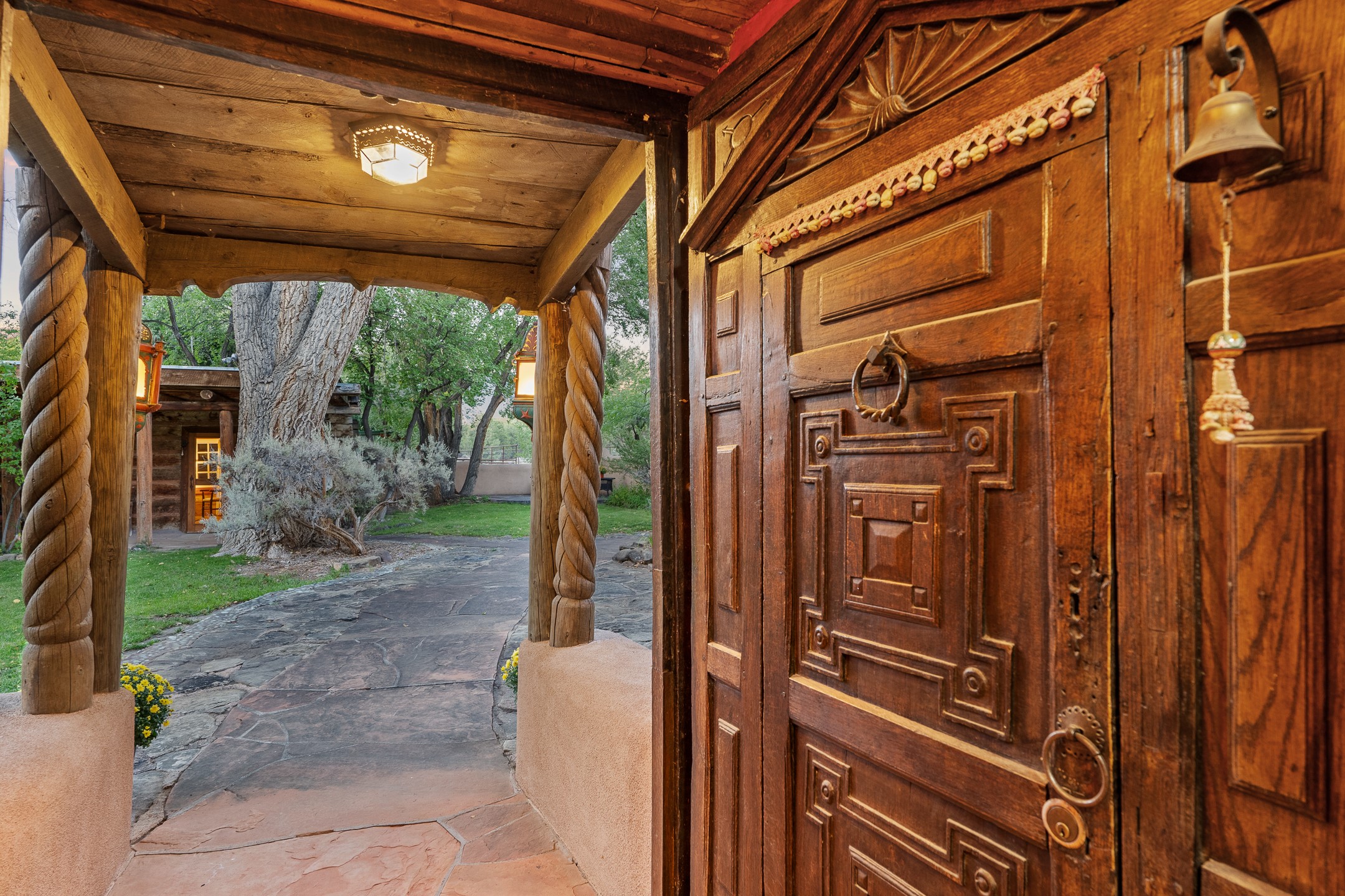 Historic John Young-Hunter Home & Artist's Compound, Taos, New Mexico Private and secluded yet just minutes from town, this rare historic compound is one of Taos' true treasures. Set on 5.17 serene acres with towering shade trees, inviting courtyards, and lush gardens, the property includes a gracious main residence and two guest cottages--a sanctuary for those who value heritage, artistry, and timeless New Mexico beauty. The John Young-Hunter House began in the early 1880's as simple adobe rooms and a log cabin, expanded and lived in over two centuries by a succession of owners, most notably John Young-Hunter, the celebrated Scottish portrait artist who called Taos home for more than fifty years. Part of the legendary circle of artists, writers, and visionaries drawn to Taos beginning in the mid-19th century, Young-Hunter was a close friend of Mabel Dodge and Tony Luhan, who helped him find this two-hundred-year-old adobe soon after his arrival in 1917. Young-Hunter transformed the property with the help of fellow artists: Nicolai Fechin carved decorative doors, lintels, and columns; Leon Gaspard designed and forged the distinctive ironwork and gates; and Henry Mercer, founder of the Moravian Pottery in Pennsylvania, contributed prototype tiles that are still visible today. Young-Hunter himself added painted details, including the Scottish thistle and family coat of arms on the west portal. Fully restored to provide modern amenities while retaining its historic soul, the home offers rich character and artistic provenance rarely found in today's market. The small south side studio, believed to be Young-Hunter's original workspace, has been sensitively modernized. Historic estates of this significance are seldom offered for sale. This is a remarkable opportunity for the discerning buyer seeking a home deeply woven into the artistic legacy of Taos--a cabin built in approximately 1850.