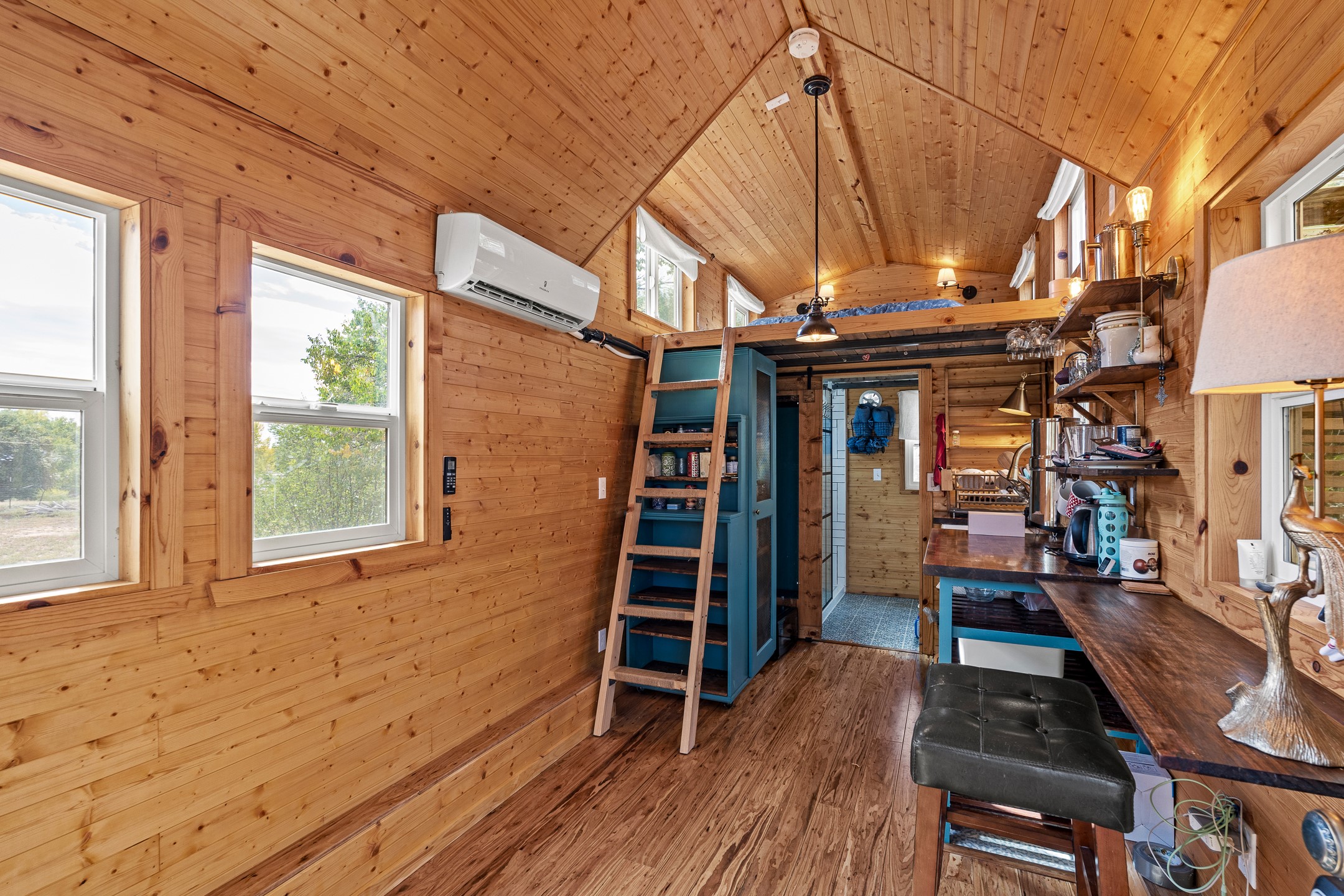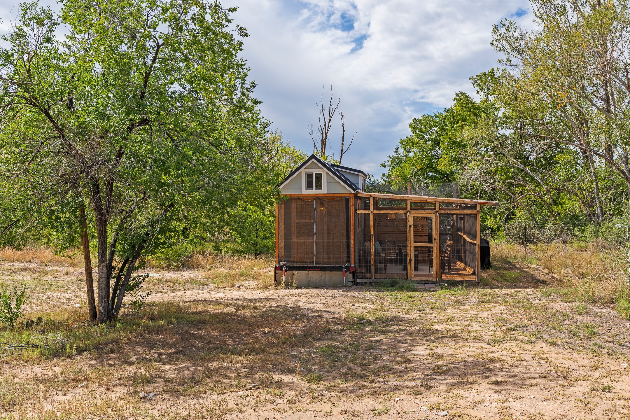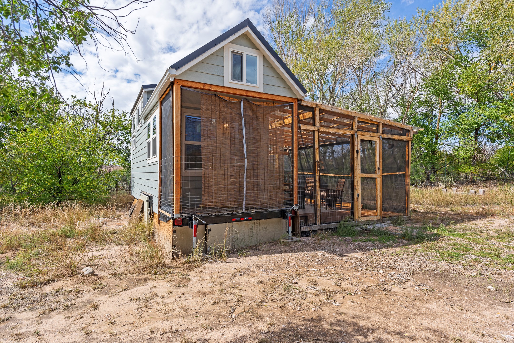 Escape to this beautifully crafted 28' x 8' tiny home, offering the perfect balance of comfort, efficiency, and seclusion. Nestled just a short drive from Santa Fe, Los Alamos, and Espaola, this thoughtfully designed retreat is functional for full-time living, a weekend getaway, or an off-grid workspace. Step inside to discover a bright and functional layout featuring a well-appointed kitchenette, a 3/4 bath connected to its own septic system, and a 72 sq ft sleeping loft perfect for restful nights. The home is fully powered by solar energy and equipped with a mini-split system for year-round heating and cooling, along with a high-efficiency water heater to keep utilities low and comfort high. Whether you're seeking solitude, sustainability, or a simplified lifestyle, this tiny home offers it all in a peaceful and private setting -- with the convenience of nearby cities just minutes away.