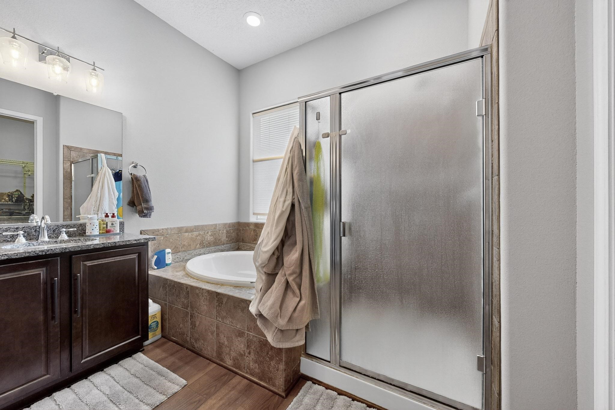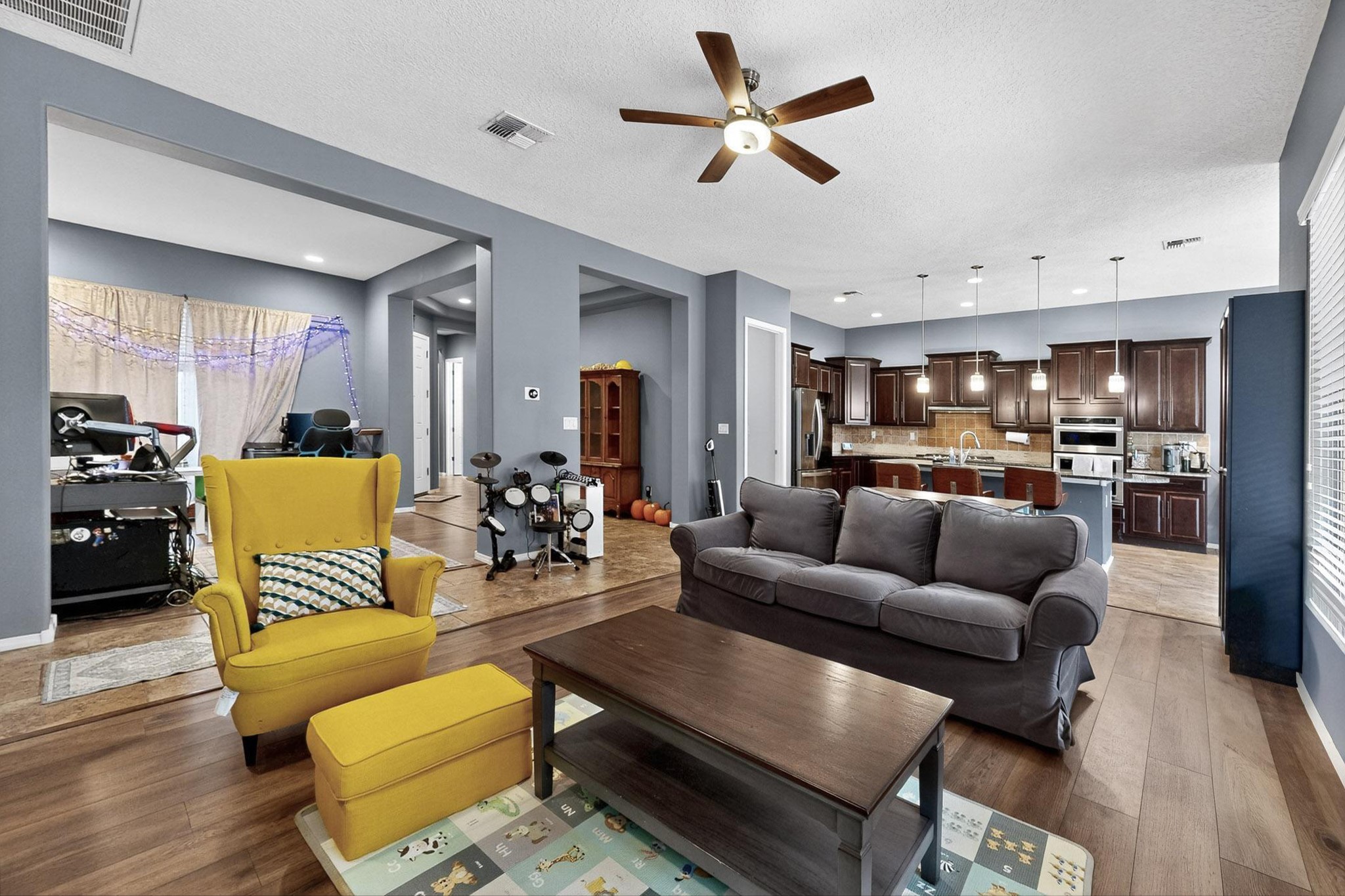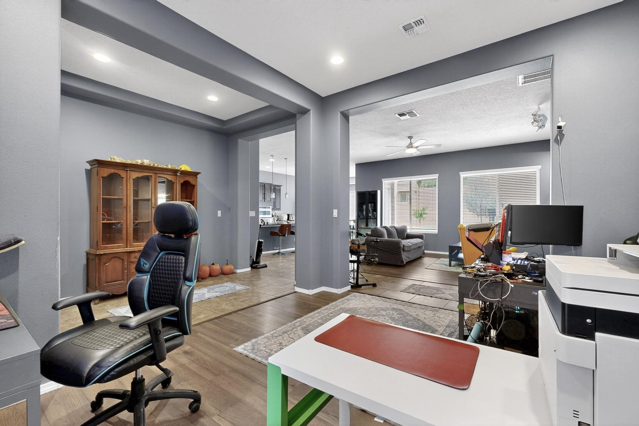 Nestled in the esteemed Loma Colorado community, this stunning single-story residence is an architectural sanctuary, ready for immediate occupancy. An open-plan living space flows effortlessly, anchored by a gourmet kitchen featuring granite countertops and stainless steel appliances & oversized island. Glass doors invite the outdoors in, leading to a sprawling, professionally landscaped backyard. This private retreat boasts custom-installed patios, sophisticated raised brick walls, and a serene water feature, designed for elegant al fresco living. Luxury Vinyl Flooring (2022) graces the master suite, living, and dining areas. The master bath is a spa-like escape. A dedicated flex space, perfect as an office or gym, showcases chic bamboo flooring. A 3-car garage and huge laundry room.