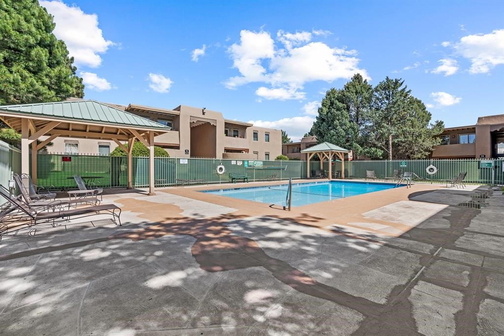 Live a Turnkey lifestyle in this super cute and well-priced 2 bedroom, 2 bathroom, second floor San Mateo condo! Enter the spacious, open concept living and dining area with gorgeous afternoon sunlight. There's laundry in the unit, and the primary suite is well equipped with a full bath and double closets. The unit is privately situated towards the back of the complex. A quick walk to the on-site gym and pool will have you healthy and relaxed year round! HOA dues cover the 24 hour gate, stucco, roof, and maintenance of common areas for additional peace of mind. Centrally located, you're a quick 5 minute drive to downtown or Southside shopping. Plus, walk or bike over to the new Zia Railrunner station for easy rides into downtown Santa Fe or Albuquerque. A new multi-use complex, the Zia Station, which will include restaurants and shopping, is currently under construction there as well. Close to the Rail Trail, you have access to miles of walking and biking trails as well. Live an easy lifestyle in this cute condo that has it all! Schedule a showing today!