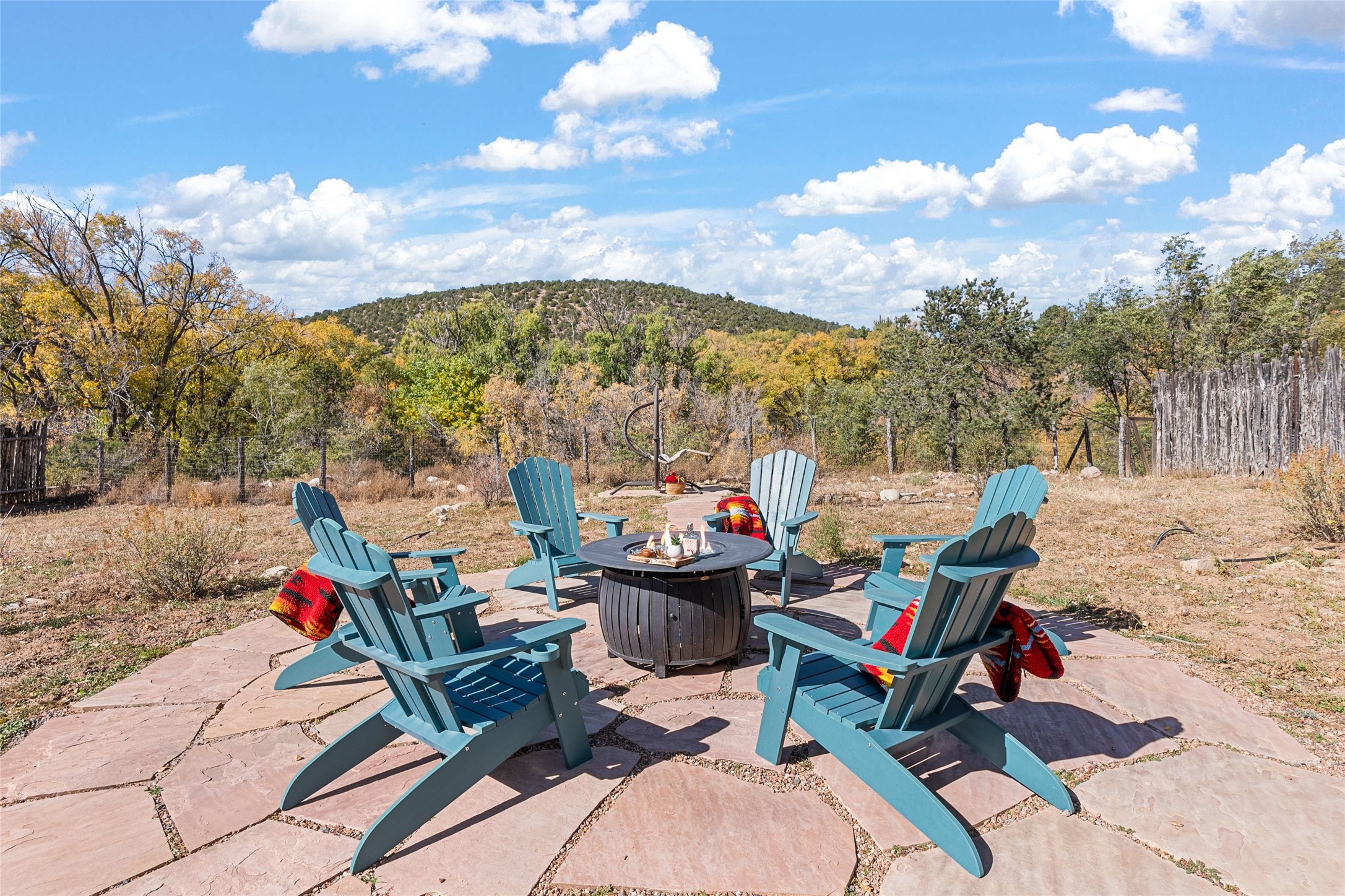 Overlooking the serene Santa Fe River, Historic Upper Canyon Road Santa Fe Eastside 3-bedroom, 2.5-bath adobe home with wonderful mountain views. Potential for rental income upon receipt of a City of Santa Fe Short Term Rental permit. This property includes two separately deeded lots, offering ample space and endless possibilities, whether you envision a guest house, studio, or an expansive garden retreat. High end design features include white oak flooring that flows throughout the open-concept living, dining, and kitchen areas, providing a warm and inviting atmosphere. Highlighted by three charming fireplaces and custom alder cabinets, the home seamlessly blends comfort and sophistication. The light-filled kitchen is appointed with top-of-the-line Wolf gas range, Sub-Zero refrigerator, and a Sub-Zero wine cooler, making it ideal for both everyday cooking and entertaining. Primary suite features a sitting area, fireplace, and private access to the outdoor patio. The en-suite bath is a luxurious escape, complete with a Kohler Tea-for-Two tub and a spacious walk-in shower. Two additional guest bedrooms share a bath and a cozy office area, perfect for remote work or creative pursuits. Step outside to enjoy multiple outdoor spaces that showcase breathtaking river and mountain views. To top it all off, a hot tub awaits you for soothing evenings under the stars. Rare one-car garage on Upper Canyon Rd. Coveted location close to the Cerro Gordo Trailhead, restaurants and galleries of Canyon Rd and the Santa Fe Plaza.