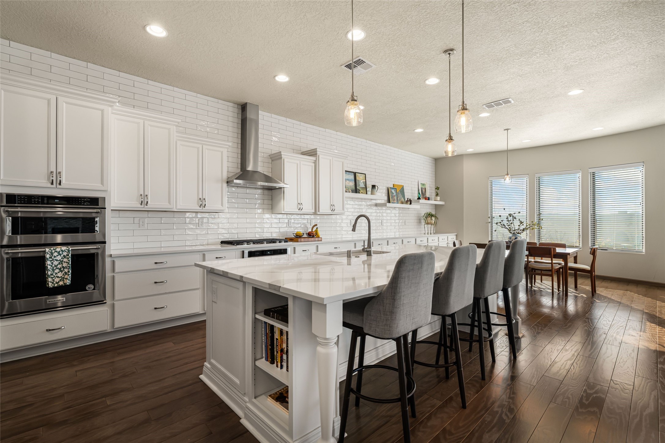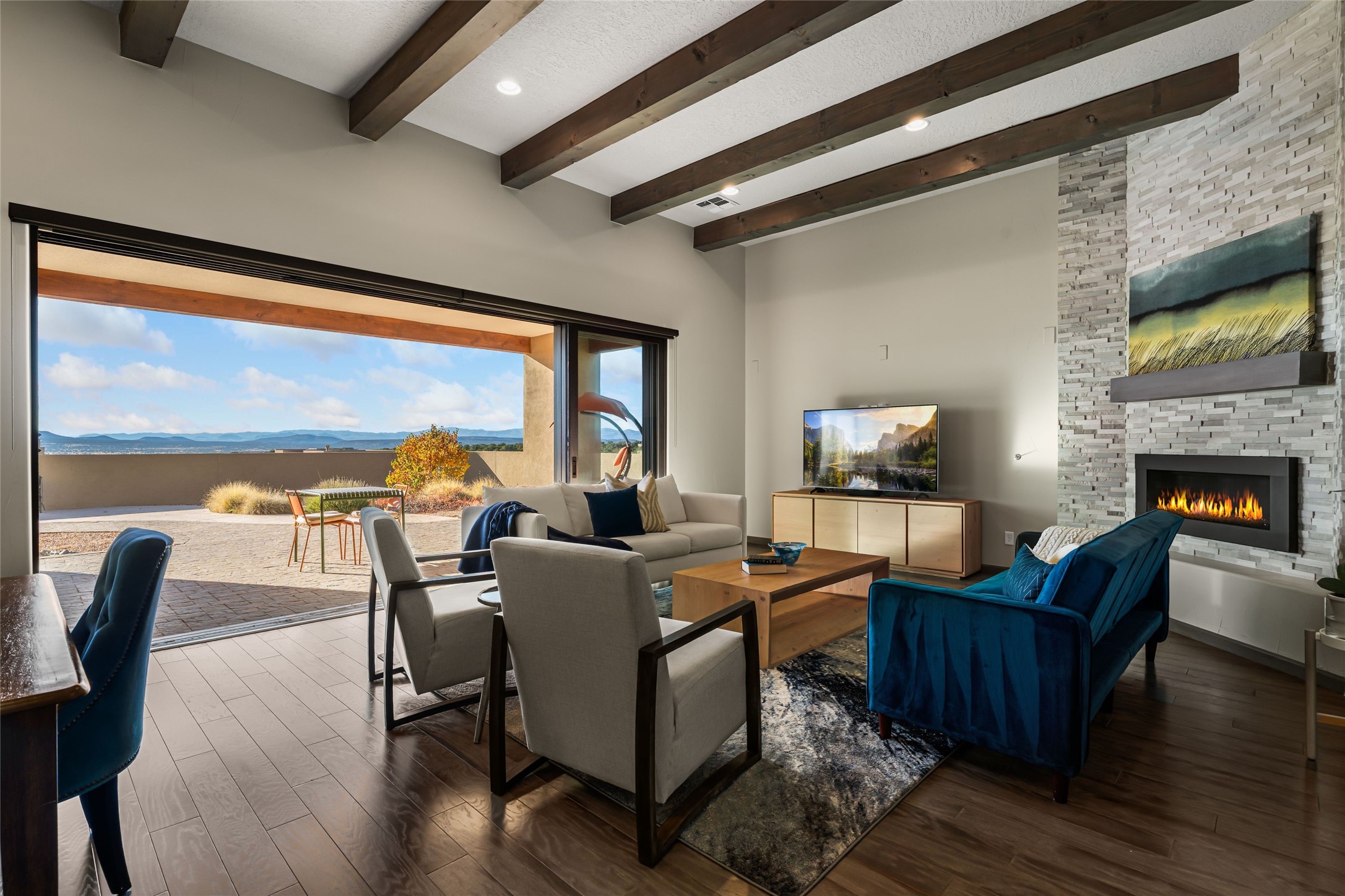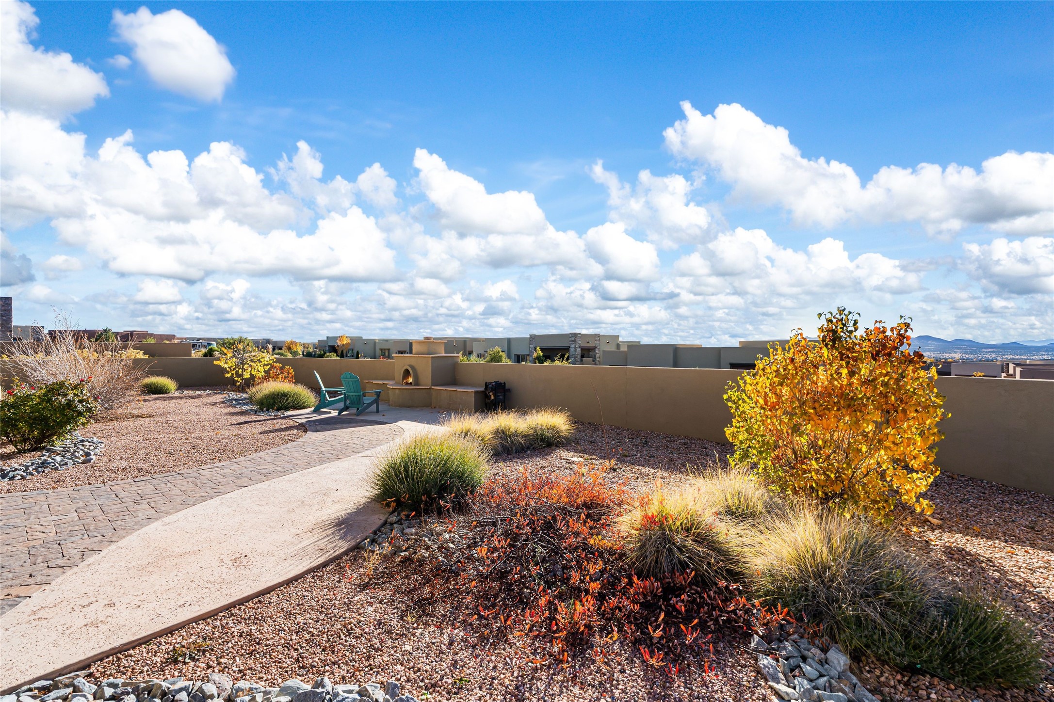 Set in Las Terrazas at Las Campanas, this beautifully maintained home enjoys expansive Jemez Mountain views and an easy indoor-outdoor connection. Light-filled living and dining spaces open to a deep portal with a kiva fireplace, ideal for sunset gatherings. The kitchen centers on a generous island with caf seating and a butler's pantry. Three ensuite bedrooms, an office or media room and thoughtful details such as quartz counters, hardwood floors, crown molding and a smarthome system combine comfort with quality. Landscaped with drip irrigation and certified Silver by Build Green NM. Club at Las Campanas memberships optional.