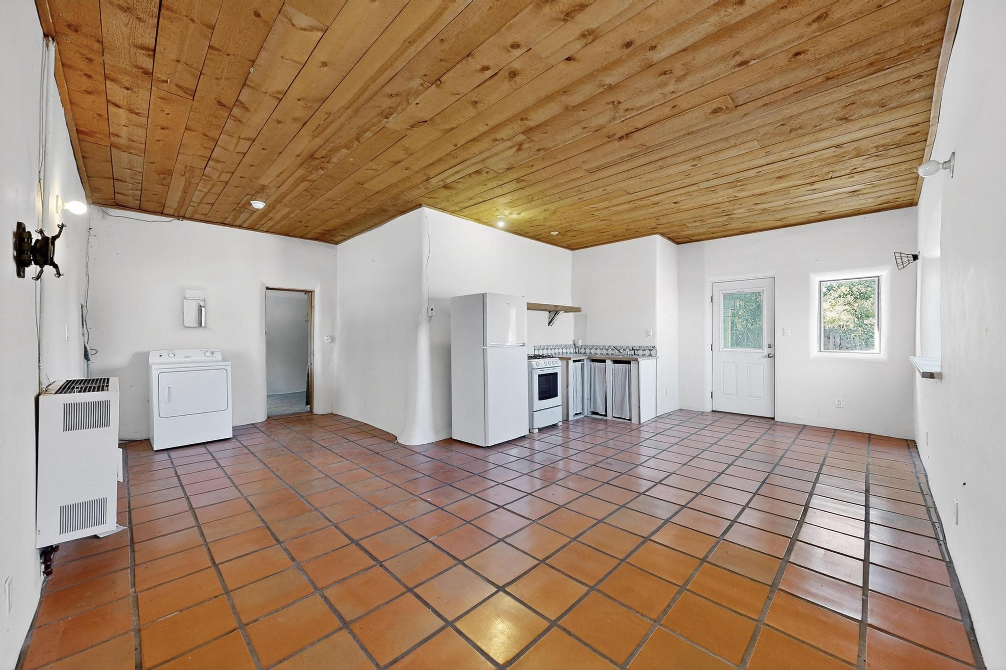 Historic Adobe Retreat with Private Pond in La CienegaTucked away in the heart of the historic village of La Cienega, this one-of-a-kind adobe home exudes timeless Southwestern charm, rich history, and a serene natural setting. Originally built in the 1940s and lovingly owned since 1976, the property reflects nearly 50 years of thoughtful additions, creativity, and connection to the land.Set on .74 acres, the home features 2 bedrooms and 1 bath in the main house, plus a private attached mother-in-law suite--ideal as a guest casita, studio, or home office--with its own entrance, kitchenette, full bath, and fenced yard. The main home offers a spacious living room, full kitchen, and large bath with a clawfoot tub. Classic adobe craftsmanship shines throughout, highlighted by four traditional kiva fireplaces that add warmth and ambiance.Expanded over time, the home includes a sunken living room with pond views, an enlarged kitchen and bedroom, and a covered outdoor summer kitchen with patios, porches, and an outdoor fireplace--perfect for entertaining or relaxing under the stars.At the heart of the property lies a 100-year-old spring-fed pond with a sunning deck and aeration system, surrounded by mature trees, native grasses, and seasonal blooms. Whether for swimming, fishing, floating, or simply soaking in serenity, it's a truly special retreat.Conveniently located just 20-25 minutes from downtown Santa Fe and near the airport, the home offers peaceful country living with city access. Ideally positioned between Ojo Santa Fe Spa & Resort and Rancho de las Golondrinas.Recent upgrades include roof improvements by Northway Roofing (warranty through Feb 2027) and well maintenance by Luhan Water Well Services (June 2025). Offered as-is, this is a rare opportunity to own and personalize a historic adobe in one of Northern New Mexico's most cherished communities.