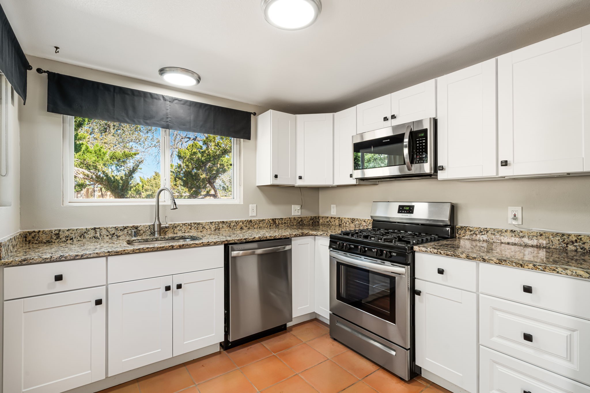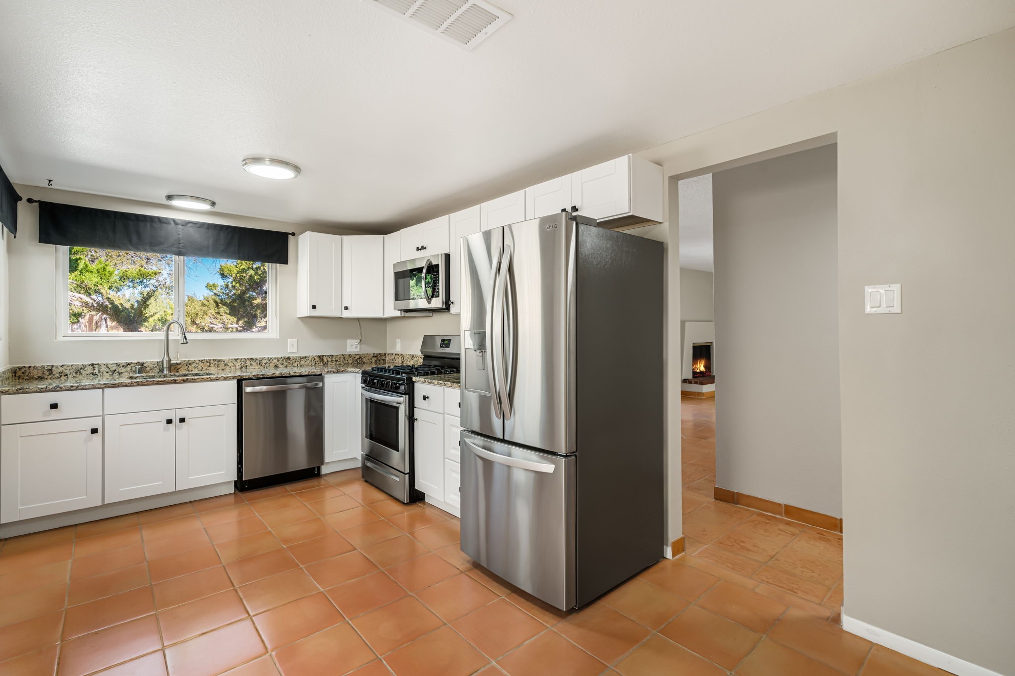 Love golfing and fishing? The Village of Cochiti Lake is perfect for you with one of Northern New Mexico's best public golf courses and fantastic fishing. This impeccably maintained Cochiti Lake home is close to both with lovely landscaping and backyard views of the Jemez Mountains. Featuring two-bedrooms, two baths, and a two-car garage, this lovely home is on a quiet cul-de-sac with an inviting open plan living and dining area and gas log fireplace. Flooring throughout the home is lovely and well-maintained Saltillo tile and the kitchen is updated with granite countertops and updated appliances. The living room opens onto an easy-to-maintain back yard that is fenced. Pride of ownership is evident throughout the home.