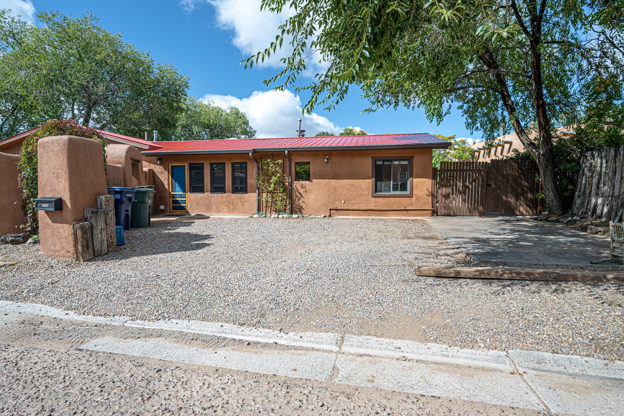 This quintessential Santa Fe style property offering Kiva fireplace, willow doors, Talavera and Saltillo tile, nichos, a walled courtyard, and off-street parking is tucked away in the much sought after Railyard Arts District. The setting is peaceful and quiet yet only a quick 5 minute jaunt to The Violet Crown, Farmer's Market, park, outdoor concerts, coffee shop, pubs, restaurants, and the vibrant vibe offered along Guadalupe Street! About a 15 minute walk to The Santa Fe Plaza where you will find work shopping, class dining, and galleries along with stellar museums. Walking and cycling trails are minutes away making this the perfect urban home. One can even hop on the train for a ride to Albuquerque! Opportunities Abound for this property which features a home with attached guest house. You can live in one unit and rent the other or rent them both! There is even room to add a casita! Easy access to St. Francis Drive is a plus for those who commute to Los Alamos! Both units offer office space for those who work from home. A Must See!