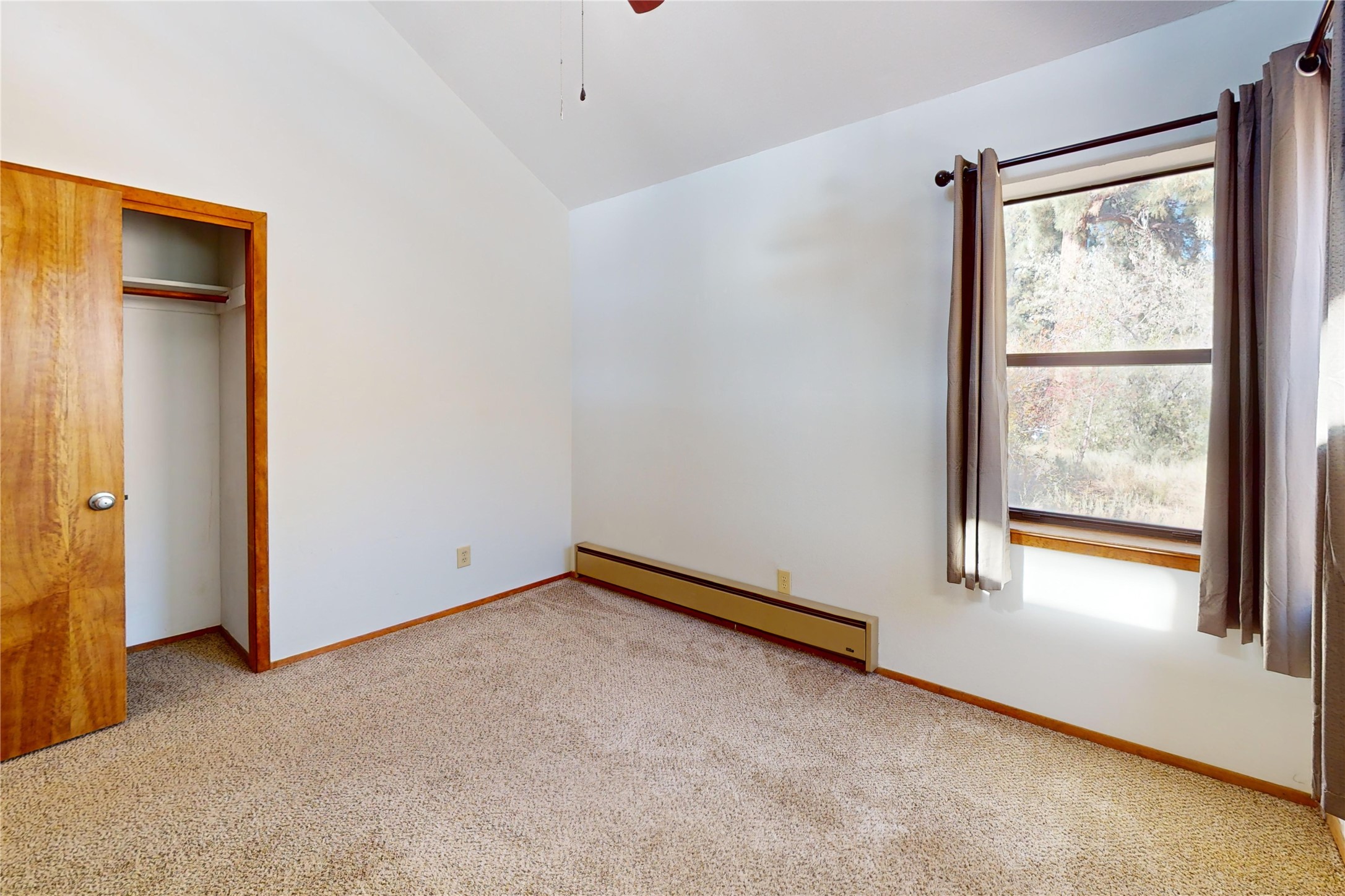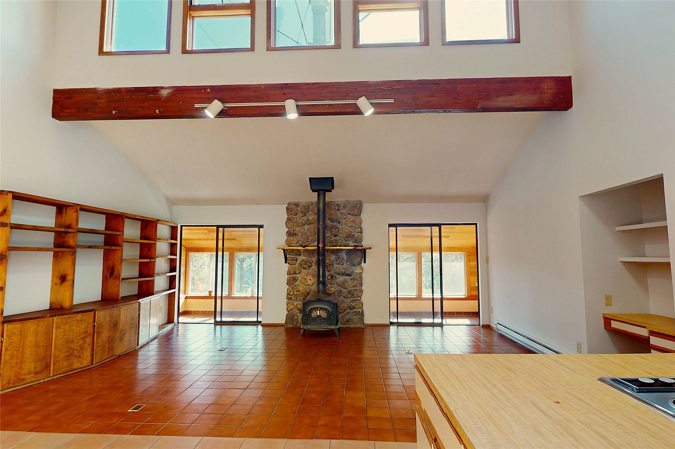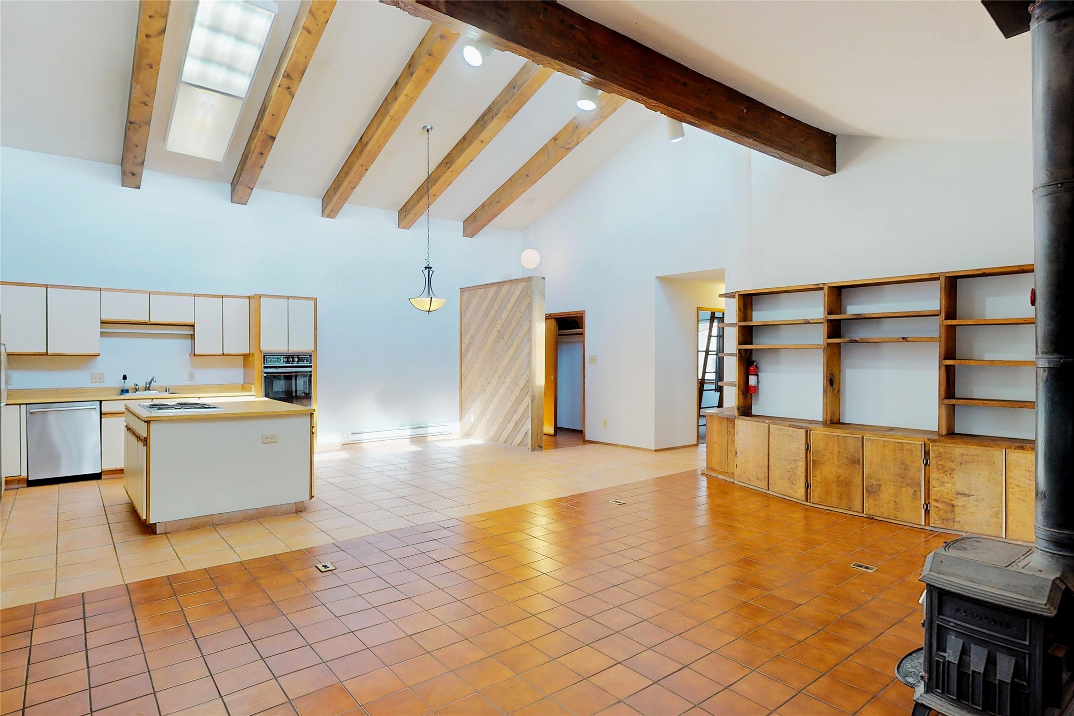 Set in a quiet North Mesa neighborhood at the end of San Ildefonso, this inviting home offers the privacy and views of canyon living along with the practicality of a large fenced yard--perfect for outdoor living and entertaining. This 3-bedroom, 2-bath home provides the ideal canvas for a dream lifestyle. Upon entry, you're welcomed by soaring ceilings, abundant natural light, and a sense of openness and serenity. The heart of the home is the kitchen and living area, where a wood-burning stove framed by an impressive stone wall creates a cozy focal point for relaxing evenings. Tile floors add warmth and charm throughout the main living spaces. Sliding glass doors open to a sunroom that seamlessly blends indoor and outdoor living, inviting you to enjoy the natural surroundings year-round. The primary suite includes a bedroom, a separate office, a walk-in closet, and an en-suite bath. Two additional bedrooms share a hallway bath with double sinks. One bedroom offers outstanding canyon views, while the other features a loft area with windows toward the canyon that provide an open feeling and lots of natural light. The loft is ideal for storage or additional living space. A large laundry/mudroom provides plenty of storage and has direct access to the two-car garage. Throughout the home, you'll find thoughtful details such as built-in shelving, exposed wooden beams, and architectural character that add both beauty and functionality. This home offers a lifestyle where you can create lasting memories, entertain friends, and enjoy the beauty of Los Alamos canyon living. Don't miss this opportunity to elevate your everyday experience.