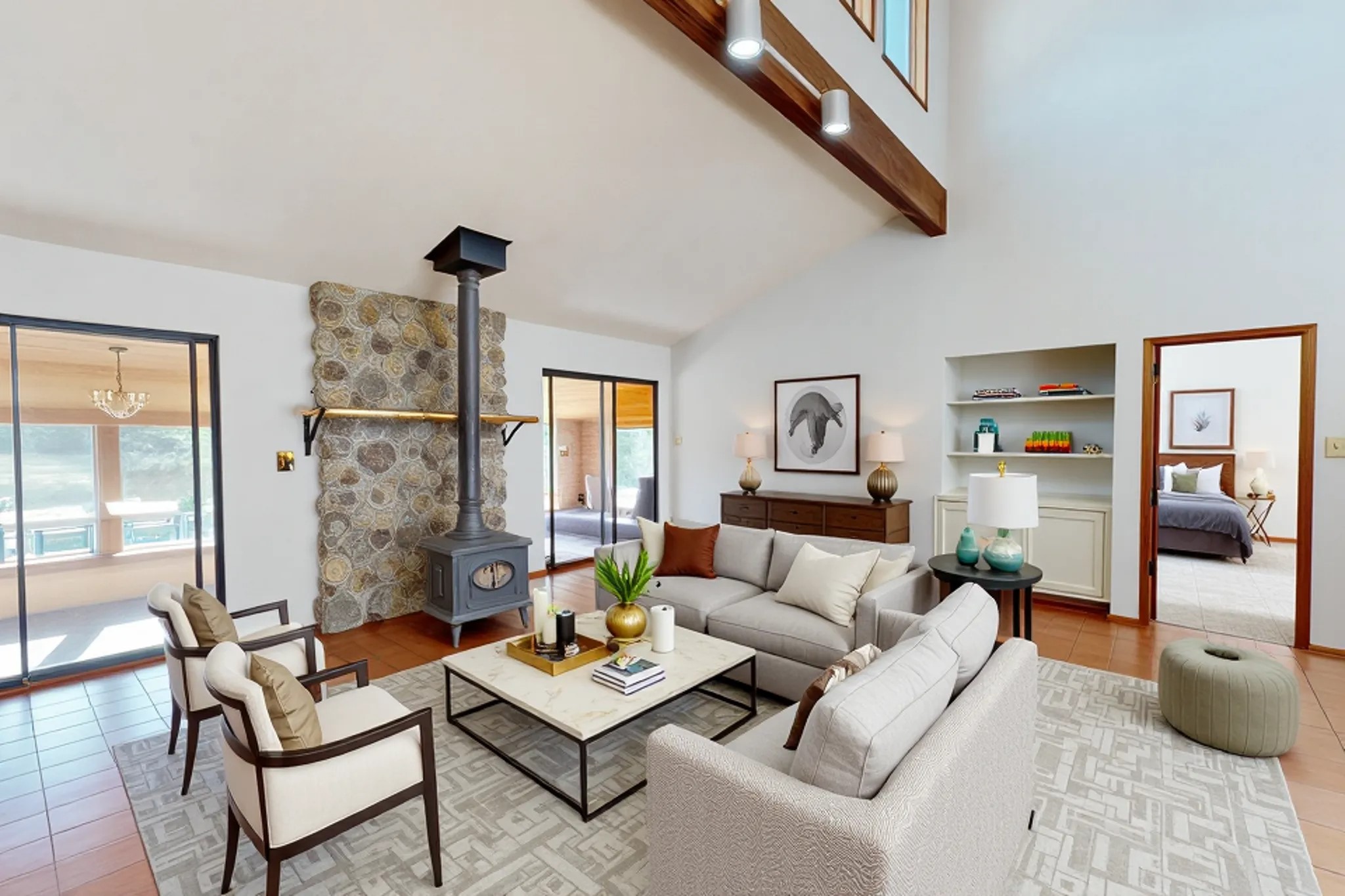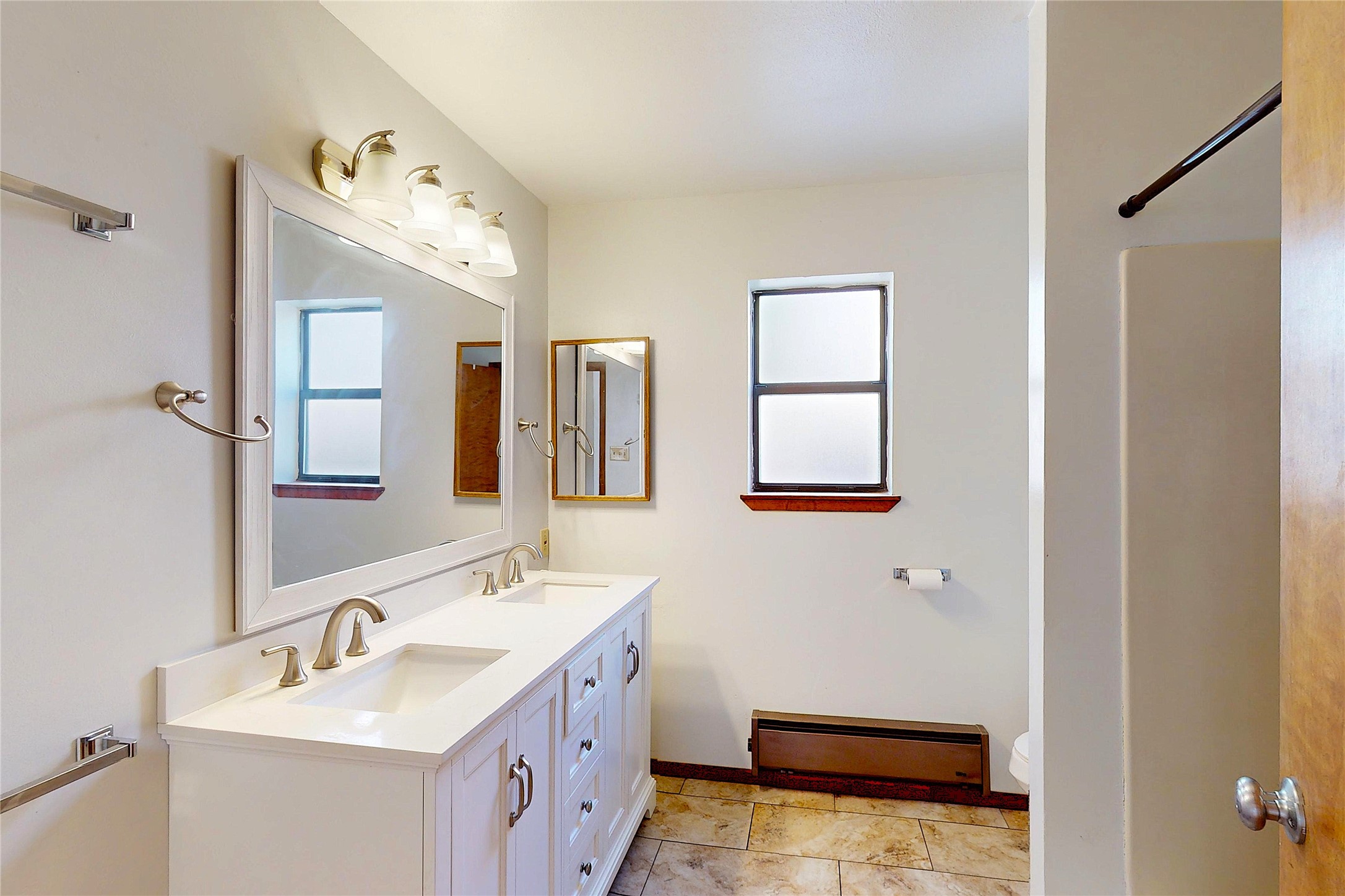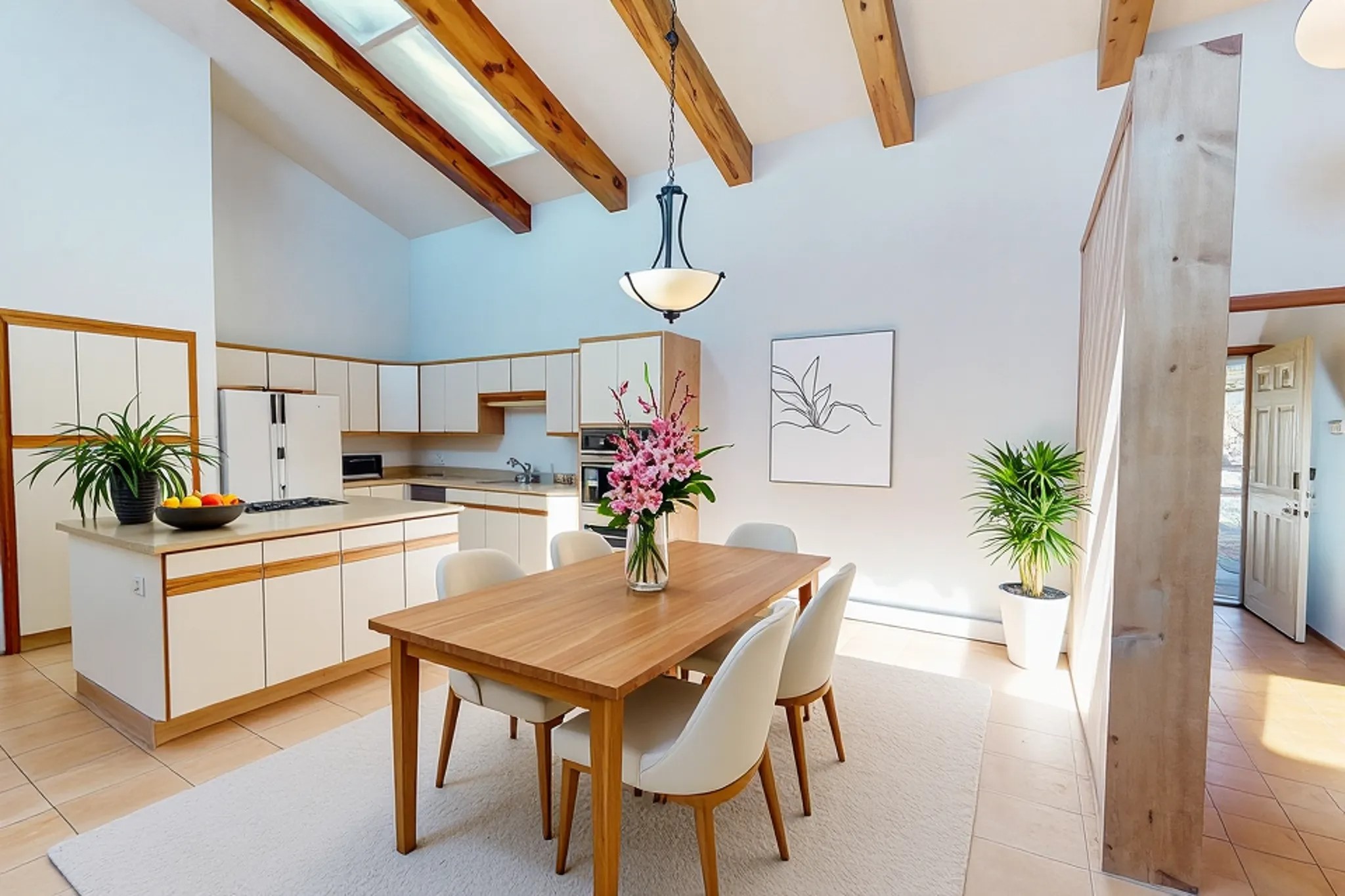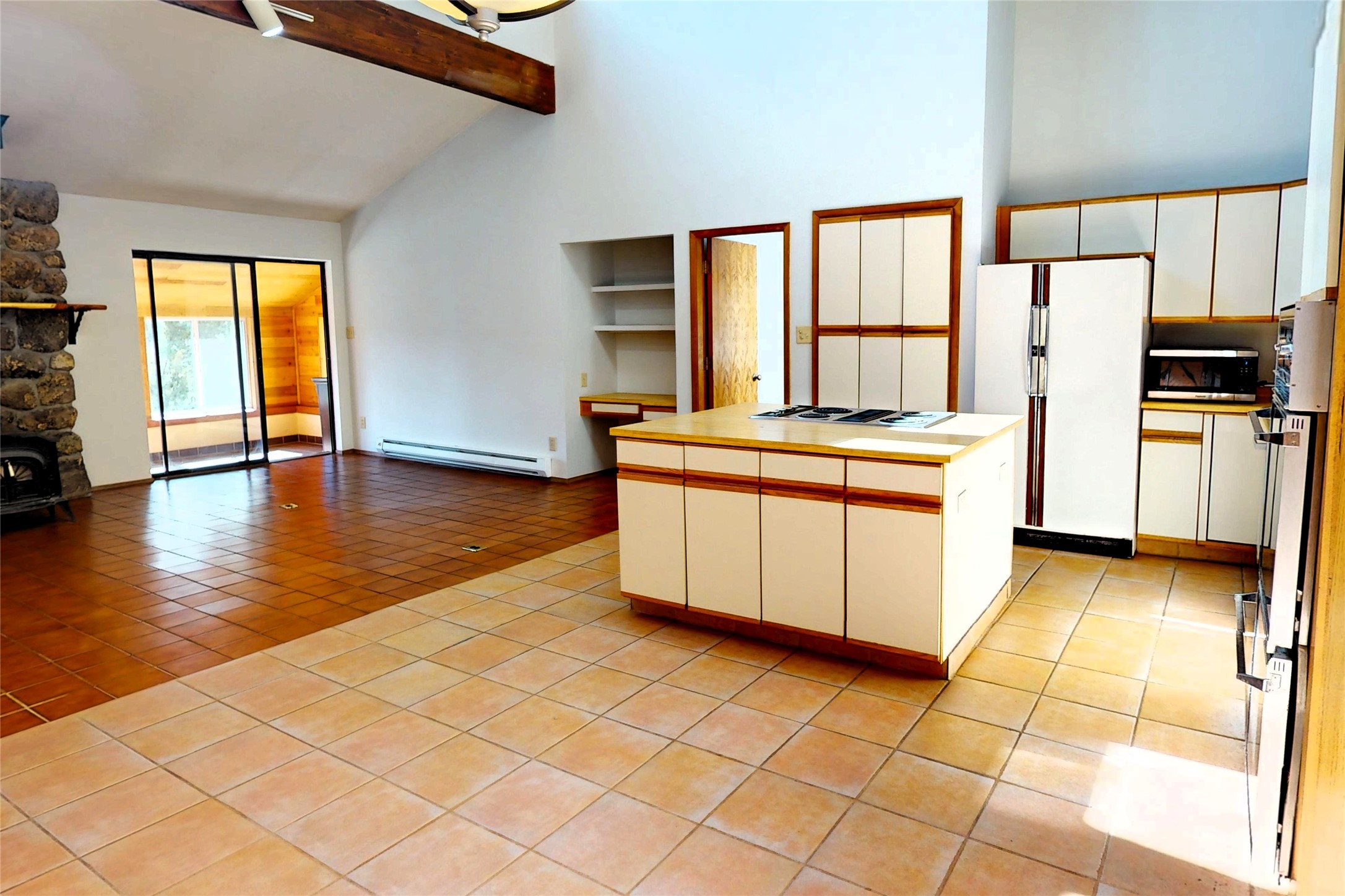 Set in a quiet North Mesa neighborhood at the end of San Ildefonso, this inviting home offers the privacy and views of canyon living along with the practicality of a large fenced yard--perfect for outdoor living and entertaining. This 3-bedroom, 2-bath home provides the ideal canvas for a dream lifestyle. Upon entry, you're welcomed by soaring ceilings, abundant natural light, and a sense of openness and serenity. The heart of the home is the kitchen and living area, where a wood-burning stove framed by an impressive stone wall creates a cozy focal point for relaxing evenings. Tile floors add warmth and charm throughout the main living spaces. Sliding glass doors open to a sunroom that seamlessly blends indoor and outdoor living, inviting you to enjoy the natural surroundings year-round. The primary suite includes a bedroom, a separate office, a walk-in closet, and an en-suite bath. Two additional bedrooms share a hallway bath with double sinks. One bedroom offers outstanding canyon views, while the other features a loft area with windows toward the canyon that provide an open feeling and lots of natural light. The loft is ideal for storage or additional living space. A large laundry/mudroom provides plenty of storage and has direct access to the two-car garage. Throughout the home, you'll find thoughtful details such as built-in shelving, exposed wooden beams, and architectural character that add both beauty and functionality. This home offers a lifestyle where you can create lasting memories, entertain friends, and enjoy the beauty of Los Alamos canyon living. Don't miss this opportunity to elevate your everyday experience.