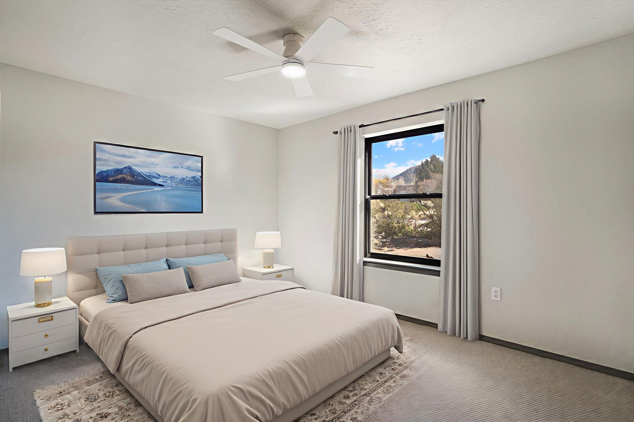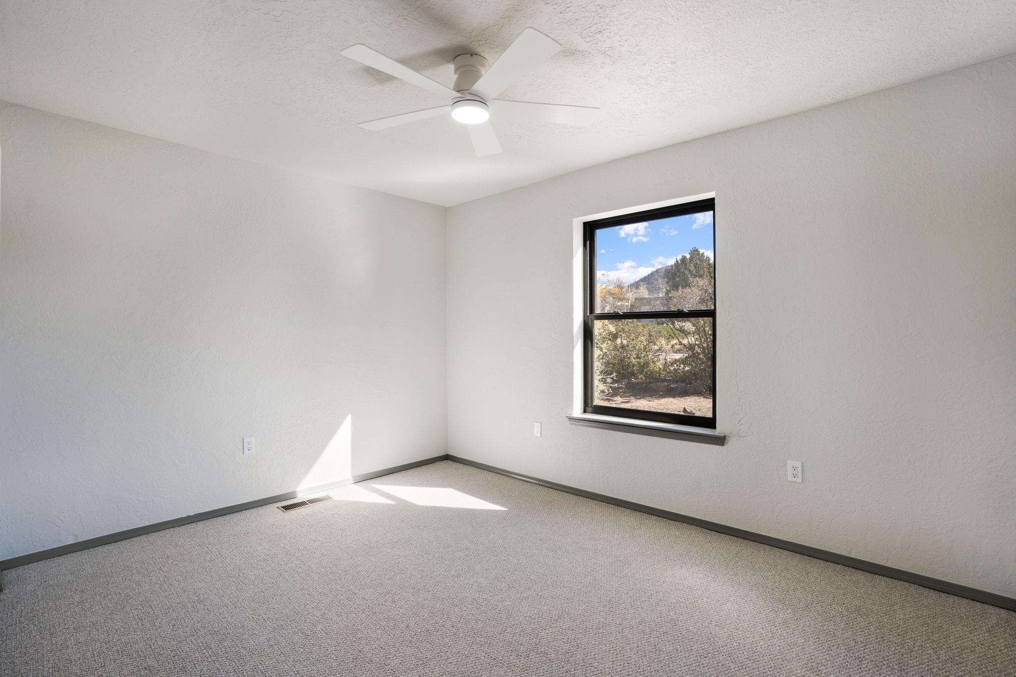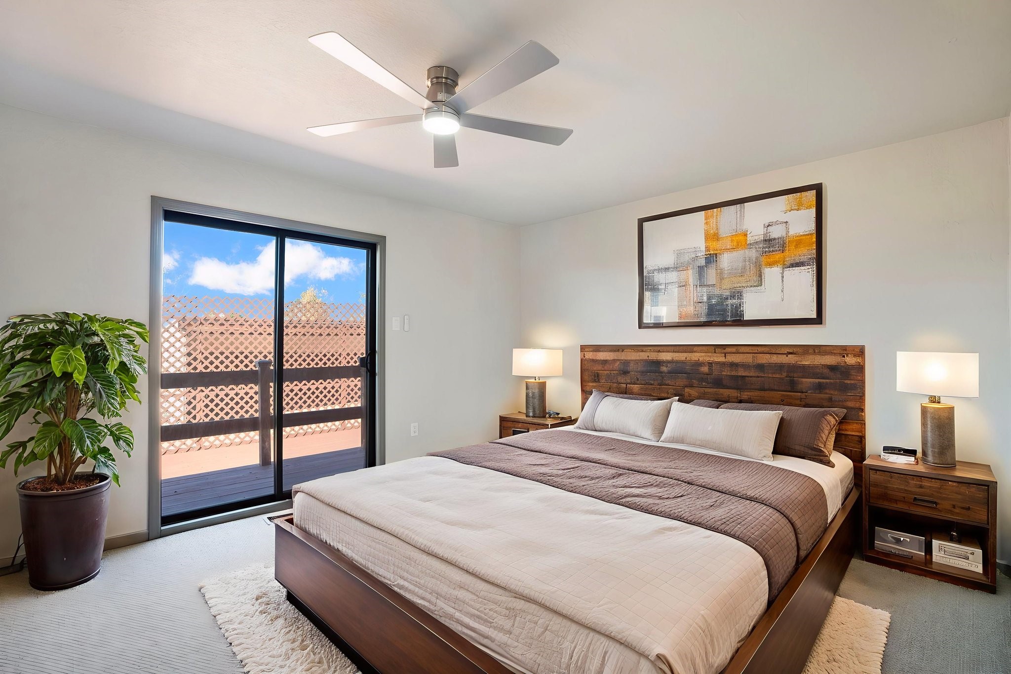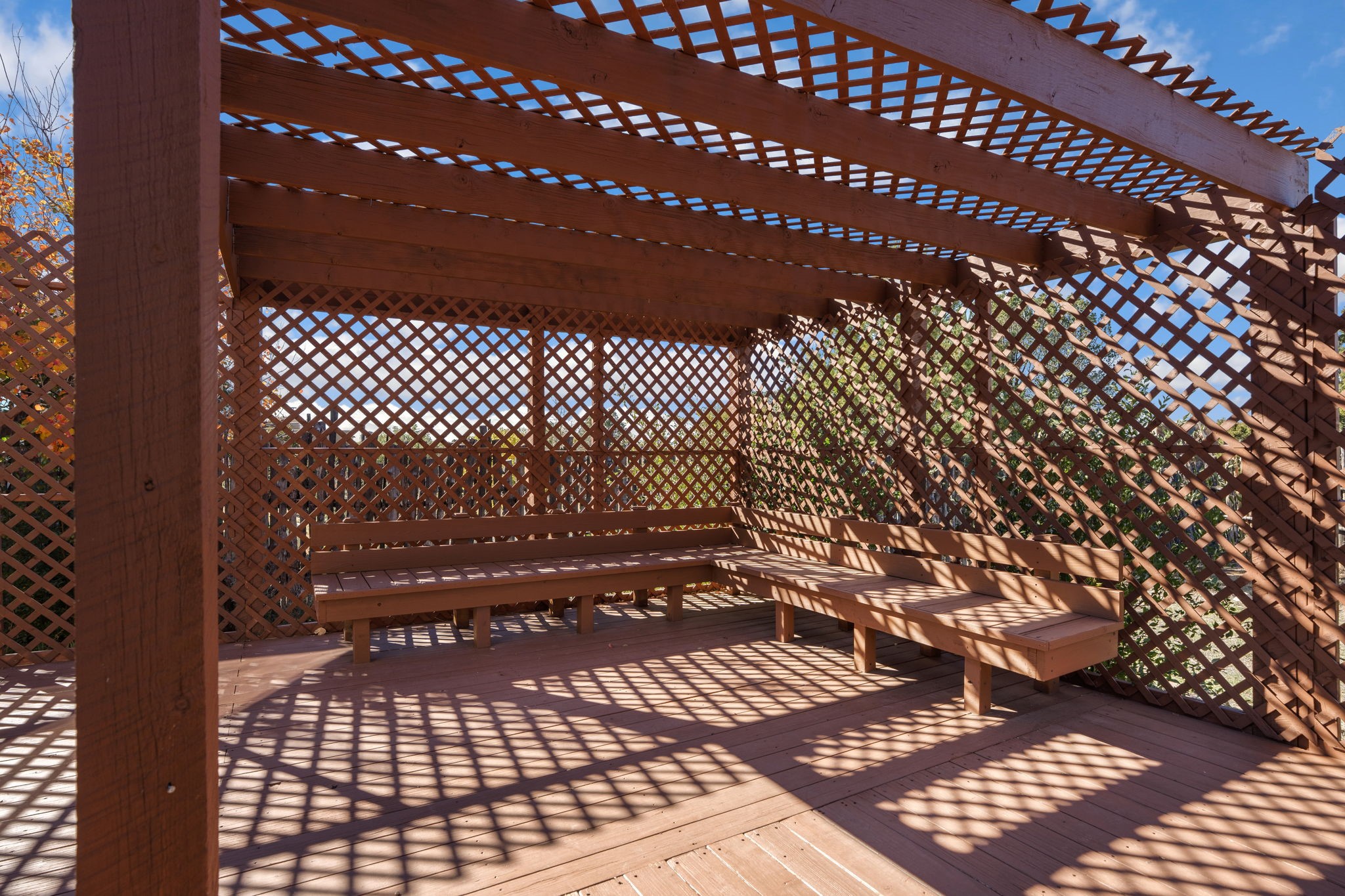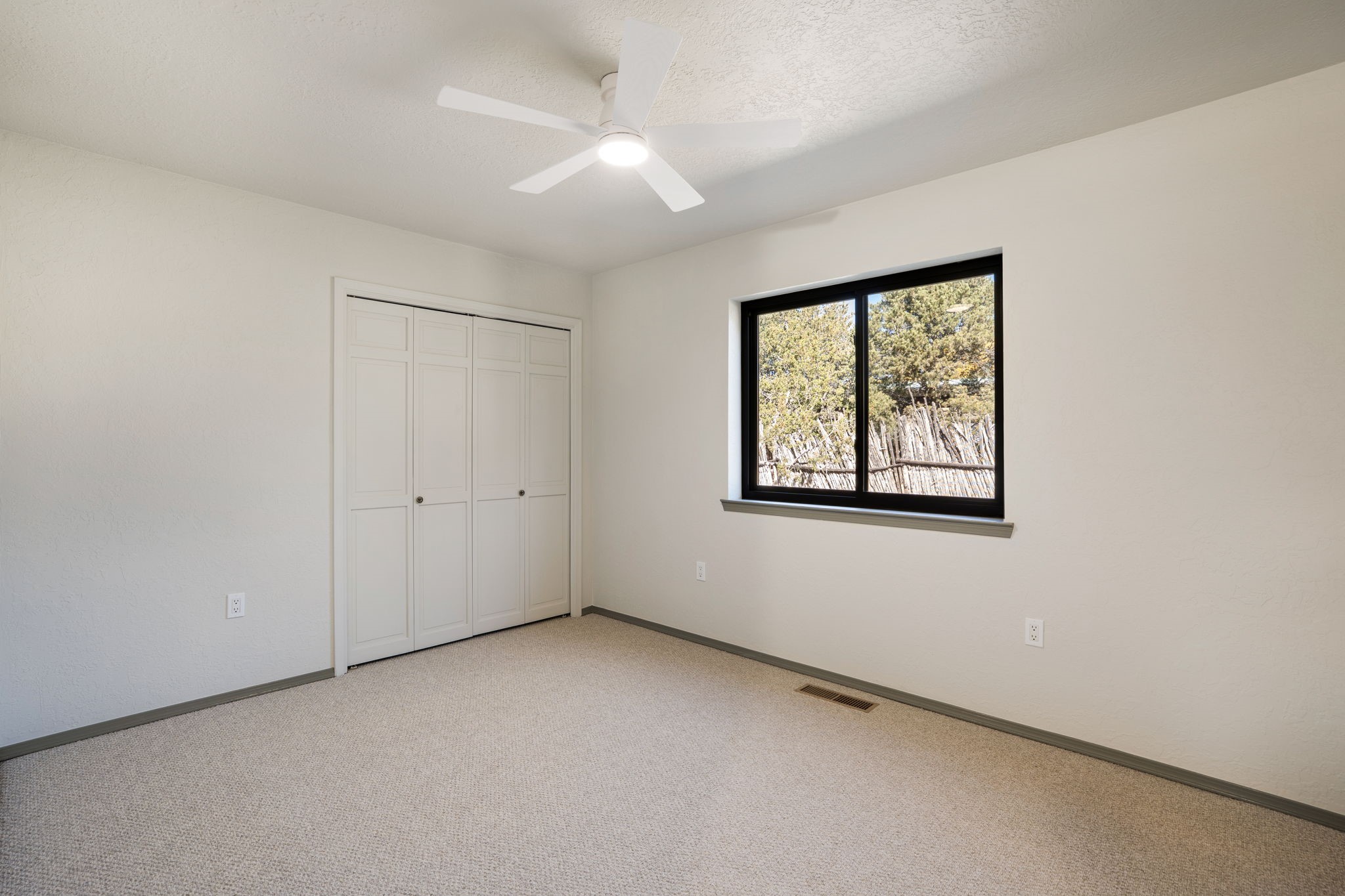 An exceptional opportunity awaits in one of Santa Fe's most cherished communities, DeVargas Heights. The floor plan is both practical and elegant with the separate dining room off the updated Kitchen, including new granite countertops. The inviting living area features a warm wood-beamed ceiling and a charming fireplace, setting a distinctly Santa Fe tone. Three bedrooms and two fully renovated bathrooms offer a blend of modern luxury and neighborhood charm.Enjoy year-round light in the large sunroom that provides a seamless transition to an expansive wrap-around deck and large backyard. Additional highlights include drivable access to the backyard and a flex room located conveniently off the garage, adaptable to your specific needs Best of all, this tranquil retreat is conveniently located less than 4 miles from the vibrant Santa Fe Plaza.