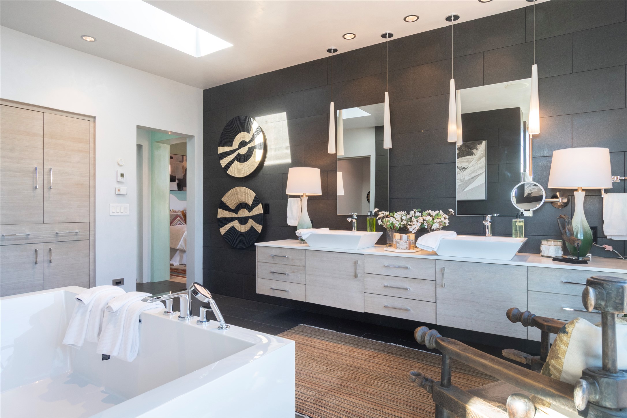 Exceptional pueblo-style home offering picturesque mountain views from a 5.01-acre setting. This beautifully crafted 3,179 sq ft residence features 3 bedrooms (possibly 4 with the studio/den room) and 3 baths, showcases Southwestern architecture with hand-troweled plaster walls, exposed vigas and beams, stone accents, and warm wood detailing throughout. The light-filled great room boasts soaring ceilings and expansive windows that frame the surrounding landscape and open to inviting portals, creating seamless indoor-outdoor living ideal for entertaining or quiet relaxation. A welcoming entry courtyard sets a tranquil tone, while gracious living and dining spaces provide comfort and flexibility. Mature native landscaping blends effortlessly with the natural terrain, offering privacy and a strong connection to the land. Perfectly positioned to enjoy Santa Fe's renowned skies, mountain views, and architectural heritage, this delightful property delivers timeless style, serenity, and a true sense of place to call home.