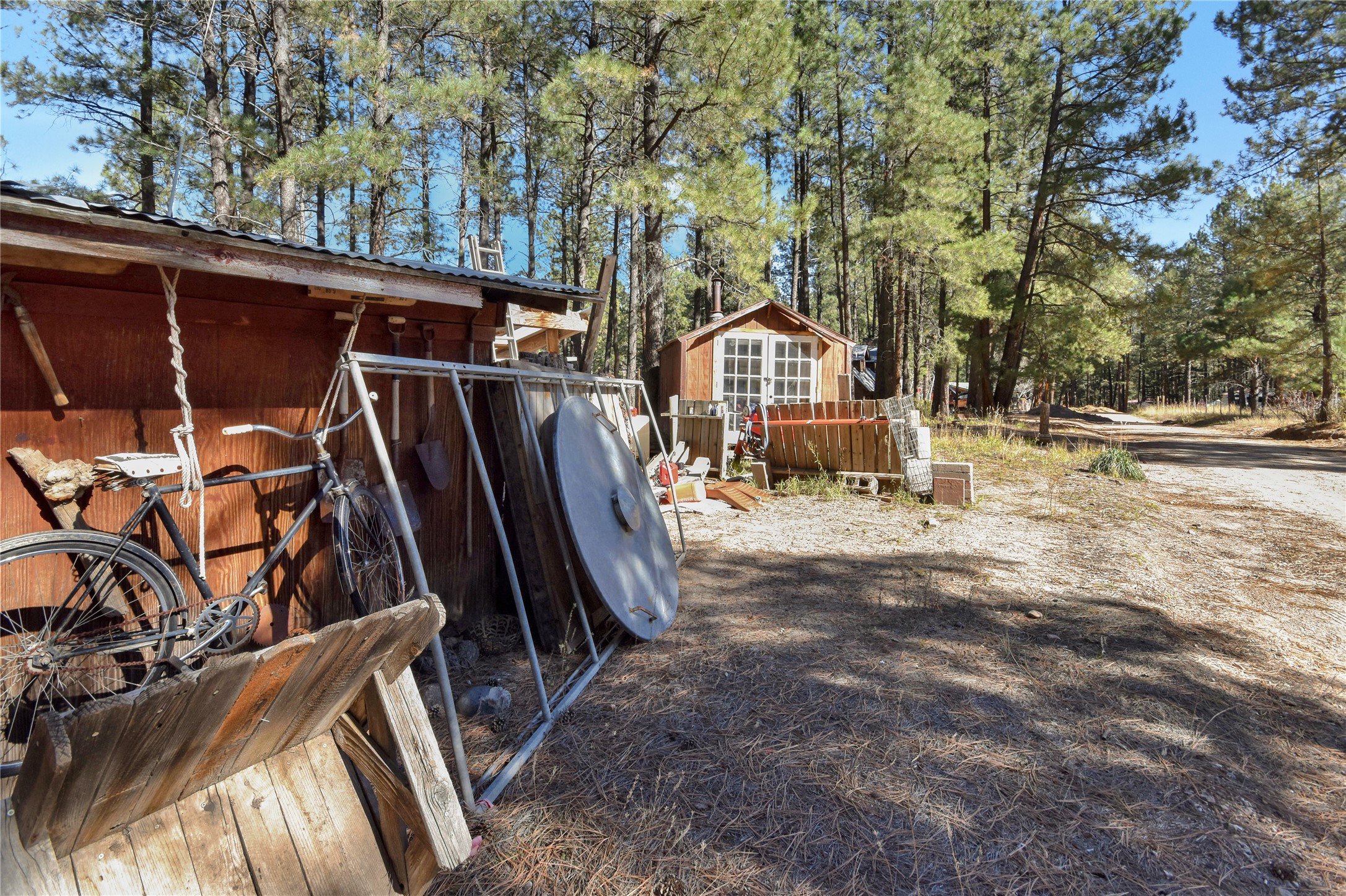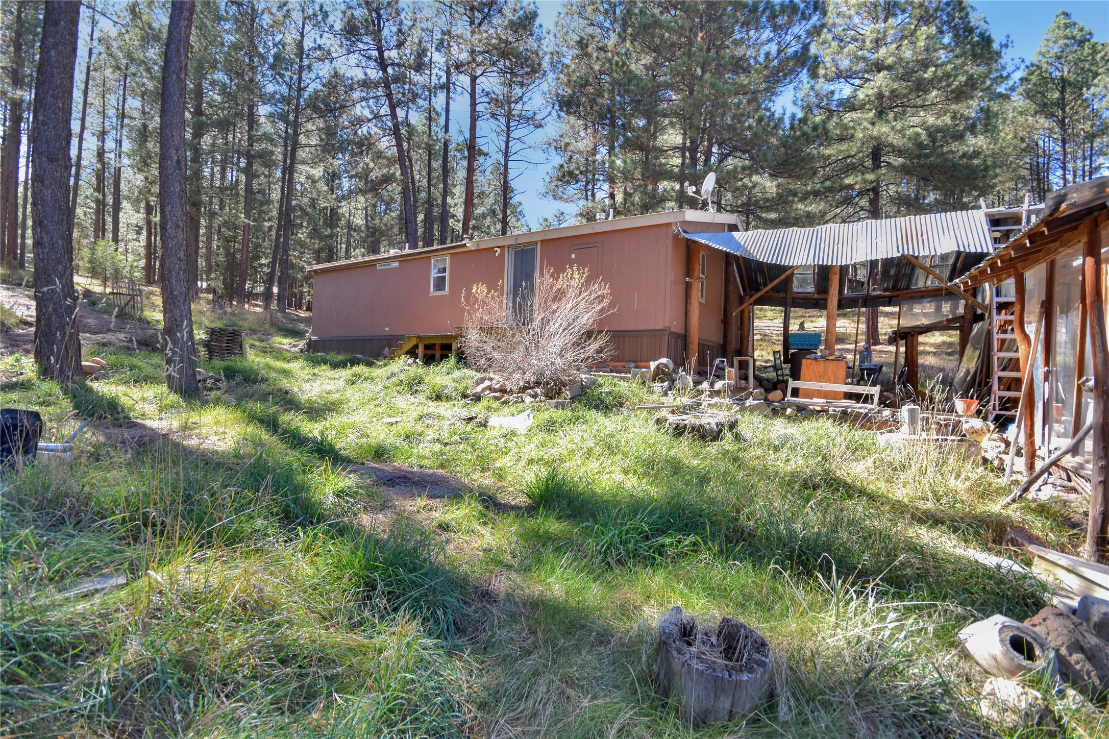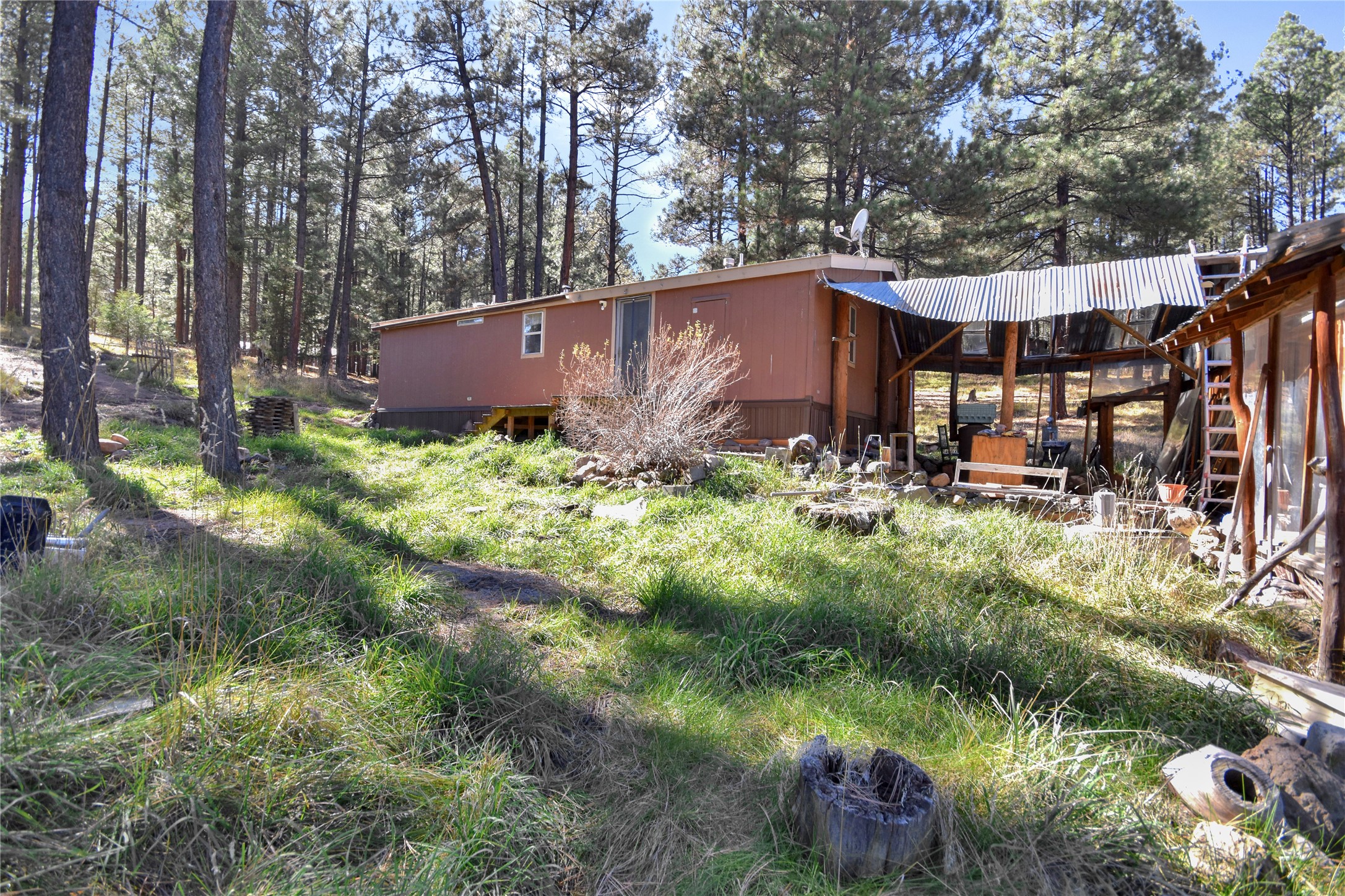 Fabulous Views, Easy Access, & a Great Location! Nestled in the tight-knit community of La Cueva, this charming & affordable home sits on a 0.5-acre lot surrounded by pine trees & nature. Enjoy community water through Hidden Valley Estates MDWCA. The spacious layout features a split floor plan with the master bedroom on one side & two additional bedrooms on the other. Two full baths, including one with a garden tub. The open concept living area has an efficient woodstove for cozy evenings at home, & the country kitchen provides plenty of counter space along with an attached laundry room. Enjoy fishing & hiking right out your back door! Conveniently located on a county-maintained road for year-round access and just a reasonable 40-minute commute to Los Alamos. Don't miss this one!