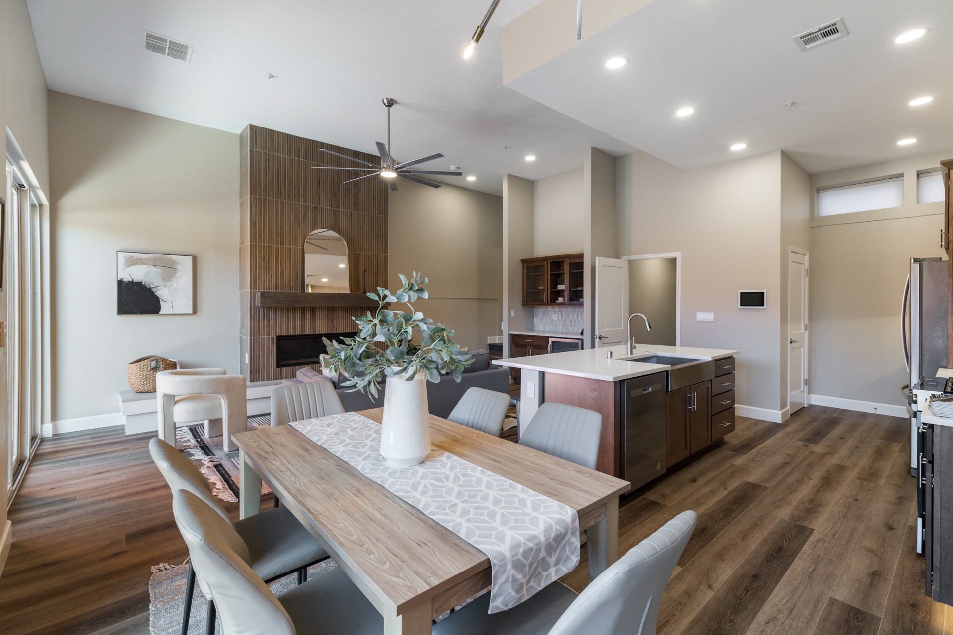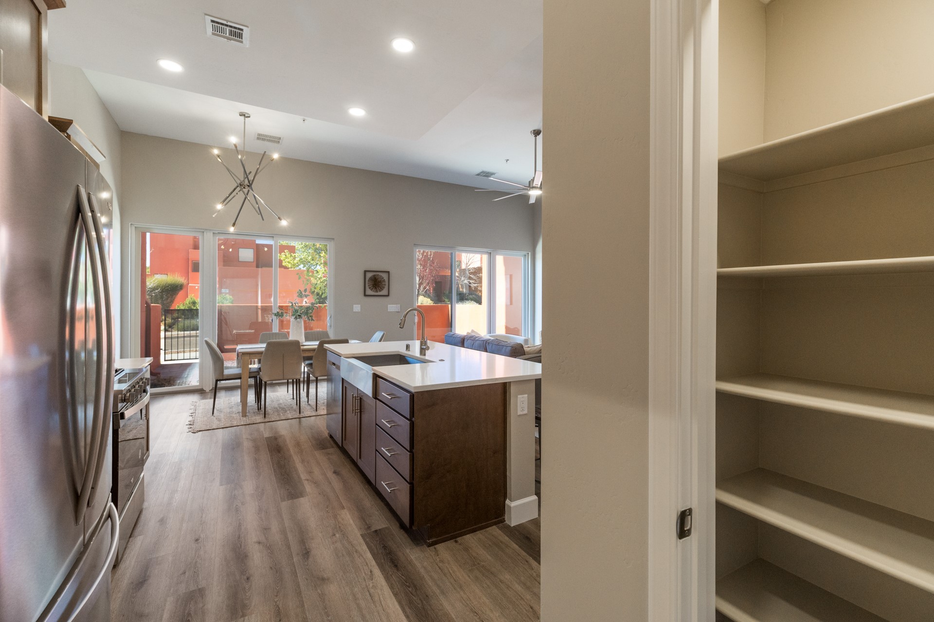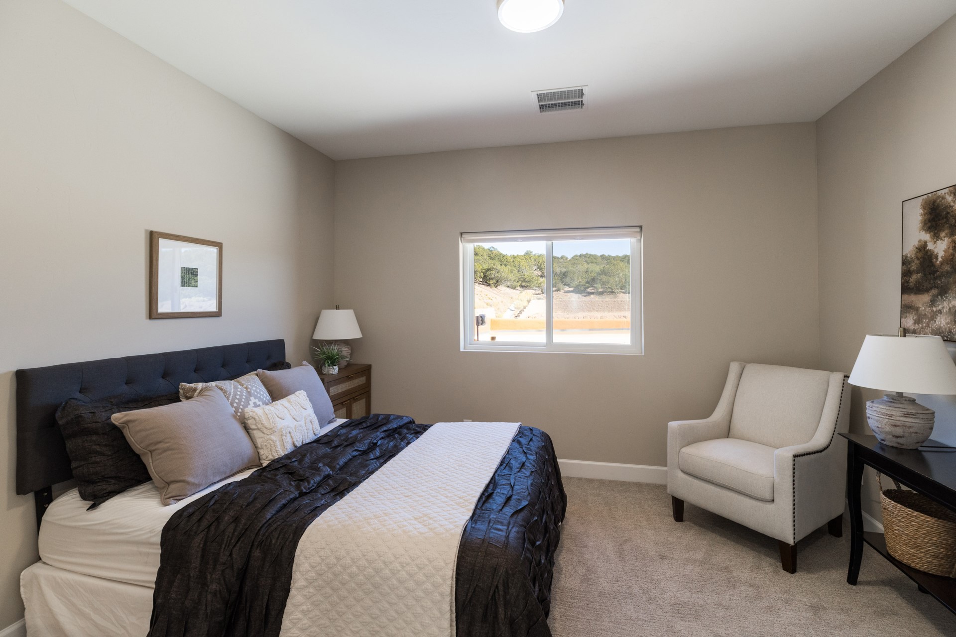 End-unit luxury, Santa Fe character, and modern comfort all come together beautifully. This light-filled, end-unit home mirrors the popular offers the added privacy, windows, and openness that make it truly special. Step inside to an inviting blend of clean modern design and warm Southwest charm.The heart of the home is an elegant, open-concept kitchen featuring upgraded appliances, sleek cabinetry, and solid-surface countertops that flow seamlessly into a bright living area--perfect for entertaining or quiet evenings in. Large windows flood the space with natural light, leading to a private patio that invites morning coffee or sunset wine.The spacious primary suite provides a tranquil retreat with a spa-inspired bath and generous closet space. Energy-efficient construction, an attached garage, and low-maintenance living ensure everyday ease.Nestled in one of Santa Fe's most desirable locations, residents enjoy proximity to downtown dining, galleries, and cultural landmarks, as well as easy access to scenic walking trails and open spaces.Discover the thoughtful design and comfort that define Abrazo Homes--where every detail is crafted for modern living with timeless appeal. Don't miss your chance to own one of the community's most coveted end units!