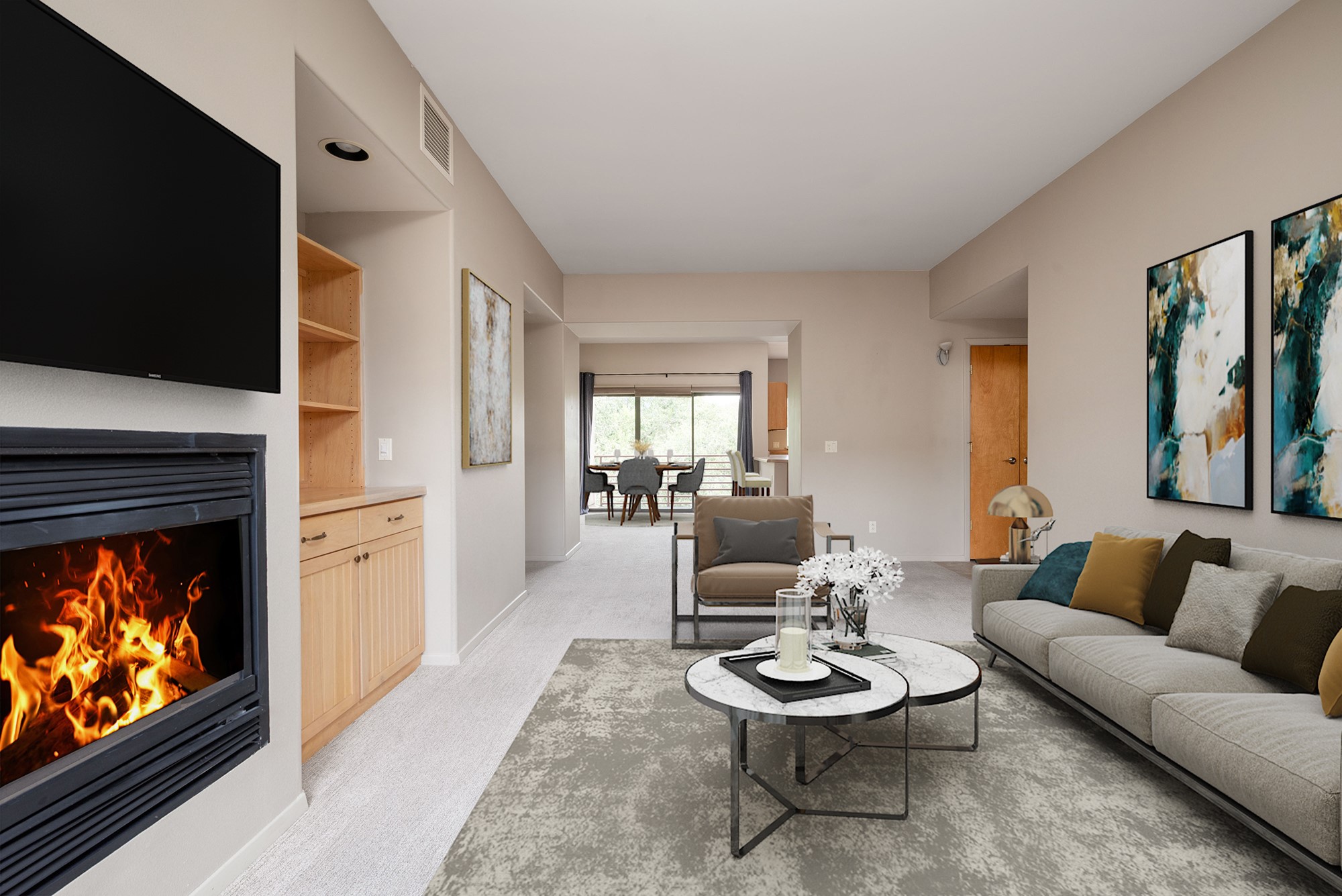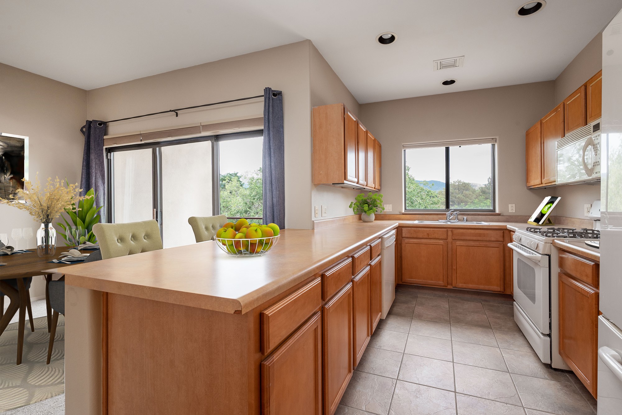 $10,000 CREDIT TO BUYER to use towards rate buy-down, assessments or closing costs. Live among the trees in this soft contemporary condo in the heart of Santa Fe. Perched on the top floor, this light-filled unit features east- and west-facing balconies and mountain views from the kitchen. The floor plan offers well-defined spaces for living, dining, and working, along with two generously sized bedrooms with soft, leafy trees at the windows. The secure building includes a street-level security door, a covered direct-entry carport with designated parking, and a large private storage unit. While the condo is on the third floor, a convenient dumbwaiter makes grocery trips easier. Come visit this serene abode and make yourself at home.