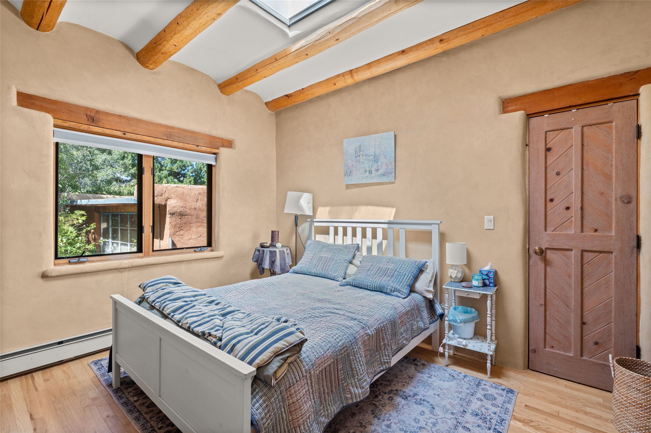 Envision the possibilities of this 3.27-acre estate, bridging iconic Canyon Road with the dirt stretch of East Alameda, directly beside the famed Compound Restaurant. This is a property of both heritage and horizon, anchored by a 3,829-square-foot historic residence on the Alameda side and a 4,424-square-foot commercial gallery on Canyon Road. Between these lies a hidden enclave of gardens, courtyards, and guest dwellings, including one designed by the celebrated Santa Fe builder Betty Stewart. The main residence, built in 1938 and recognized as a historically contributing building, has been lovingly preserved and enhanced by multiple generations of the same family. Within its adobe walls, you'll find four bedrooms, three full baths, an office, a laundry and craft room, a cedar-lined closet, and a sunroom, each space imbued with warmth & continuity of care. The Canyon Road gallery, leased through 2028, provides longevity and prestige in Santa Fe's most famous arts district. Throughout the grounds, mature trees and plantings and paths connect the various structures - serene, self-contained, and rich with character. The property enjoys full city utilities as well as two private wells, each yielding three acre-fee of water, an invaluable resource for maintaining the grounds or for future expansion. This extraordinary compound merges historic authenticity with modern versatility, one of the few remaining estates to unite Canyon Road and East Alameda in a single private holding. Whether envisioned as a multi-generational family retreat or a bespoke Eastside development, the site's dual access, exceptional size, and RC8AC zoning (allowing for 8 units per acre) make it a truly unique offering. Just moments from Santa Fe's galleries, dining, and cultural landmarks, yet profoundly secluded within its own walls and gardens, this property stands as both a legacy home and an expansive canvas for new possibilities in the heart of the city's most storied neighborhood.