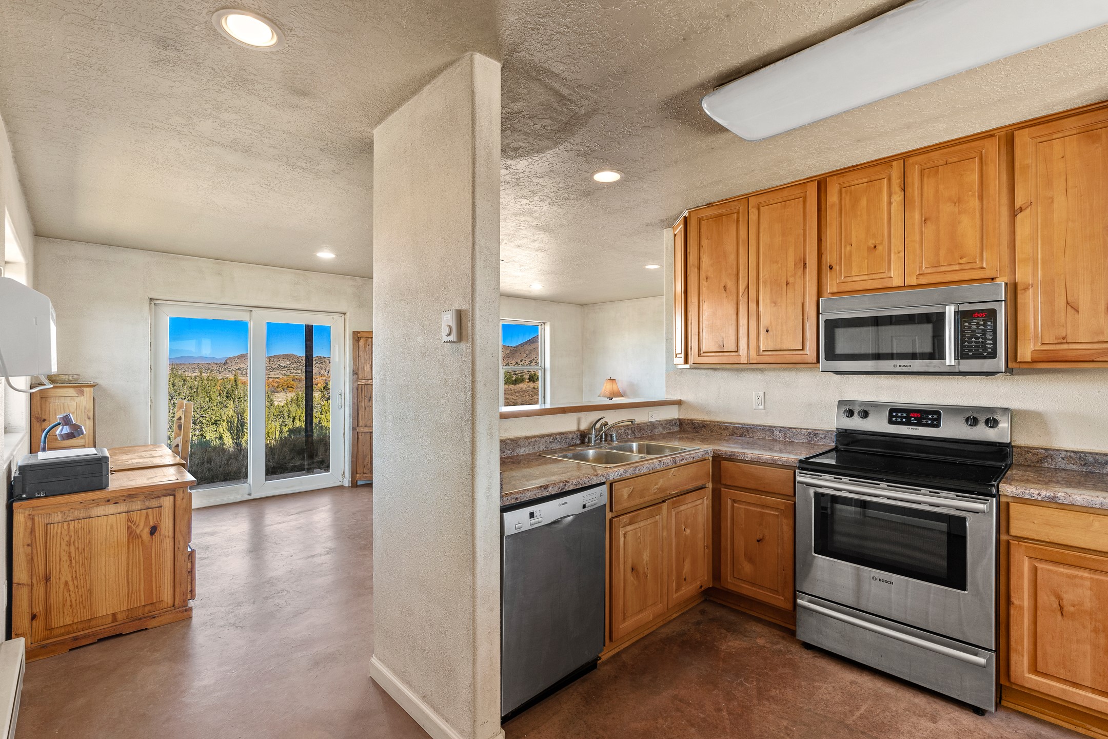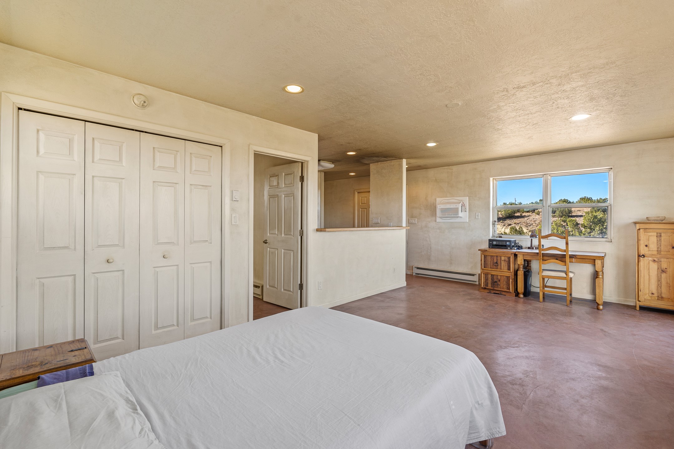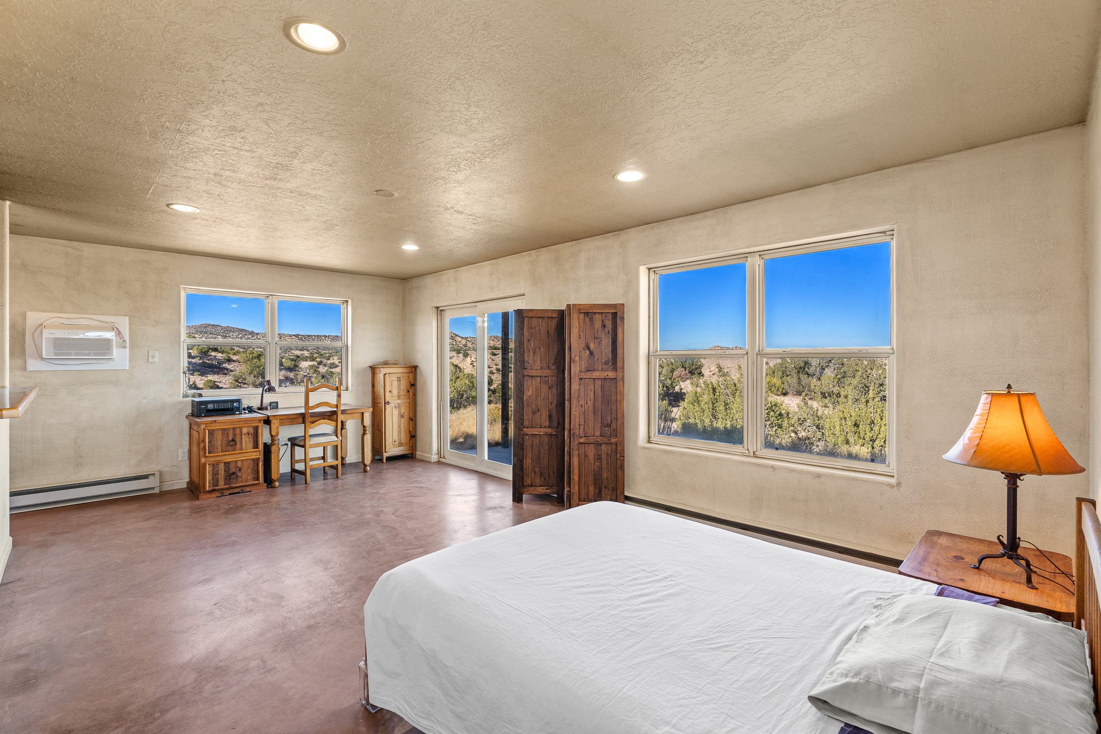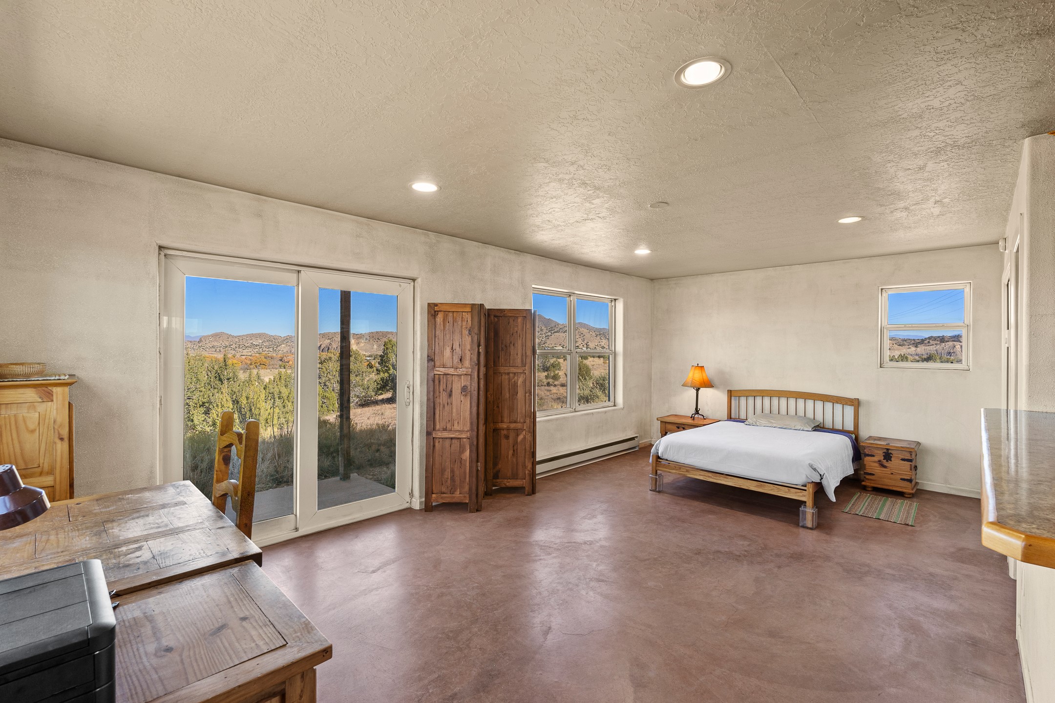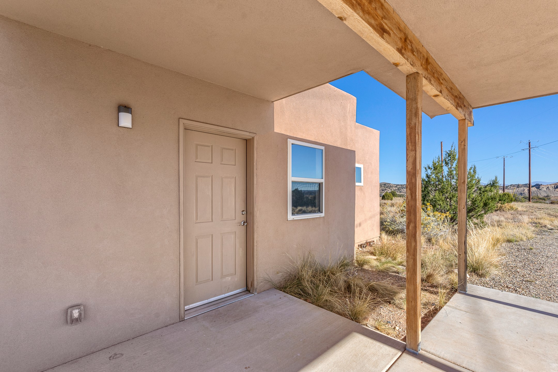 Thoughtfully designed small house on almost 5 acres. This 562 square foot, studio style home proves the adage that good things come in small packages. On a flat hilltop above Goldmine road, this home takes in views of Cerrillos and the Galisteo valley, as well as the Sangre de Cristo mountains. With stainless steel appliances, ample light, and stained concrete floors, the home feels more spacious than it's square footage would suggest. Designed with expansion in mind, it would be easy to add a bedroom, and the property is sold with two lots, a buyer could live in this home while building on the other lot. On septic and community water, within walking distance of Cerrillos and a short drive to Santa Fe. House has been smoked in and will need paint.