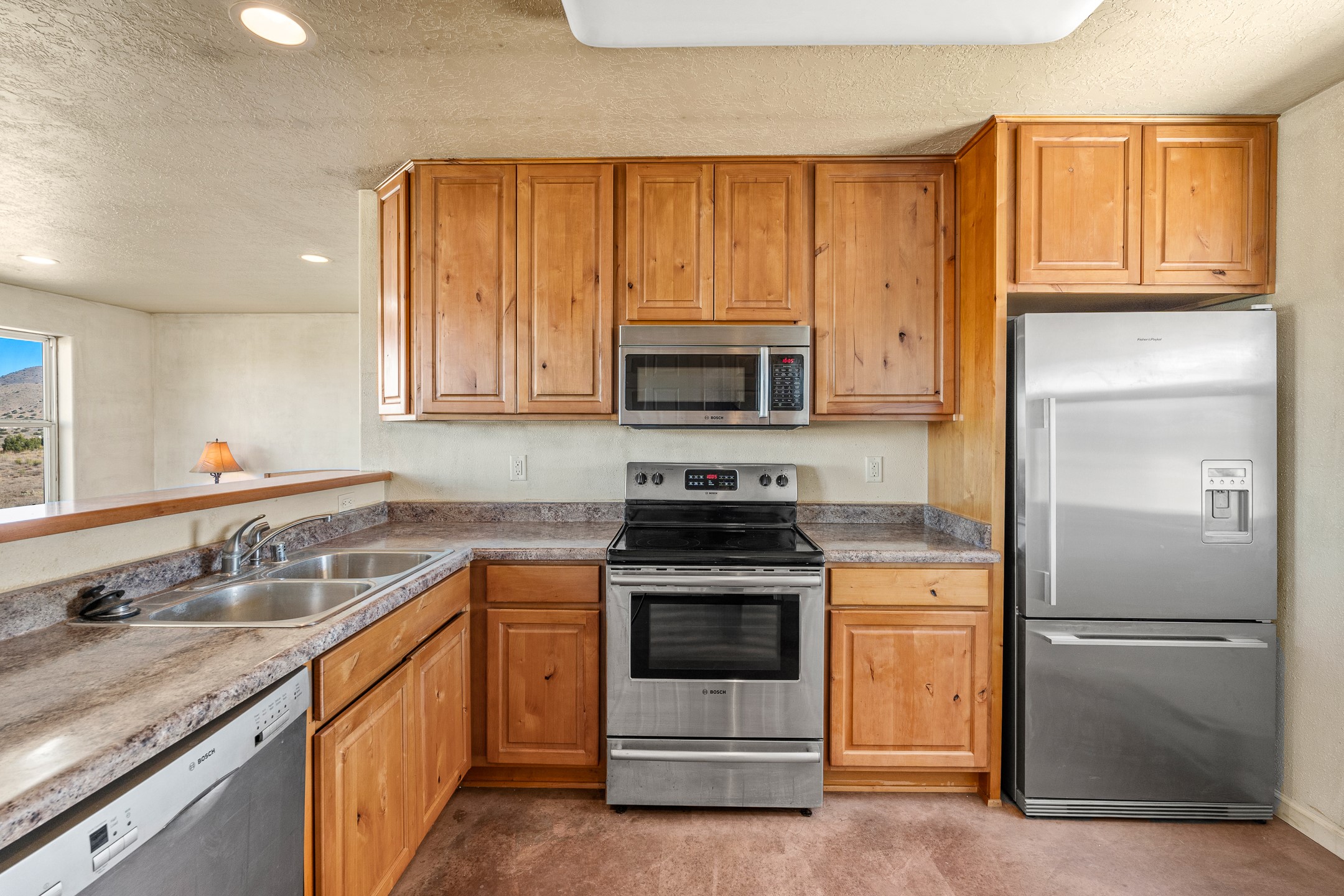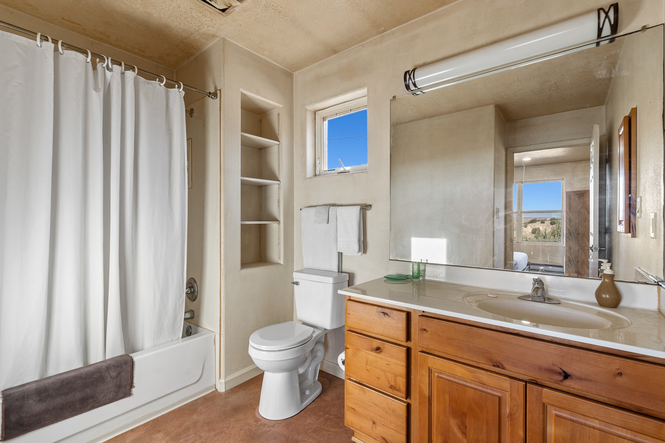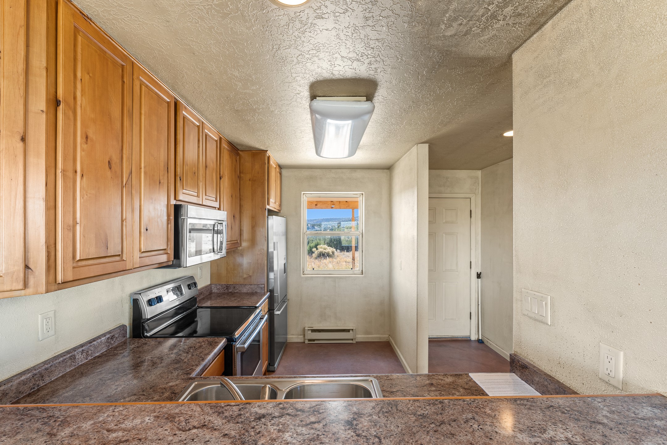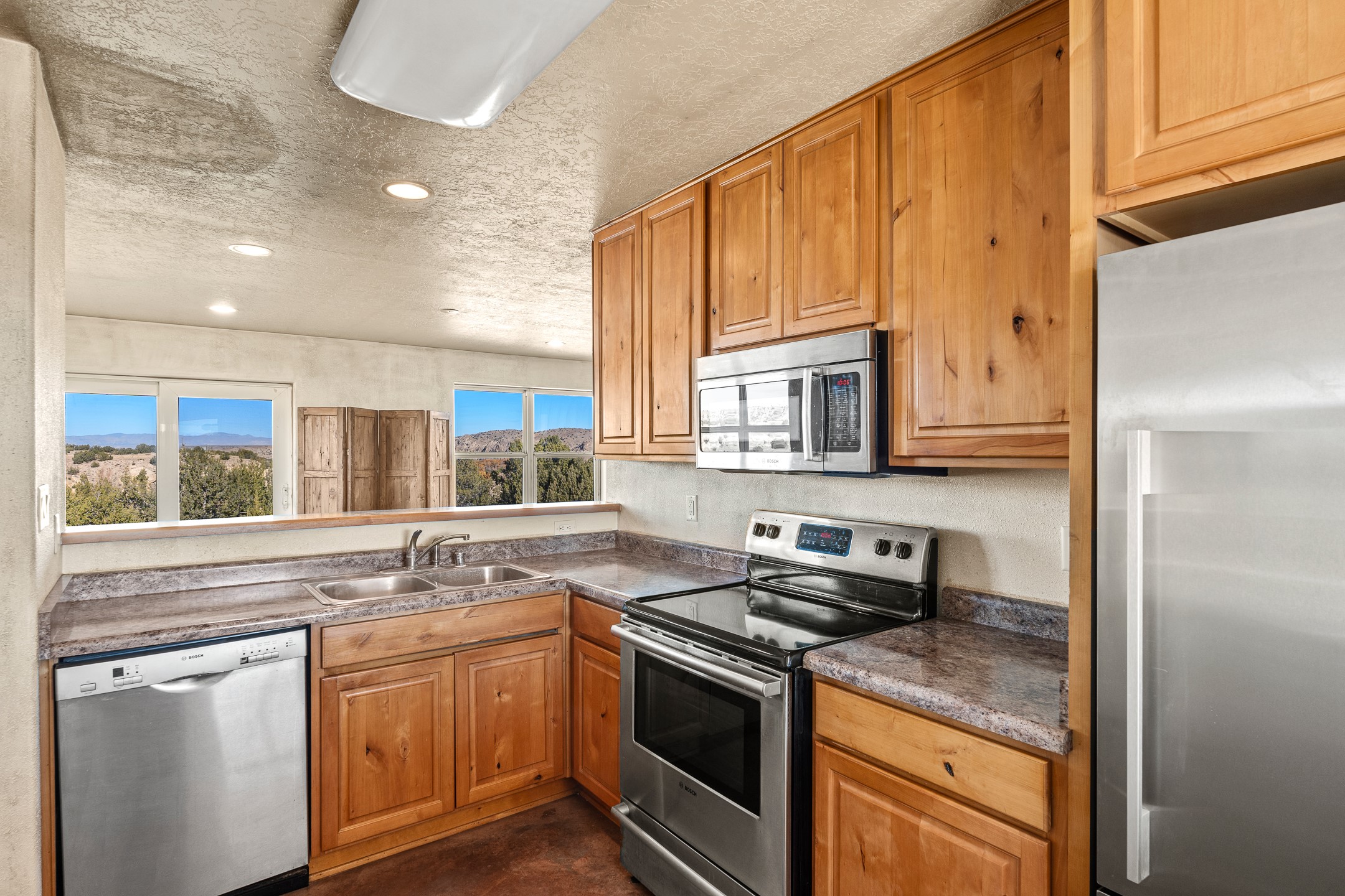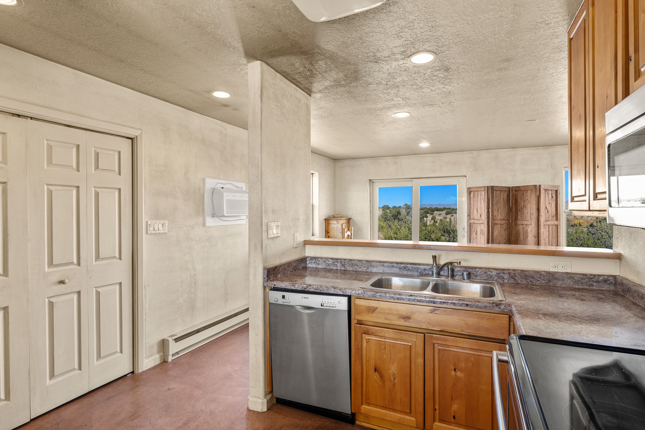 Thoughtfully designed small house on almost 5 acres. This 562 square foot, studio style home proves the adage that good things come in small packages. On a flat hilltop above Goldmine road, this home takes in views of Cerrillos and the Galisteo valley, as well as the Sangre de Cristo mountains. With stainless steel appliances, ample light, and stained concrete floors, the home feels more spacious than it's square footage would suggest. Designed with expansion in mind, it would be easy to add a bedroom, and the property is sold with two lots, a buyer could live in this home while building on the other lot. On septic and community water, within walking distance of Cerrillos and a short drive to Santa Fe. House has been smoked in and will need paint.