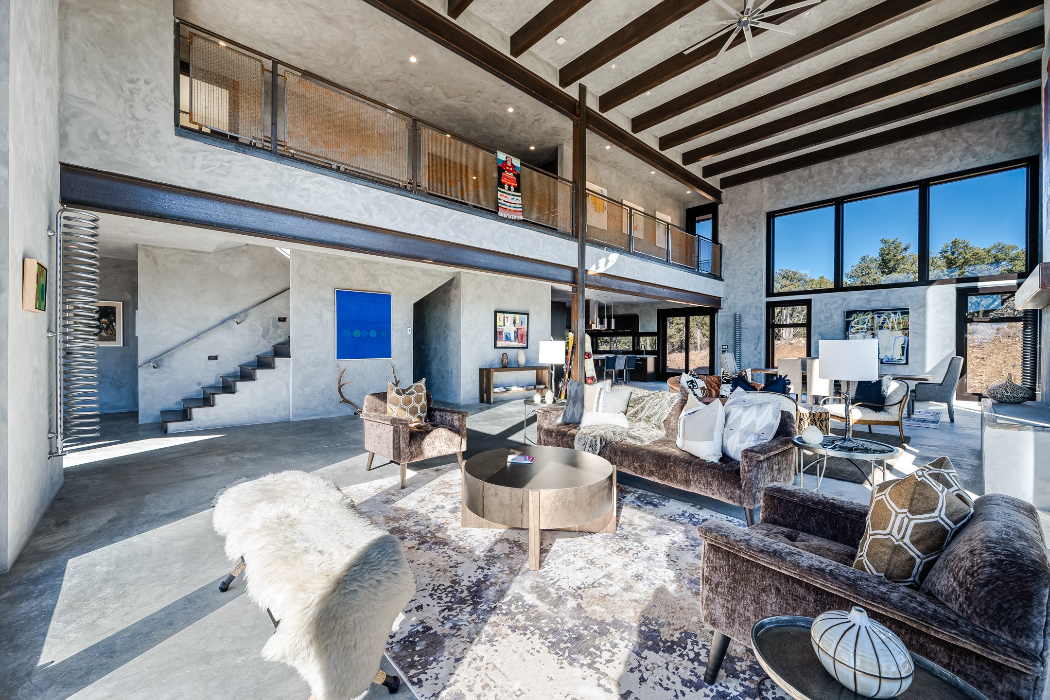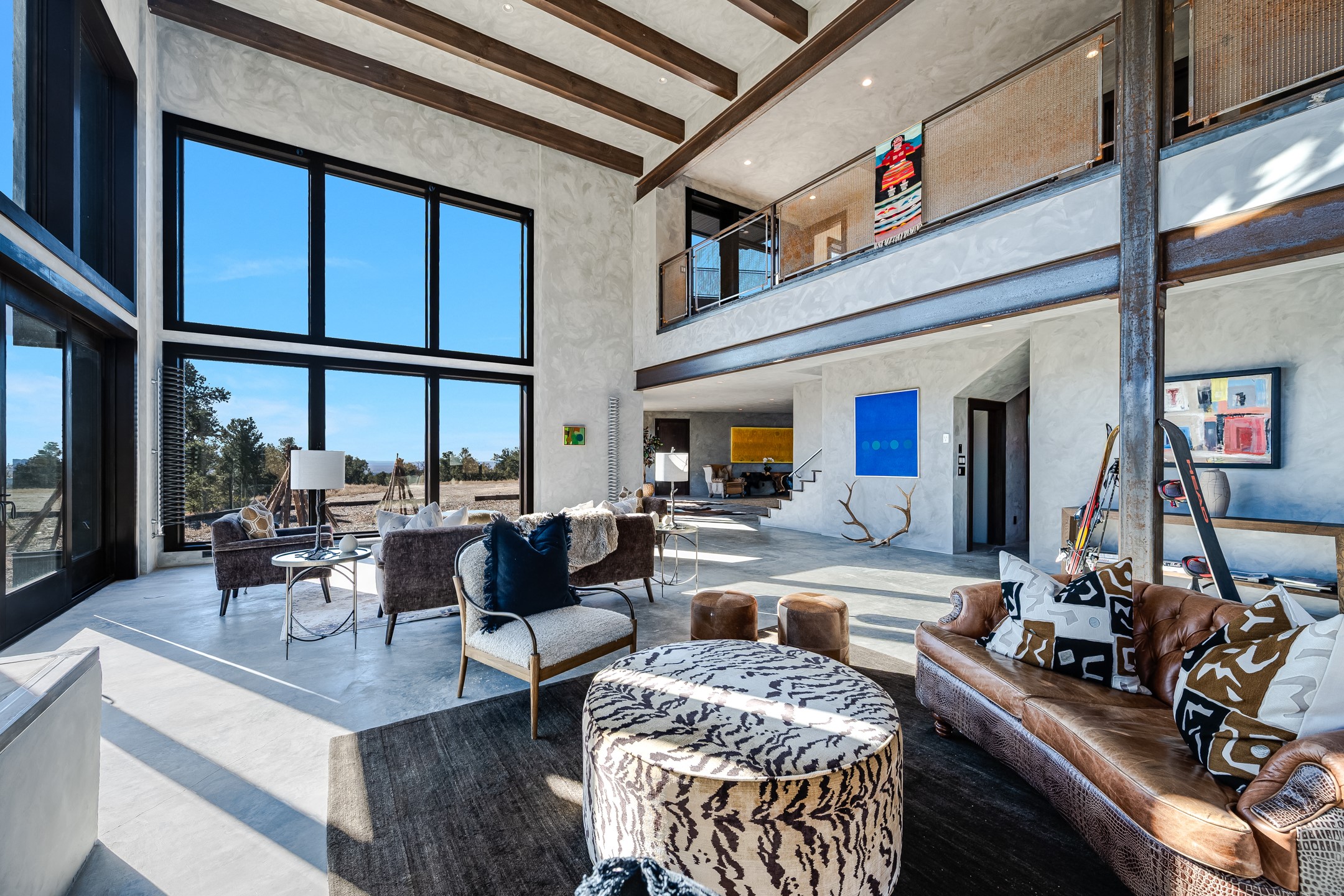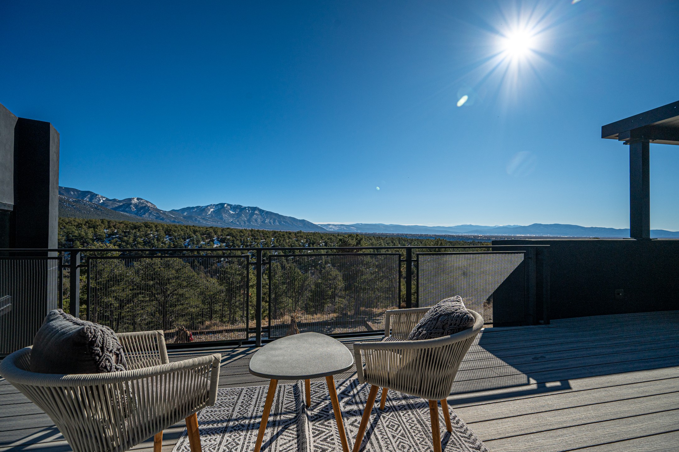 An exquisite home and true work of art, Raven's View is a rare and exceptional offering in Taos, New Mexico. Often described as unparalleled, incomparable, distinctive, and rare, this once-in-a-lifetime property delivers an extraordinary living experience immersed in nature. Nestled on 10 private acres, the residence offers approximately 7,000 square feet, featuring 4 bedrooms and 3.5 baths, along with breathtaking 360-degree million-dollar views of the El Salto Mountains, Pueblo Peak, and the Truchas Peaks. The setting provides a remarkable sense of peace, comfort, and tranquility, where one feels both protected and elevated above the world. The home was built by highly regarded Taos builder Don Pennington, known locally for his sculptural, custom homes and exceptional craftsmanship. The design was created by owner Mala Mukherji, an author, designer, and healer, who synthesized her life's work into a physical space deeply interconnected with the harmony and majesty of the surrounding landscape. Intentional design defines every area of the home. Thoughtfully created spaces allow for both solitude and gathering, seamlessly entwined with pine, cedar, and pion forest, expansive skies, abundant sunlight, and endless views. Private retreats invite rest and contemplation while maintaining a strong connection to the natural beauty outside. The construction and infrastructure reflect the strength and presence of the five sacred peaks surrounding the property. Built with solid metal (STEEL) and (2' x 8') wood framing, along with substantial insulation, the home offers exceptional comfort throughout all four seasons. The infrastructure was designed with longevity, efficiency, and comfort in mind, sparing no expense. As Mala states, "One thousand thoughts are behind every inch of this house." The result is a luxurious yet effortless experience of living in harmony with nature. The home is named for the two ravens believed to have guided and protected each step of its creation. Located at the top of the secluded and exclusive Turley Mill subdivision, the property borders the Carson National Forest, providing endless hiking and trail opportunities. Wildlife is abundant, including elk, mule deer, bobcat, and wild turkeys. Additional features include a private owners' wing separated from the guest wing by a sheltered upper deck, outdoor hot tub deck, expansive outdoor recreation deck, chef's kitchen with custom appliances, radiant in-floor heating, extensive storage areas, and an oversized three-car garage. Raven's View is more than a home--it is a sanctuary, a sculptural masterpiece, and a rare opportunity to own an extraordinary property in Taos. Taos is known for its vibrant art scene, rich Native American and Spanish history, stunning high-desert landscapes (like the Rio Grande Gorge), world-class skiing at Taos Ski Valley, and unique cultural blend, particularly the ancient, inhabited adobe Taos Pueblo, a UNESCO World Heritage Site. It's a haven for artists, photographers, outdoor enthusiasts, and those seeking unique architecture and Southwestern culture.