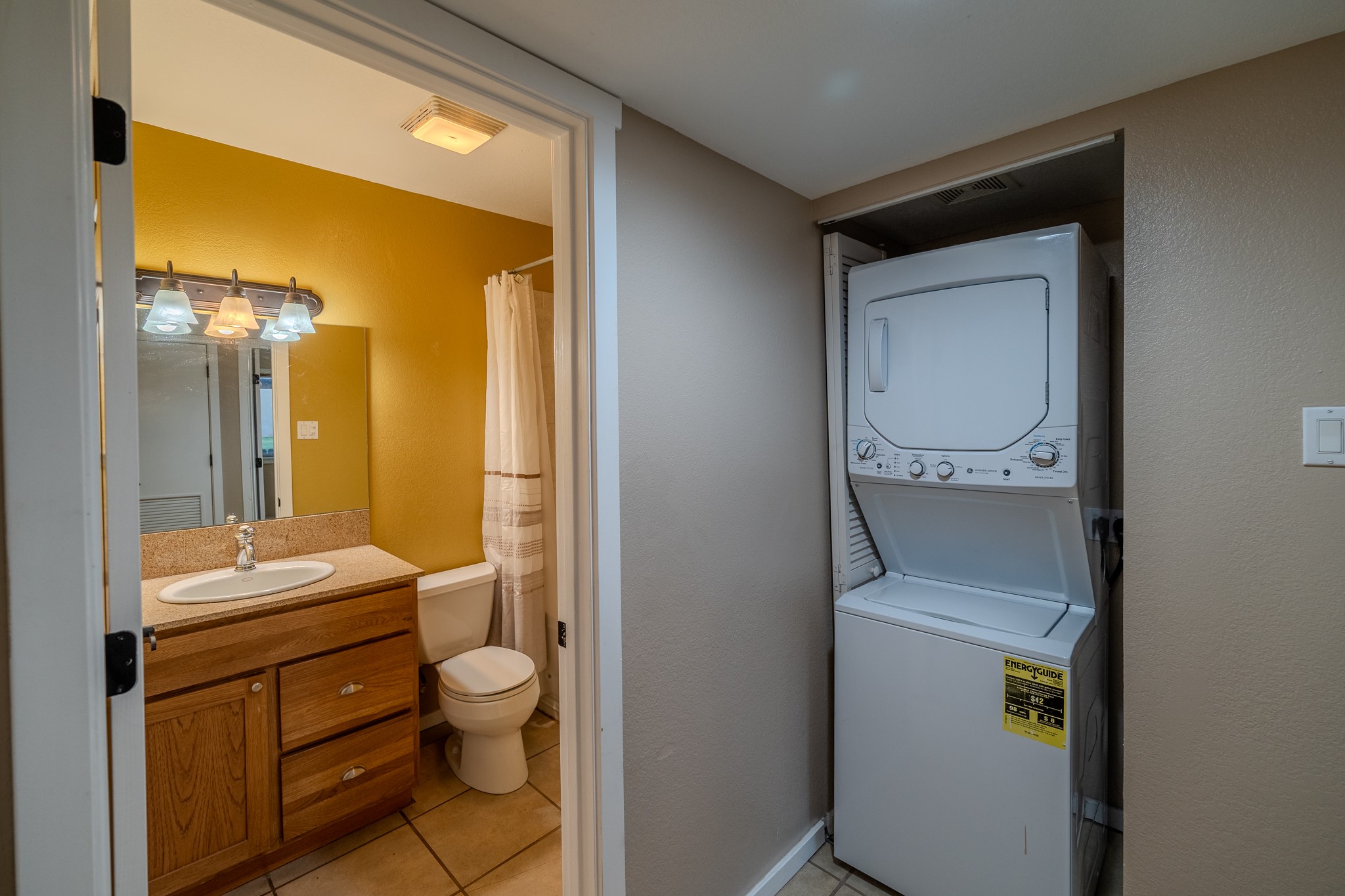 Checking every box. Ground Floor Condo on a lovely green belt offering 2 bedrooms and 2 full baths. The living room has a sliding door to a private court yard. This community is gated with well maintained grounds and a fenced outdoor swimming pool and common room. The location is central and walking distance to restaurants, shopping and entertainment venues. Easy to show. Have it all. Call today.