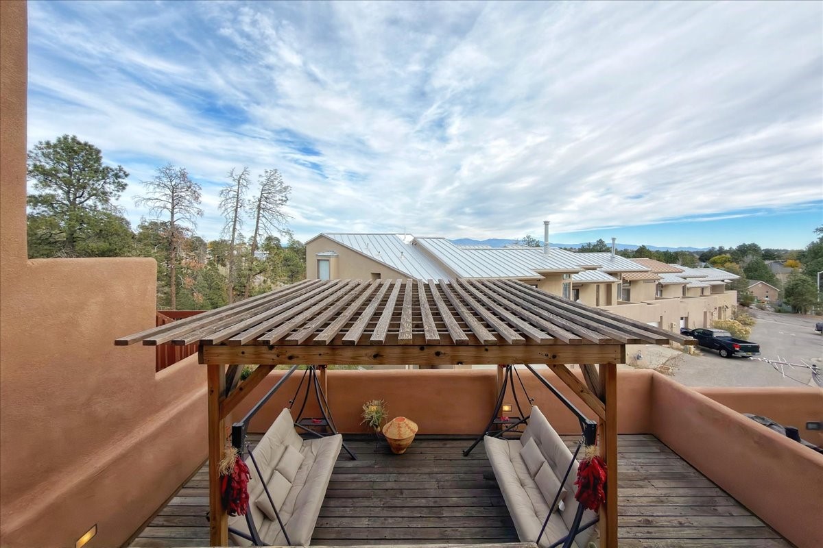 Spectacular 3-Story Townhome in Quemazon - Flexible Live/Work Layout with Mountain Views. Experience bright, versatile living in this 2,328 sq ft townhome designed to suit a wide range of lifestyles and work-from-home needs. Nestled in the desirable Quemazon neighborhood, this residence offers multiple levels of flexible space. Key FeaturesThree levels, with adaptable living spaces across each floor.First floor street level live/work suite impeccably renovated with wood-look tile and fresh paint. Ideal as a professional office, recreation room, guest suite, home office, or rental income stream. Separate living area with no shared spaces, enhancing privacy and flexibility.Second floor entertaining hub featuring open living, dining, and kitchen area. Large windows bathing the space in natural light. Access to an outdoor balcony/deck for relaxing or entertaining while enjoying mountain scenery.Third floor private retreat includes one bedroom and a full bathroom, a loft area, and a vented skylight with remote control feature to maximize daylight and airflow year-round.Great location to town, walking trails and only 10 minutes to LANL. 40 minutes to Santa Fe. Endless possibilities for this property. Schedule a showing today.