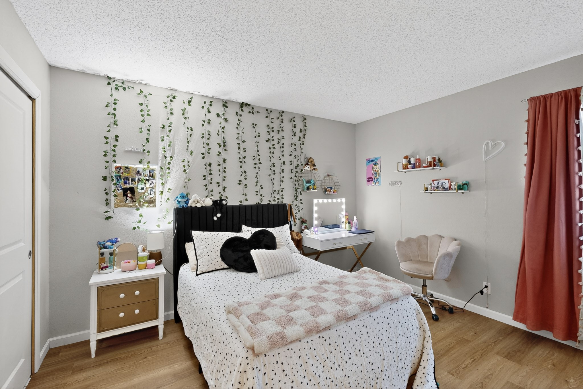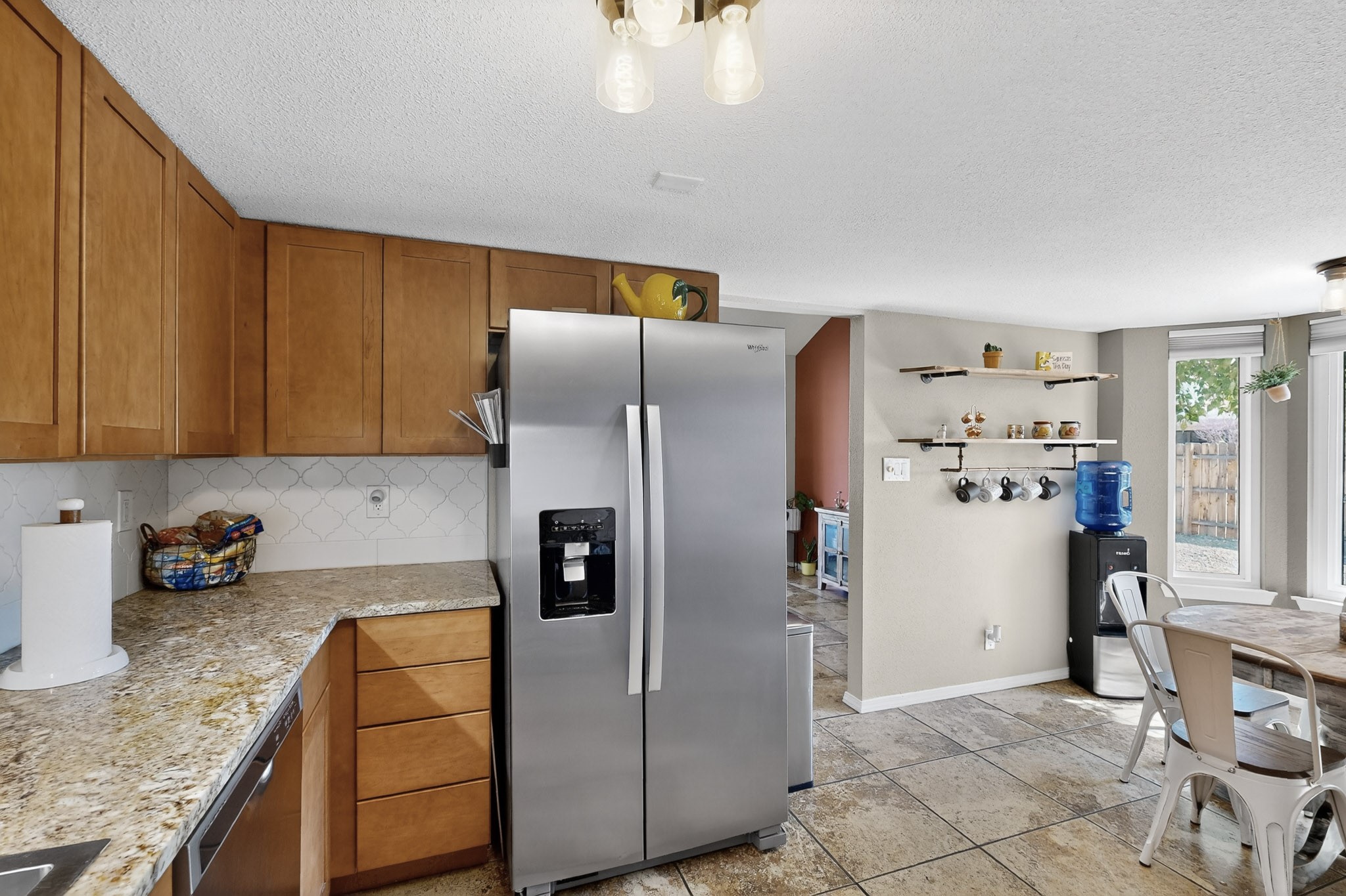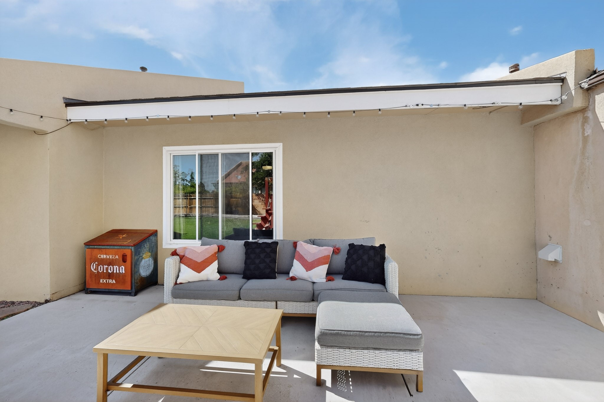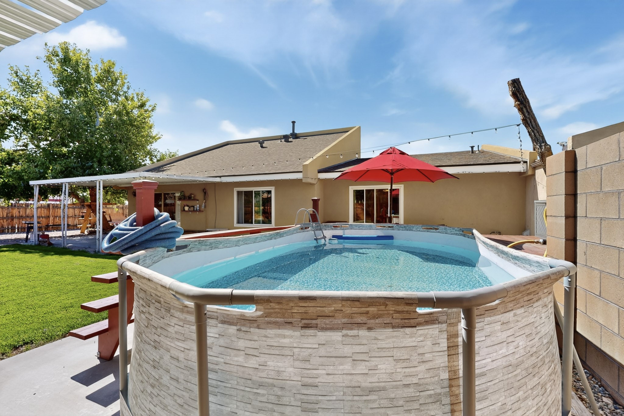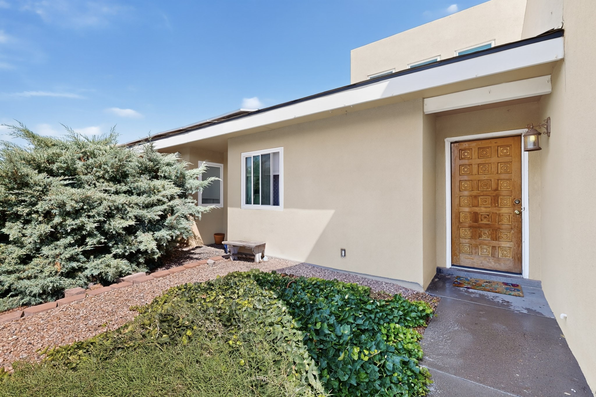 Welcome to this stunning 4 bedroom 2 bathroom property that offers 2,106 sq ft of thoughtfully designed living space in one of the most desirable neighborhoods in Rio Rancho. This home features REFRIGERATED AIR, Central air Heating, water heater installed 2023, NEWER roof TPO with a TRANSFERABLE WARRANTY. The Solar System ONLY has a bill of 109.00$ and a PNM bill of $8 dollars. NO POLYBUTYLENE. Conveniently located close to restaurants, shopping centers and schools. Come and take a tour of this beautiful home today!