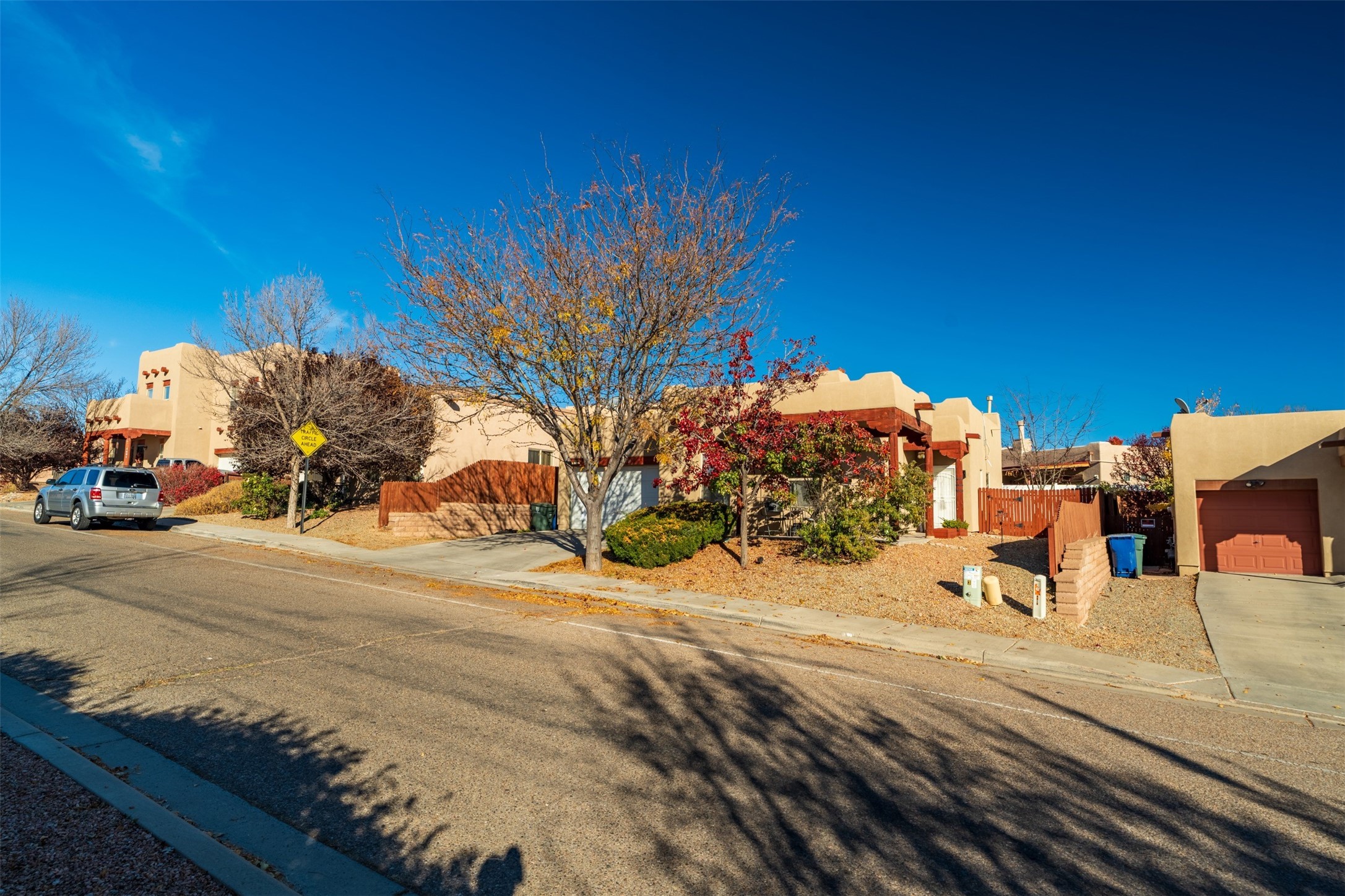 Impeccably maintained and move-in ready, this 3-bedroom, 2-bathroom residence in Tierra Contenta combines comfort, character, and convenience. The expansive living area boasts vaulted ceilings and a welcoming gas kiva fireplace, ideal for both relaxation and entertaining. Constructed in 2006, this single-level home encompasses approximately 1,359 square feet, a two-car garage, and numerous thoughtful updates.Stove, refrigerator, and microwave were recently replaced, and a mini split was installed in 2021, providing enhanced year-round comfort. Roof maintenance was completed in 2024, ensuring peace of mind and longevity.The recently landscaped yard features rose bushes, an apple tree, pine, locust, and sycamore trees, providing a tranquil outdoor retreat. With Pueblo-style stucco exterior, tile and laminate flooring, forced-air heating, and evaporative cooling, the property offers both functionality and aesthetic appeal. Situated near schools, parks, and shopping, this home presents an exceptional opportunity in a vibrant and expanding Santa Fe community.