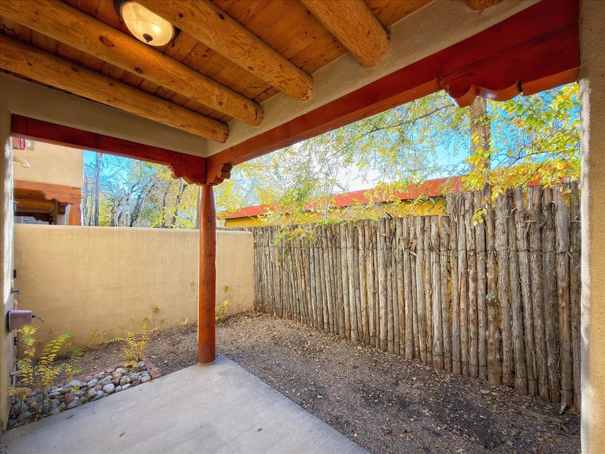 Tucked into one of the community's most desirable lanes, this rare and **oversized townhouse** delivers an effortless blend of style, comfort, and Santa Fe living. These are upgraded units from the standard sized Townhouse.Offering 2 bedrooms and 2 baths, the flexible floorplan is designed for easy everyday living with room to entertain.The main level features an open kitchen, dining, and oversized living space anchored by a welcoming gas fireplace. Glass doors lead to a private garden courtyard--your own outdoor retreat for quiet mornings, alfresco dinners, or relaxed evenings with friends.Upstairs, the primary suite includes an **oversized bedroom**, and **oversized walk-in closet**, full bath, and a balcony perfect for savoring the day's last light. The second bedroom offers its own ensuite bath and eastern views. High ceilings, vigas, Pella windows, and stainless steel appliances bring classic Santa Fe character to the modern layout.The community rounds out the experience with thoughtful amenities: a clubhouse, fitness center, and seasonal pool surrounded by beautifully maintained grounds, lush landscaping, and open green space.Step outside and you're moments from neighborhood favorites--Iconik Coffee, Backroads Pizza, Midtown Bistro, Chocolate Maven, Anytime Fitness, and more. Prefer the outdoors? The Santa Fe Rail Trail sits just half a mile away, ideal for biking, running, or a leisurely stroll.Practical perks include strong cell service, optional carport rentals, and a lock-and-leave lifestyle that suits first-time buyers, downsizers, or anyone seeking a comfortable Santa Fe home base.This isn't just a townhouse--it's a vibrant, convenient, easygoing way of life.