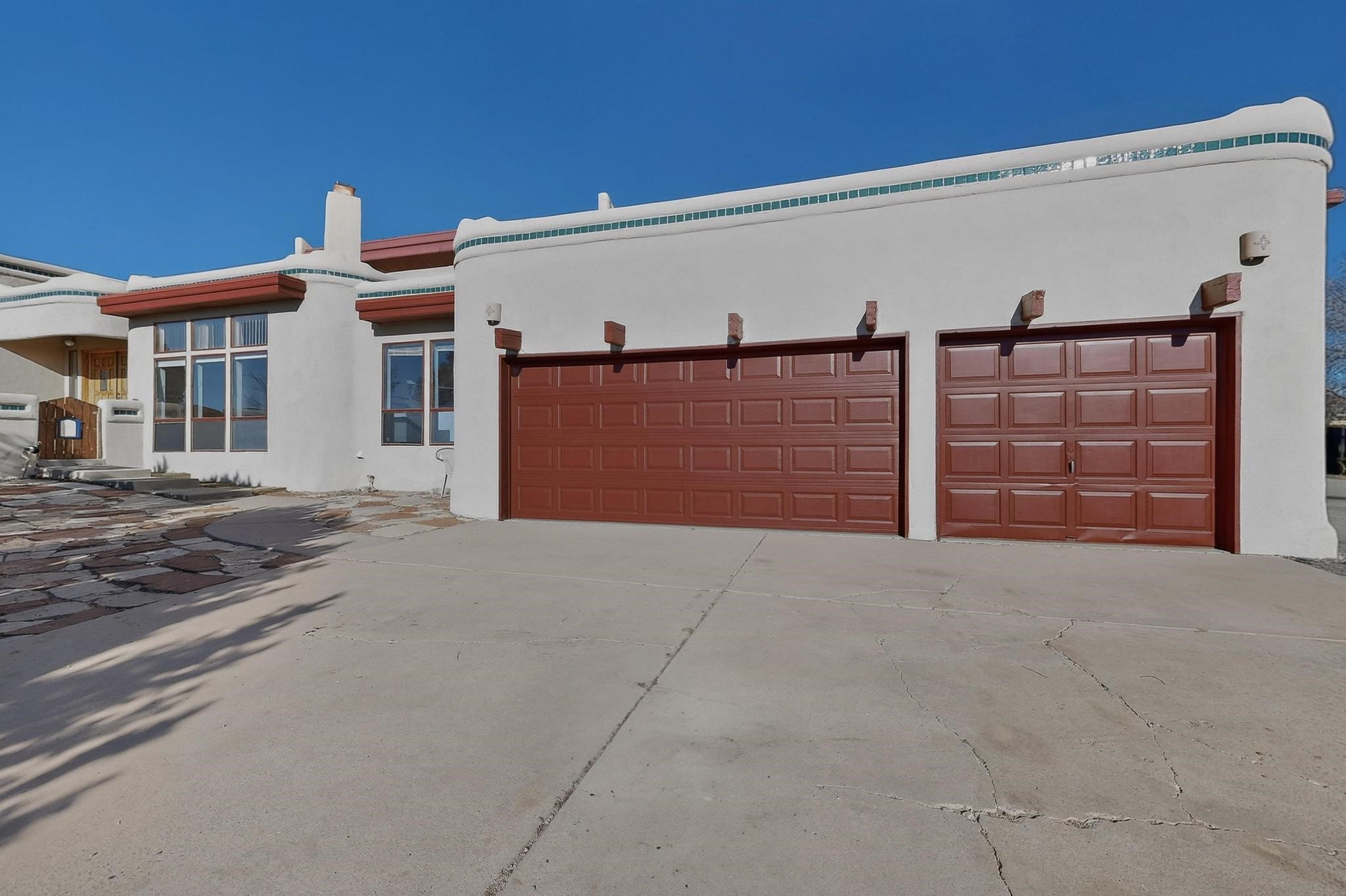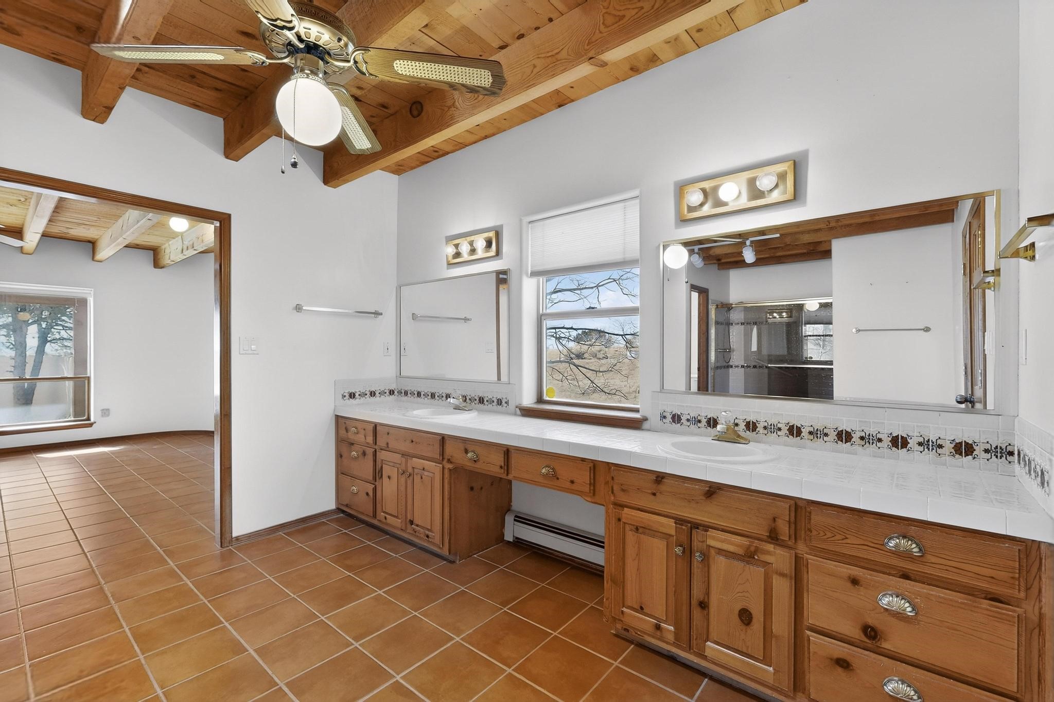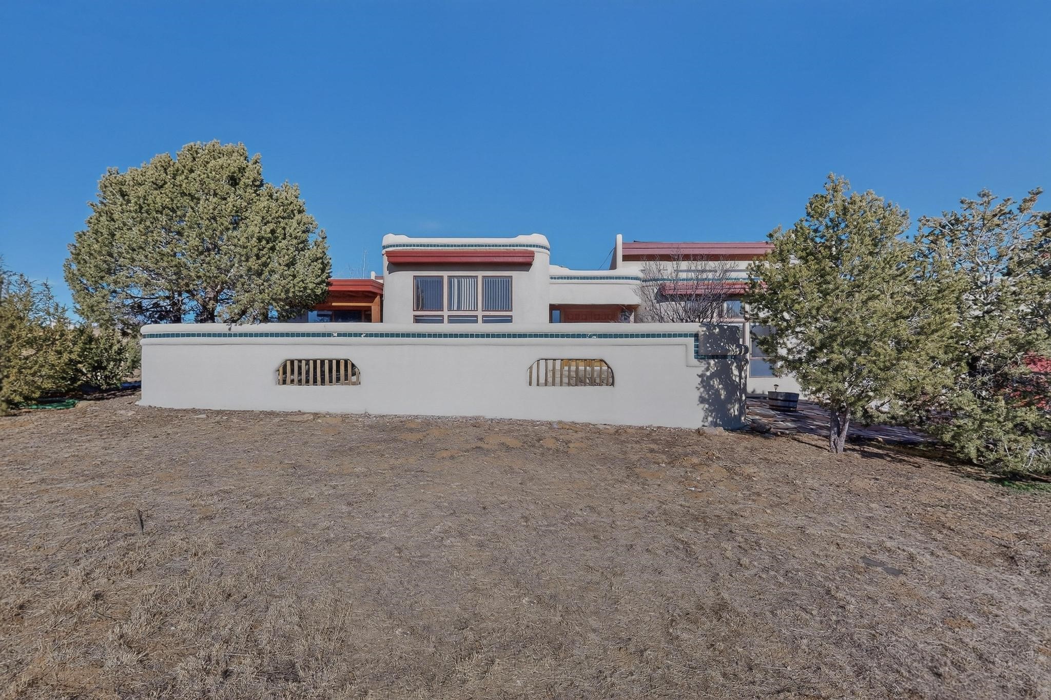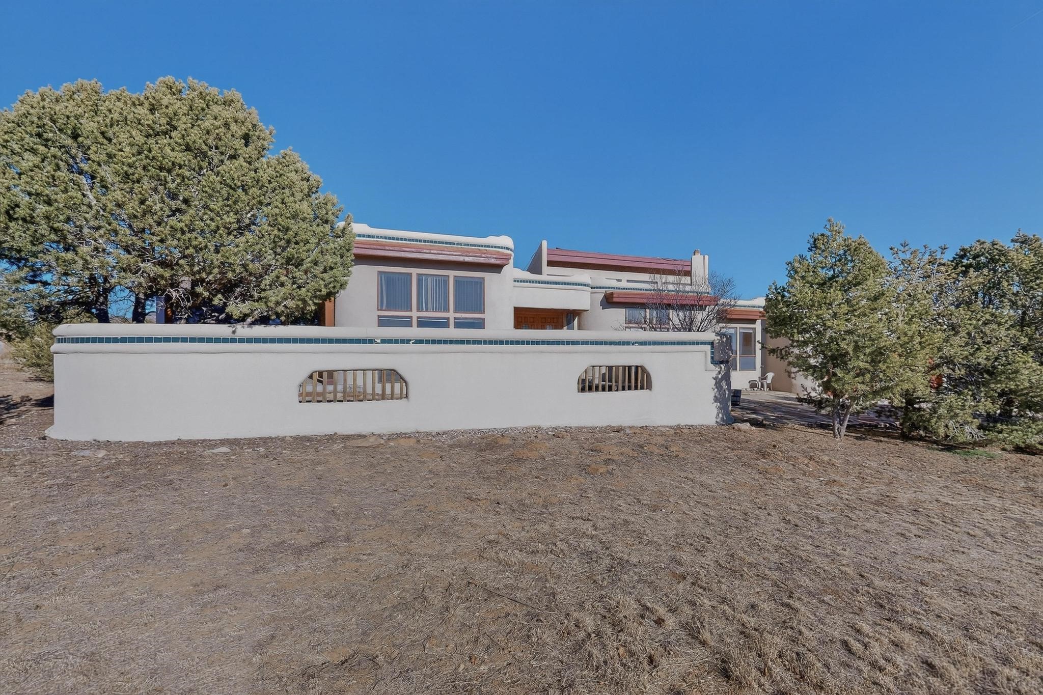 "Dear buyers, please don't let my blemishes and wrinkles scare you. With some love and attention, I can be a safe comforting haven for your family. My bones are good as are the special features of me. Love, 3 Solano Court."Remarkable opportunity to obtain a 3963sf multi generational 3 bedroom home in Eldorado. Born with a passive solar design and high ceilings with deep southern glazing this home is full of sunlight. Saltillo tile floors, beam and viga ceilings, high clerestories, nichos, 2 kiva fireplaces, mini splits and a brand new roof, this contemporary pueblo home is amazing. A spacious country style kitchen with large breakfast bar and breakfast nook will accommodate plenty of family entertainment. There is an adjoining family room, sunken living room and a formal dining room/den off the kitchen. the owners suite features a spacious bathroom and walk in closet, plus there are 3 guest bedrooms with a 3/4 and full bath. The laundry includes a tub and plenty of extra storage. On going through the 3 bay garage you can enter the studio/guest wing which includes a 2 large rooms, bath and a separate 4th garage. A walled private flagstoned courtyard and portal in front and to the rear offer plenty of outside enjoyment. The paved driveway also includes plenty of guest parking. This home is within easy reach of the Eldorado Community Center amenities, local shopping, school, library and senior center, and only minutes into Santa Fe.
