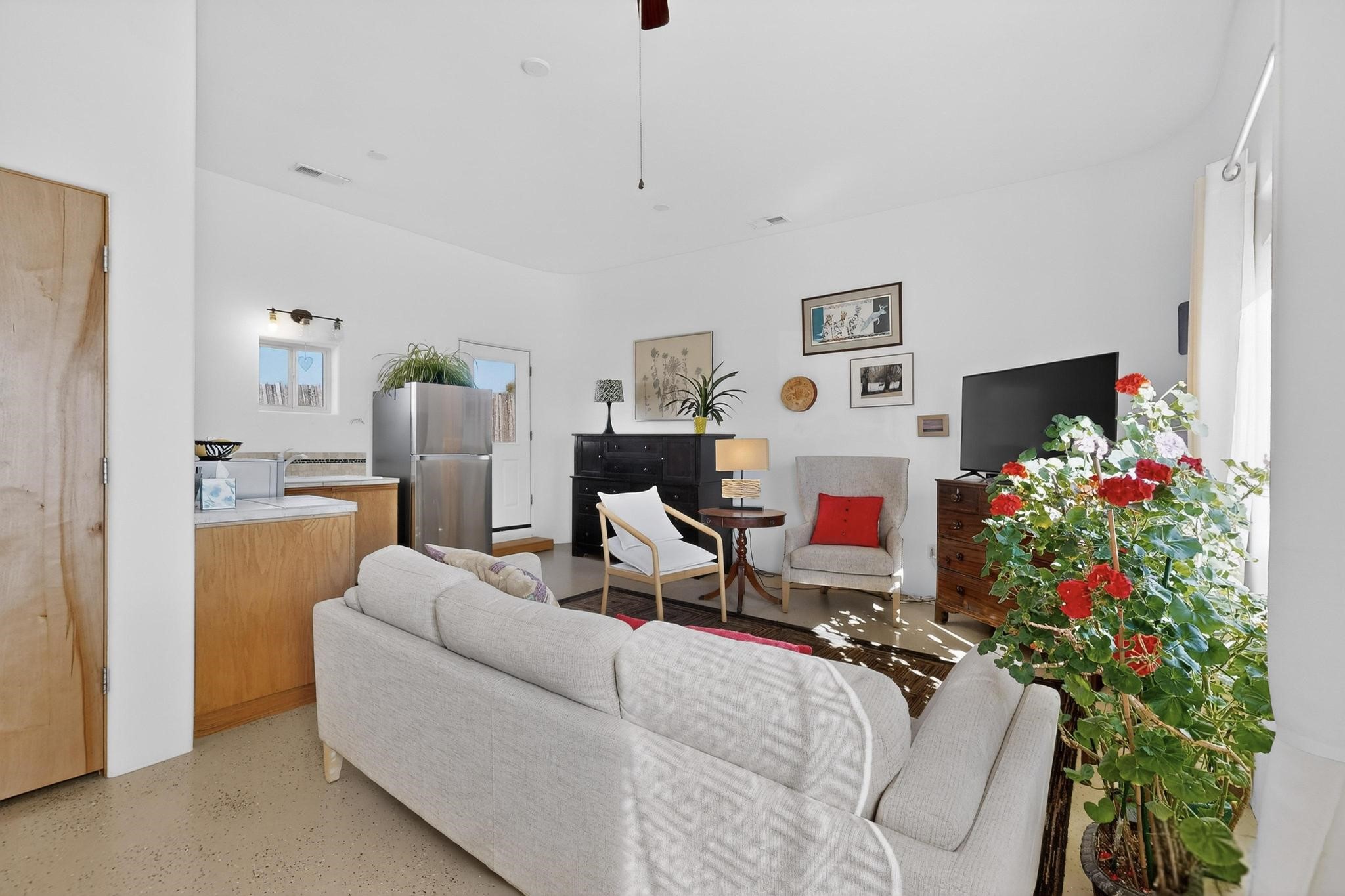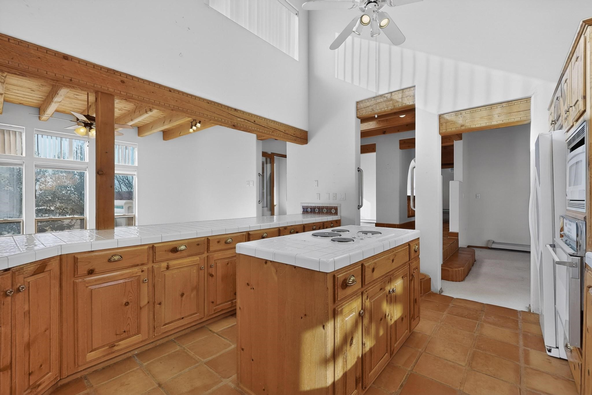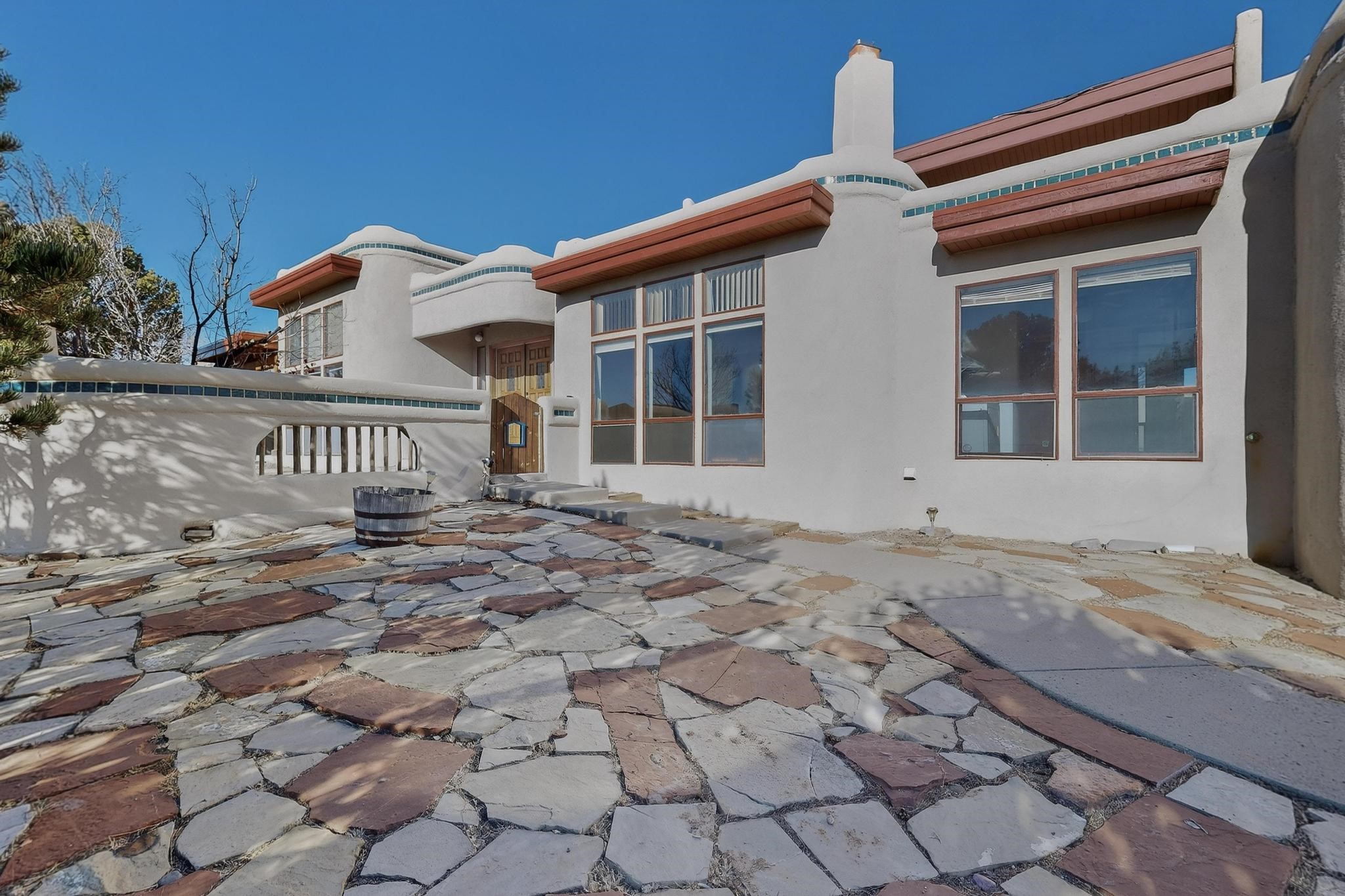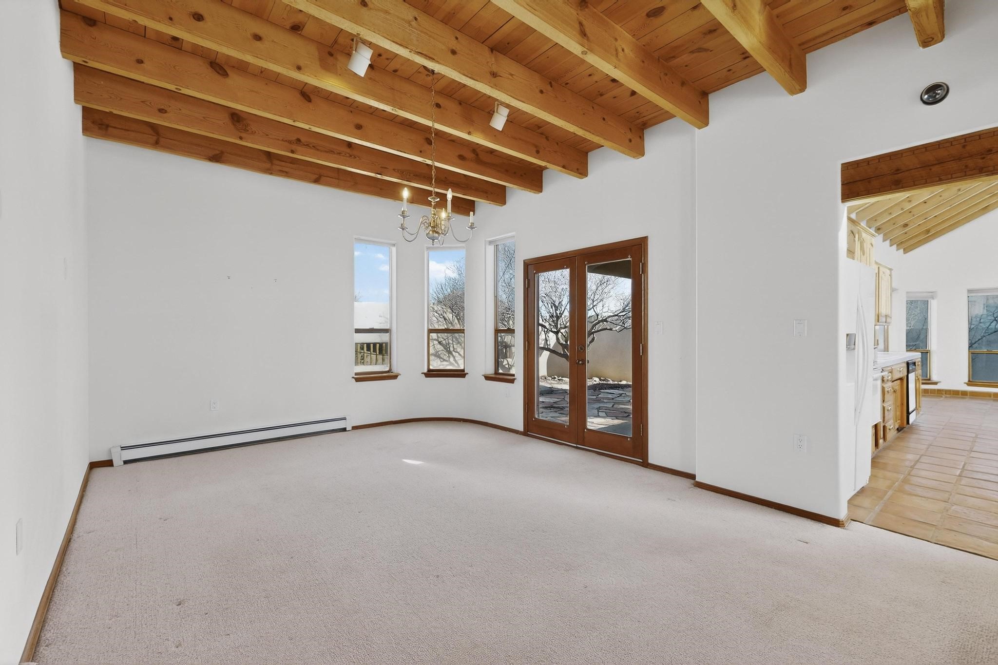 "Dear buyers, please don't let my blemishes and wrinkles scare you. With some love and attention, I can be a safe comforting haven for your family. My bones are good as are the special features of me. Love, 3 Solano Court."Remarkable opportunity to obtain a 3963sf multi generational 3 bedroom home in Eldorado. Born with a passive solar design and high ceilings with deep southern glazing this home is full of sunlight. Saltillo tile floors, beam and viga ceilings, high clerestories, nichos, 2 kiva fireplaces, mini splits and a brand new roof, this contemporary pueblo home is amazing. A spacious country style kitchen with large breakfast bar and breakfast nook will accommodate plenty of family entertainment. There is an adjoining family room, sunken living room and a formal dining room/den off the kitchen. the owners suite features a spacious bathroom and walk in closet, plus there are 3 guest bedrooms with a 3/4 and full bath. The laundry includes a tub and plenty of extra storage. On going through the 3 bay garage you can enter the studio/guest wing which includes a 2 large rooms, bath and a separate 4th garage. A walled private flagstoned courtyard and portal in front and to the rear offer plenty of outside enjoyment. The paved driveway also includes plenty of guest parking. This home is within easy reach of the Eldorado Community Center amenities, local shopping, school, library and senior center, and only minutes into Santa Fe.