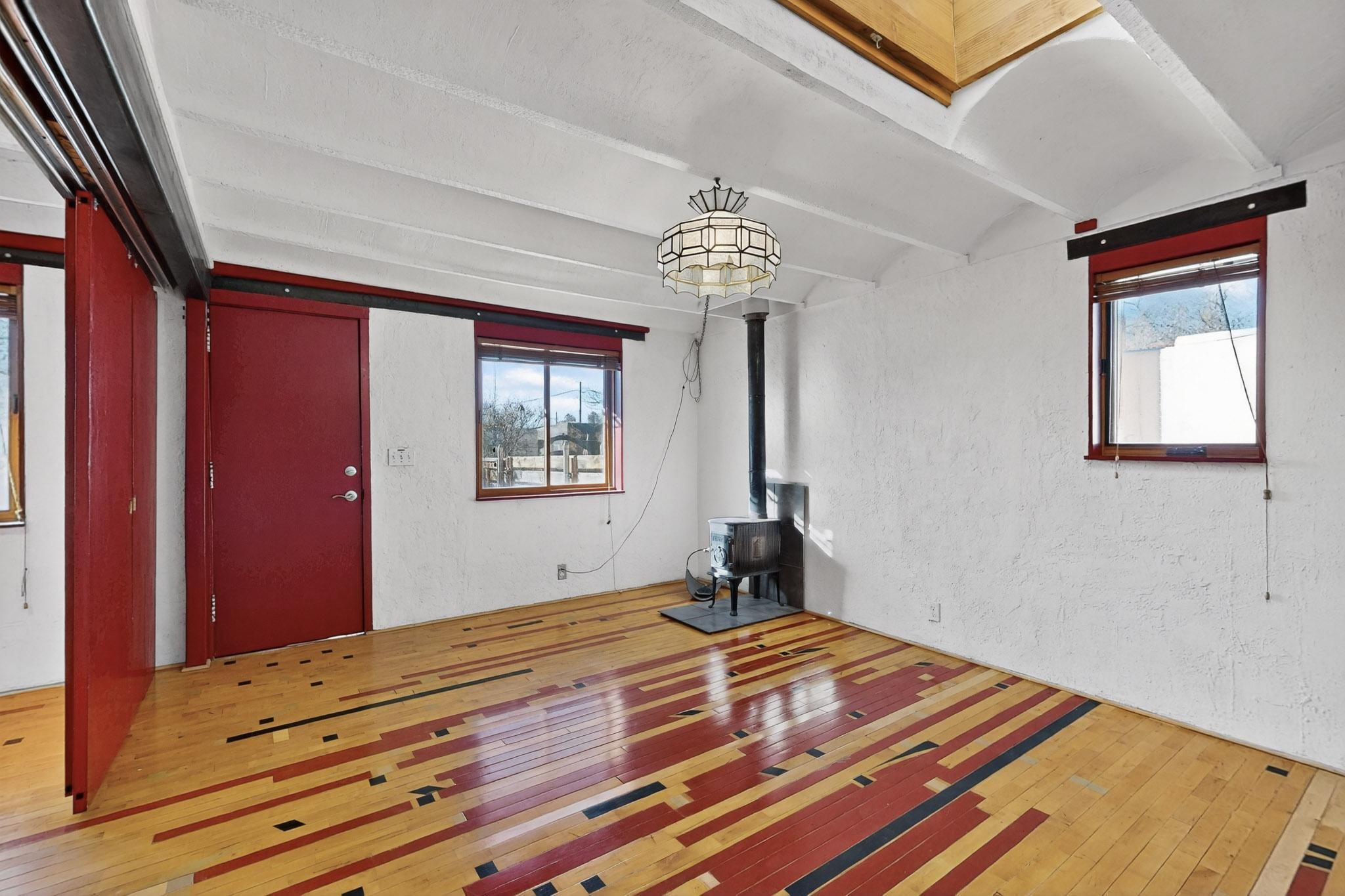 Discover an exceptional investment or live/rent opportunity just minutes from the Santa Fe Plaza and the vibrant Railyard District. This versatile duplex features two spacious 1BR/1BA units totaling 1,320 sq ft, each with its own distinct character, private outdoor space, and two dedicated parking spots. A shared laundry room conveniently connects the units while maintaining privacy. A spray foam roof (10y) with fresh elastomeric coating (2y) and acoustic-insulated separation between units adds comfort, efficiency, and peace of mind. Live in one home and rent the other, or maximize income potential by leasing both--this property offers flexibility for owners, investors, or multi-family living.UNIT A:Warm and artistic, Unit A welcomes you with a large living room featuring a wood stove and hardwood floors reclaimed from a basketball court--a true conversation piece. Custom shoji doors create a stylish division between the living and bedroom spaces. The open-concept kitchen includes a gas stove and blends seamlessly with the living area. Custom coved ceilings, numerous skylights, and unique colorful accents make the interior attractive, and the private fenced outdoor patio is perfect for morning coffee or evening relaxation.UNIT B:Bright and inviting, Unit B boasts a spacious living room with parquet hardwood flooring and abundant natural light. The kitchen showcases unique sheet-metal paneling for a contemporary, artistic touch. The bedroom features serene American Clay plaster walls, adding texture and warmth, with an en-suite bathroom boasts slate tile, walk-in shower, and custom skylights. A large private yard offers ample outdoor living potential--gardening, pets, or entertaining. A 220V hookup in the yard makes your hot tub or workshop vision possible. With its unbeatable location, character-rich interiors, and strong rental flexibility, 617 Paulin St is a rare find in the heart of Santa Fe. A must-see for investors and homeowners alike. Property to be sold as-is.