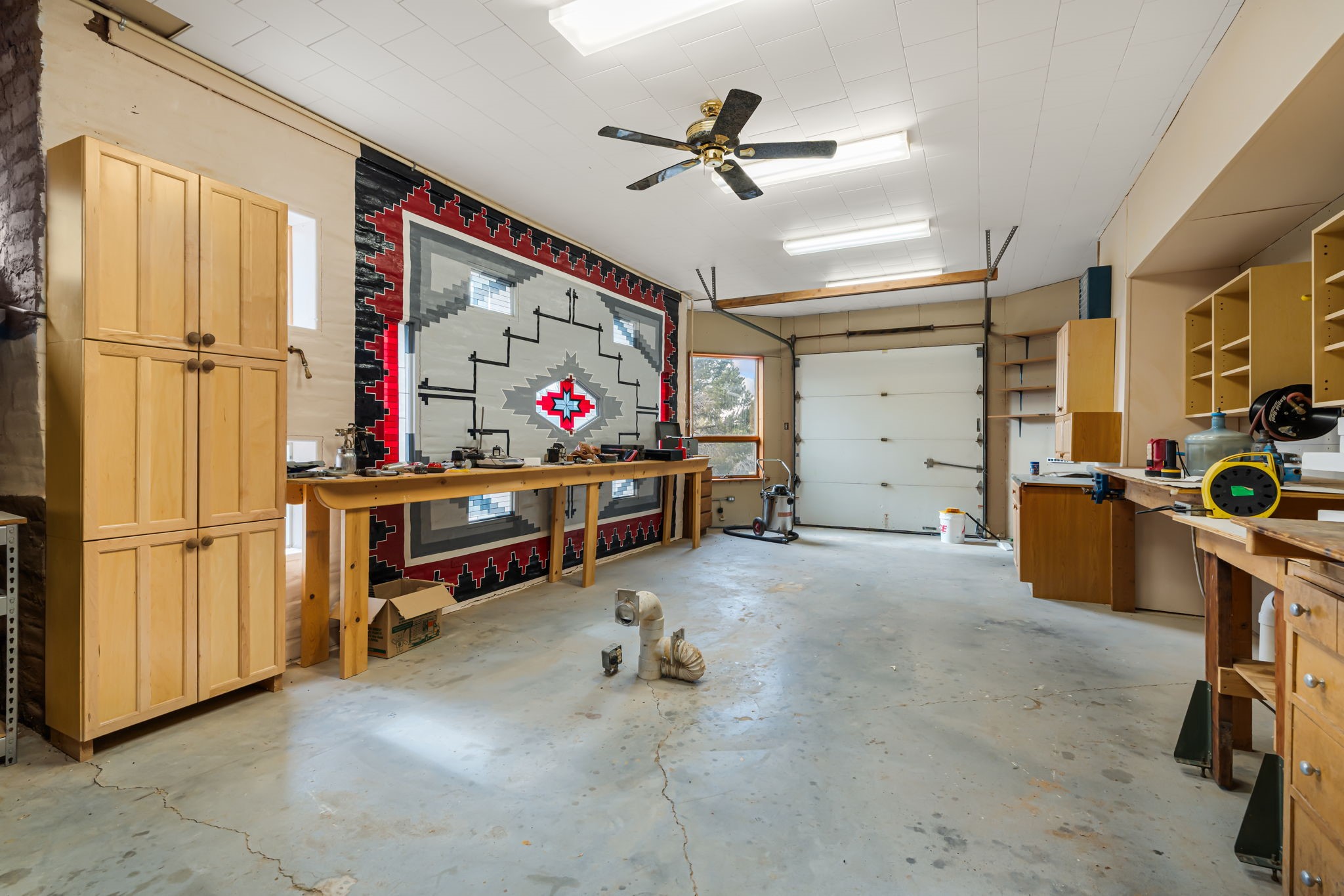 Imagine a stunning retreat atop the world, where the enchanting views of Santa Fe and the renowned New Mexico skies stretch out before you. Elevated at 8,000 feet, this home offers unforgettable western views with sunsets that paint the sky with vibrant colors. Inside, you'll find a blend of artistry and craftsmanship with diamond plaster walls, wooden beams, etched glass and cozy cork ceilings, all framed by a newer roof and stylish stucco that add to its charm. Every corner of this home exudes creativity from the original owners, from the beautifully situated kitchen and living room that bathe in westward light to an inviting pottery/art studio that doubles as a sun room or plant sanctuary. The thoughtful design embraces passive solar elements and solar panels, making it energy efficient. The versatile and separate studio is not just an area to create--it's a dream come true for writers, artists, designers or jewelry makers looking to bring their creativity to life. And with abundant storage throughout, you'll have room for all your inspirations. Located just moments away from the serene Santa Fe National Forest, thrilling slopes at the Santa Fe Ski Basin, and the scenic hiking/biking trails of Dale Ball, this home isn't just a place to live; it's a canvas for your life's next masterpiece.
