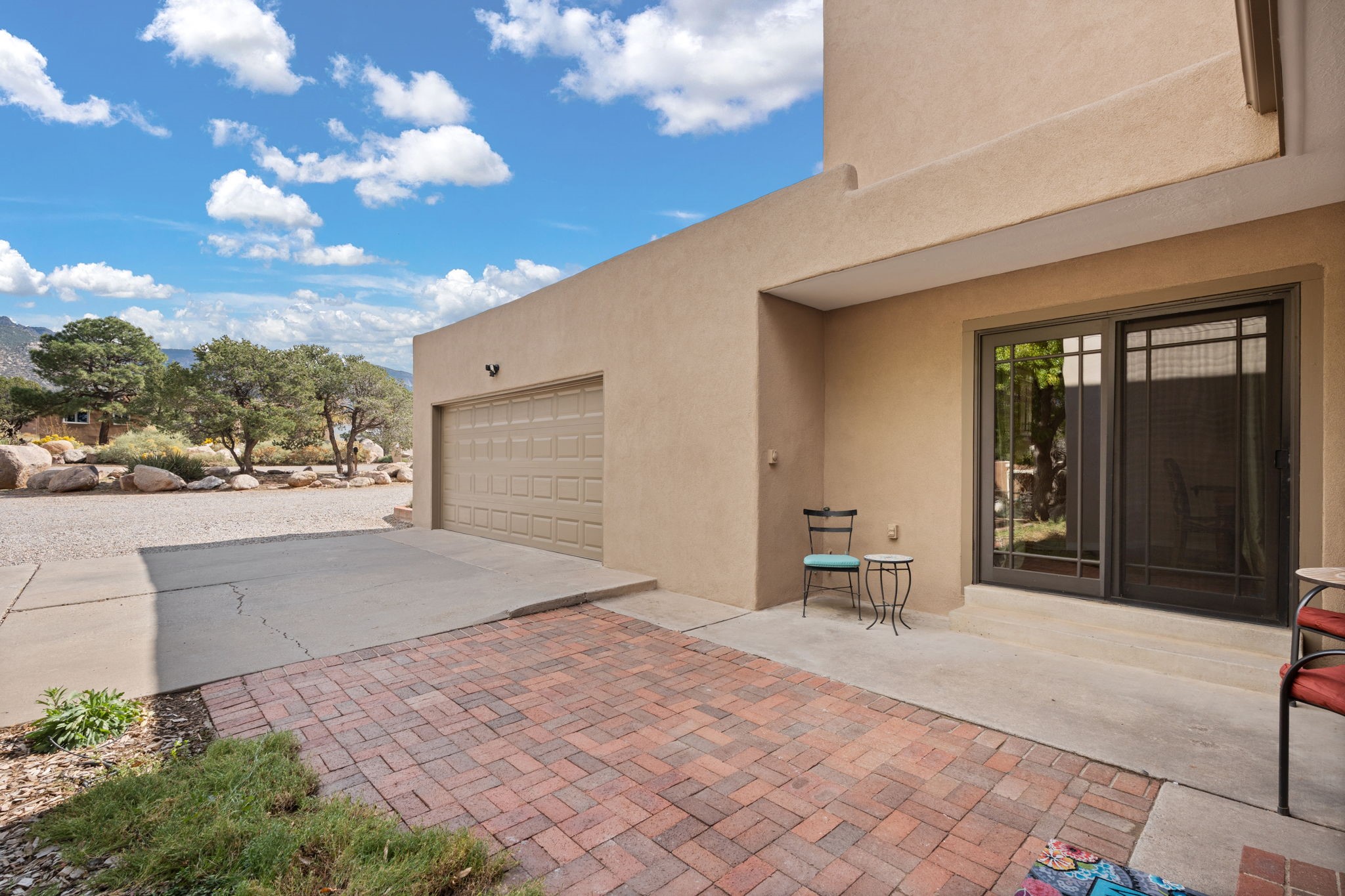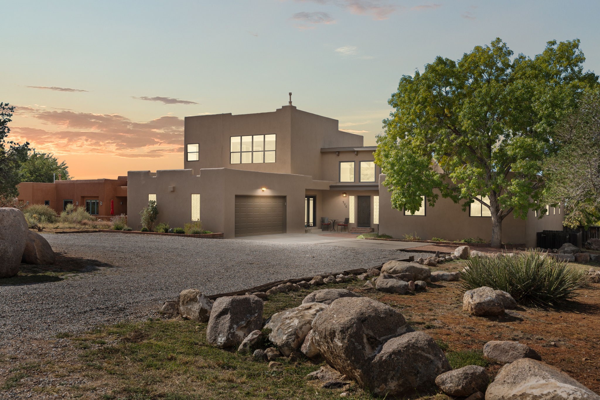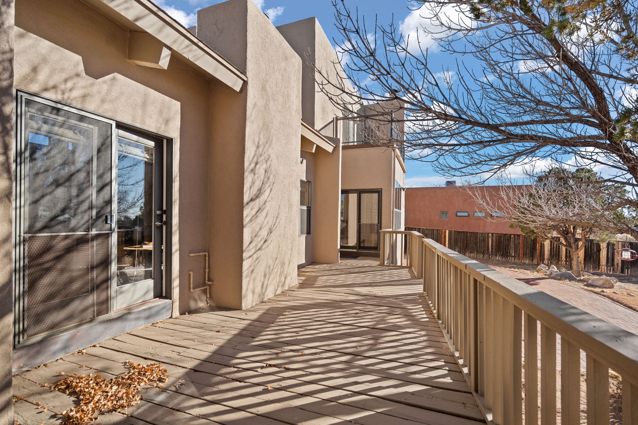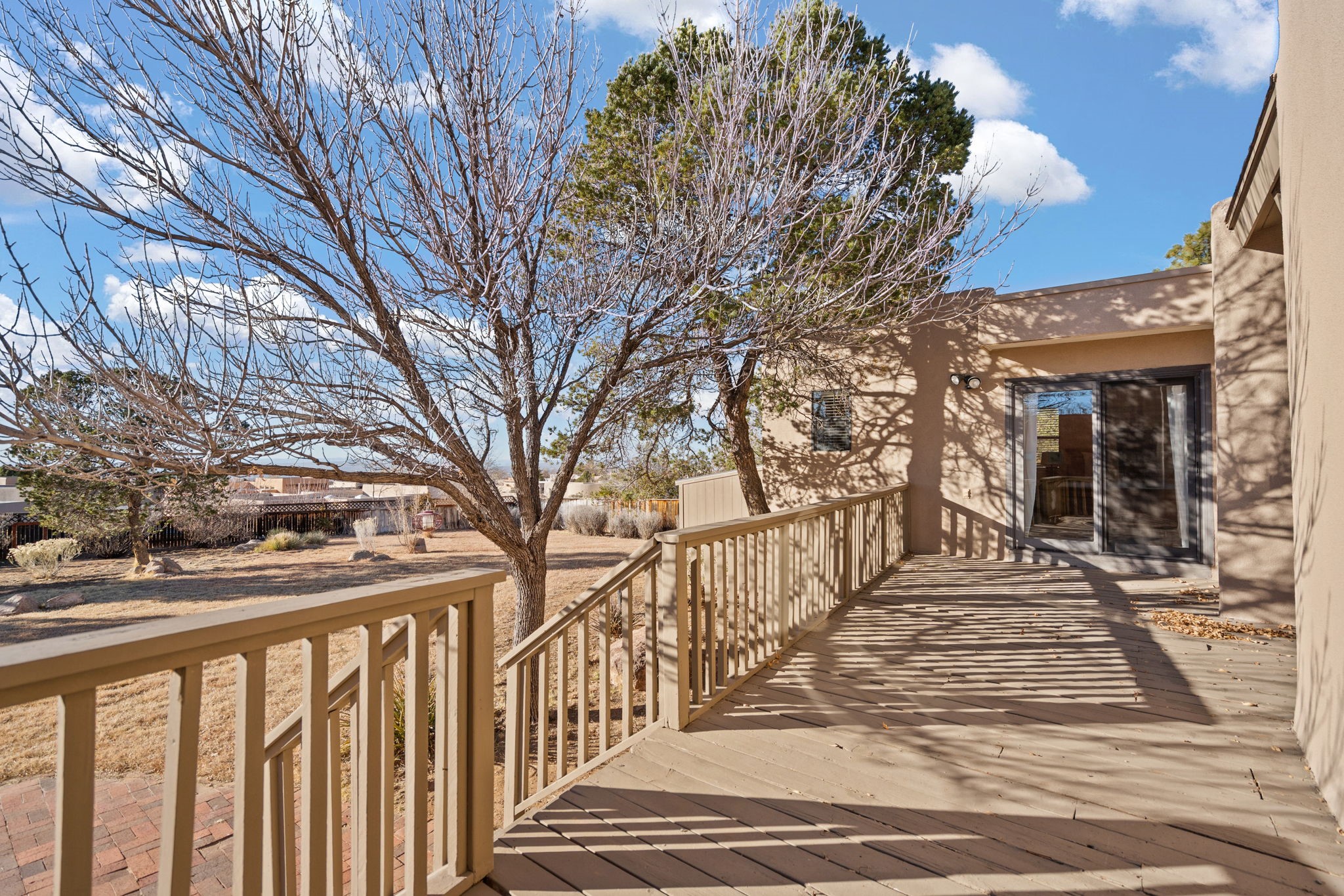 Move-in ready with major upgrades already complete! This stunning Sandia Heights home impresses with new stucco, two brand-new furnaces, a new water heater, newer evaporative coolers, radon mitigation, a whole-house water softener with dechlorinator and potassium treatment system, and a recently passed septic inspection--delivering comfort, efficiency, and true peace of mind. Brand-new decks extend living space off the primary suite as well as into the backyard, ideal for morning coffee, fiery sunsets, and starlit evenings. Inside, gleaming hardwood floors and an open, light-filled layout create an inviting setting for everyday living and entertaining. The chef-inspired kitchen features granite countertops, a gas cooktop island, generous cabinetry, and reverse osmosis filtration, flowing into a welcoming great room complemented by a classic Kiva fireplace. The luxurious upper-level owner's retreat offers a spa-like bath, sitting area, private balcony, and breathtaking Sandia Mountain and city light views. Enjoy nearby hiking and biking trails, peaceful deer crossings, and the serenity of Sandia Heights living, all set on a .58-acre lot with endless backyard potential- your ABQ Dream Home awaits.