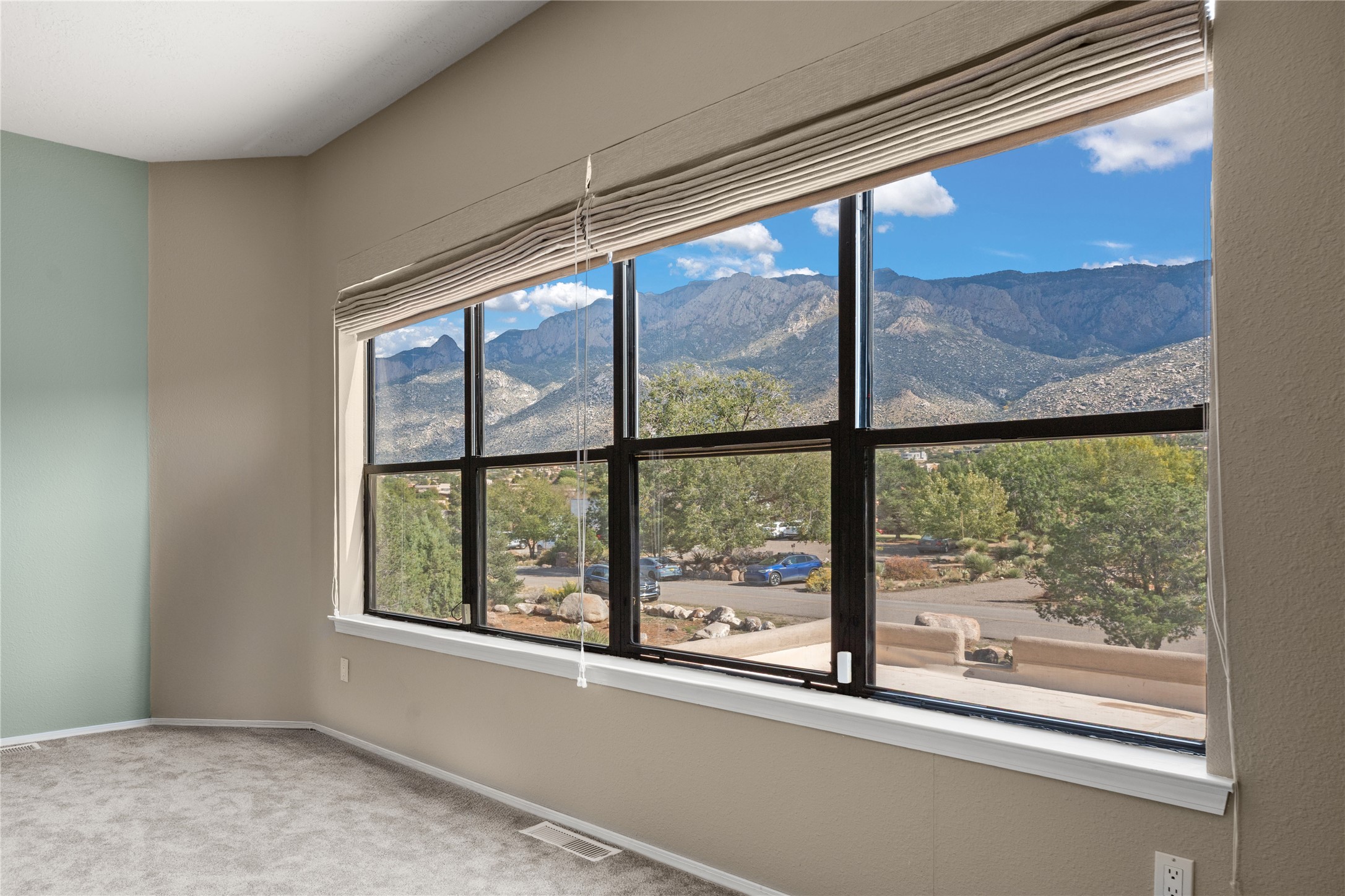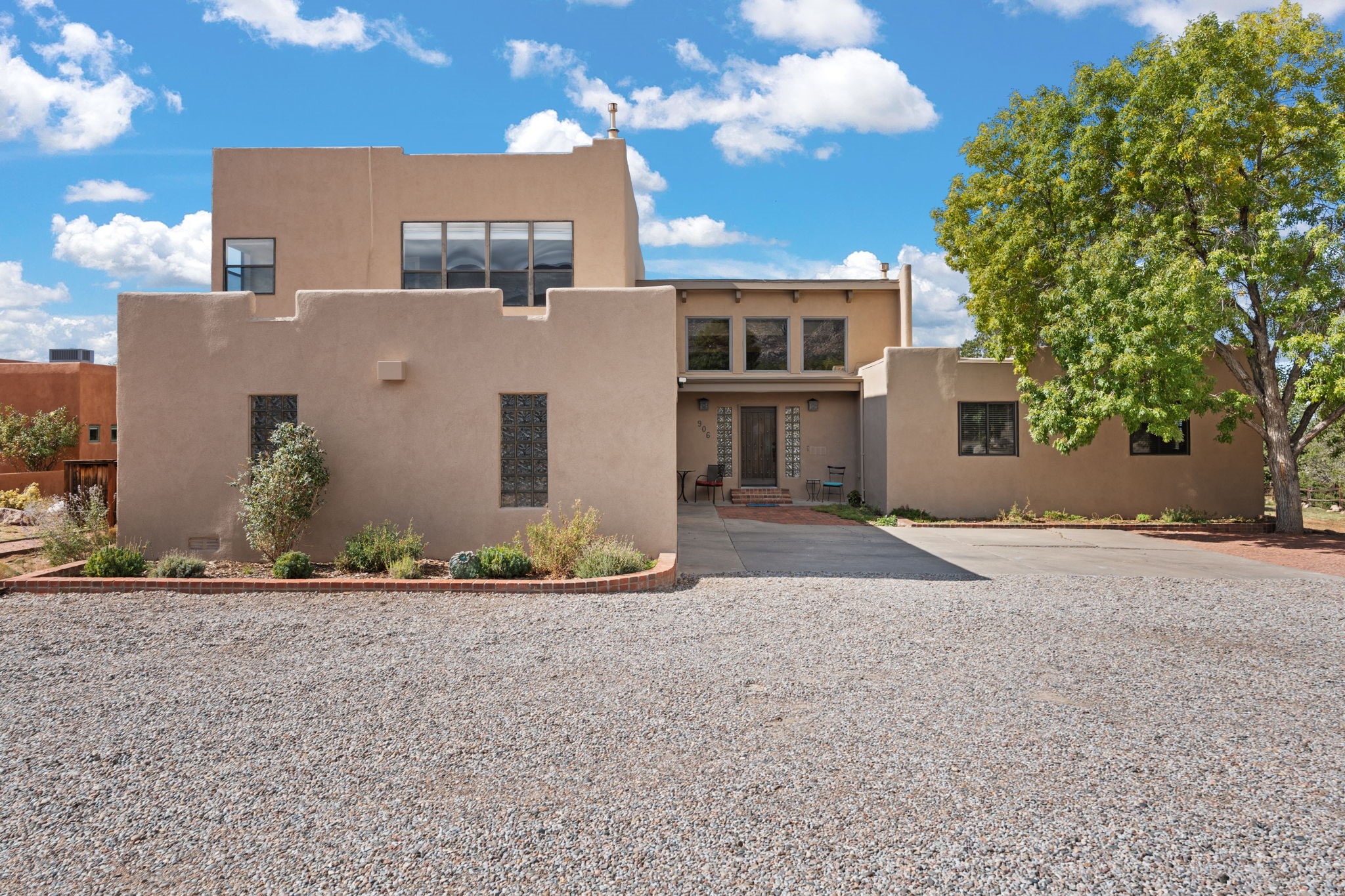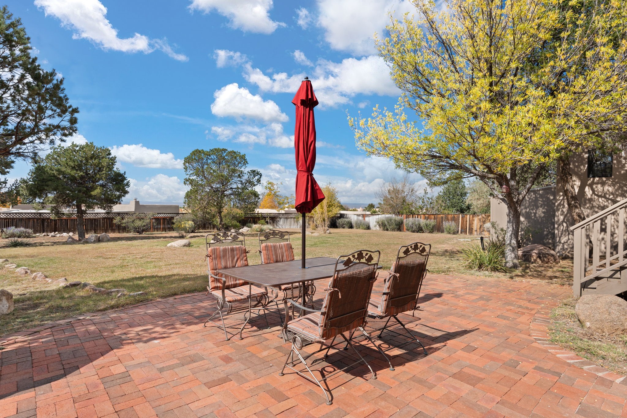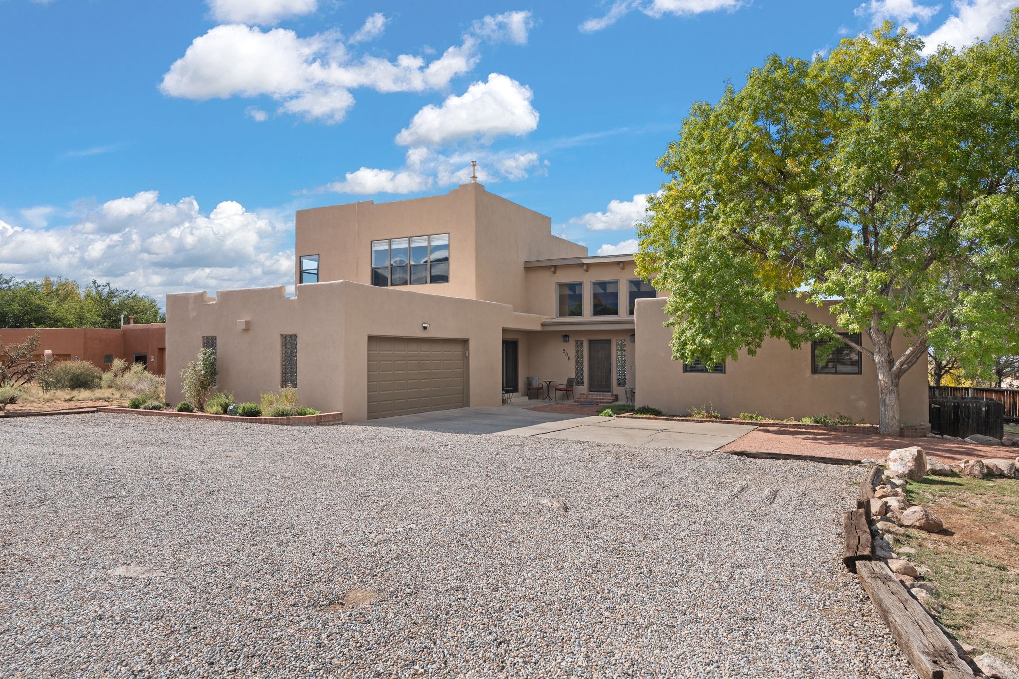 Move-in ready with major upgrades already complete! This stunning Sandia Heights home impresses with new stucco, two brand-new furnaces, a new water heater, newer evaporative coolers, radon mitigation, a whole-house water softener with dechlorinator and potassium treatment system, and a recently passed septic inspection--delivering comfort, efficiency, and true peace of mind. Brand-new decks extend living space off the primary suite as well as into the backyard, ideal for morning coffee, fiery sunsets, and starlit evenings. Inside, gleaming hardwood floors and an open, light-filled layout create an inviting setting for everyday living and entertaining. The chef-inspired kitchen features granite countertops, a gas cooktop island, generous cabinetry, and reverse osmosis filtration, flowing into a welcoming great room complemented by a classic Kiva fireplace. The luxurious upper-level owner's retreat offers a spa-like bath, sitting area, private balcony, and breathtaking Sandia Mountain and city light views. Enjoy nearby hiking and biking trails, peaceful deer crossings, and the serenity of Sandia Heights living, all set on a .58-acre lot with endless backyard potential- your ABQ Dream Home awaits.