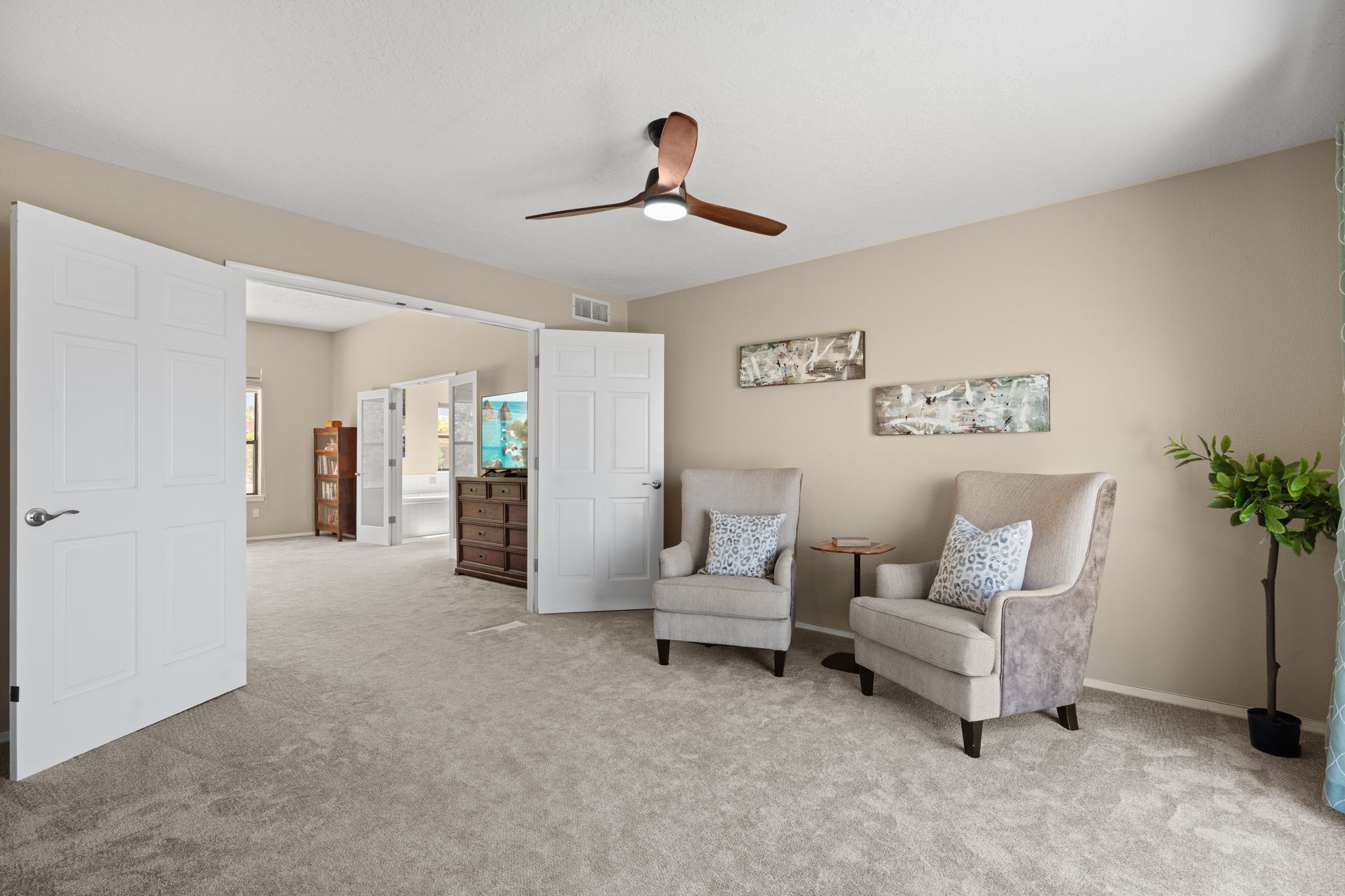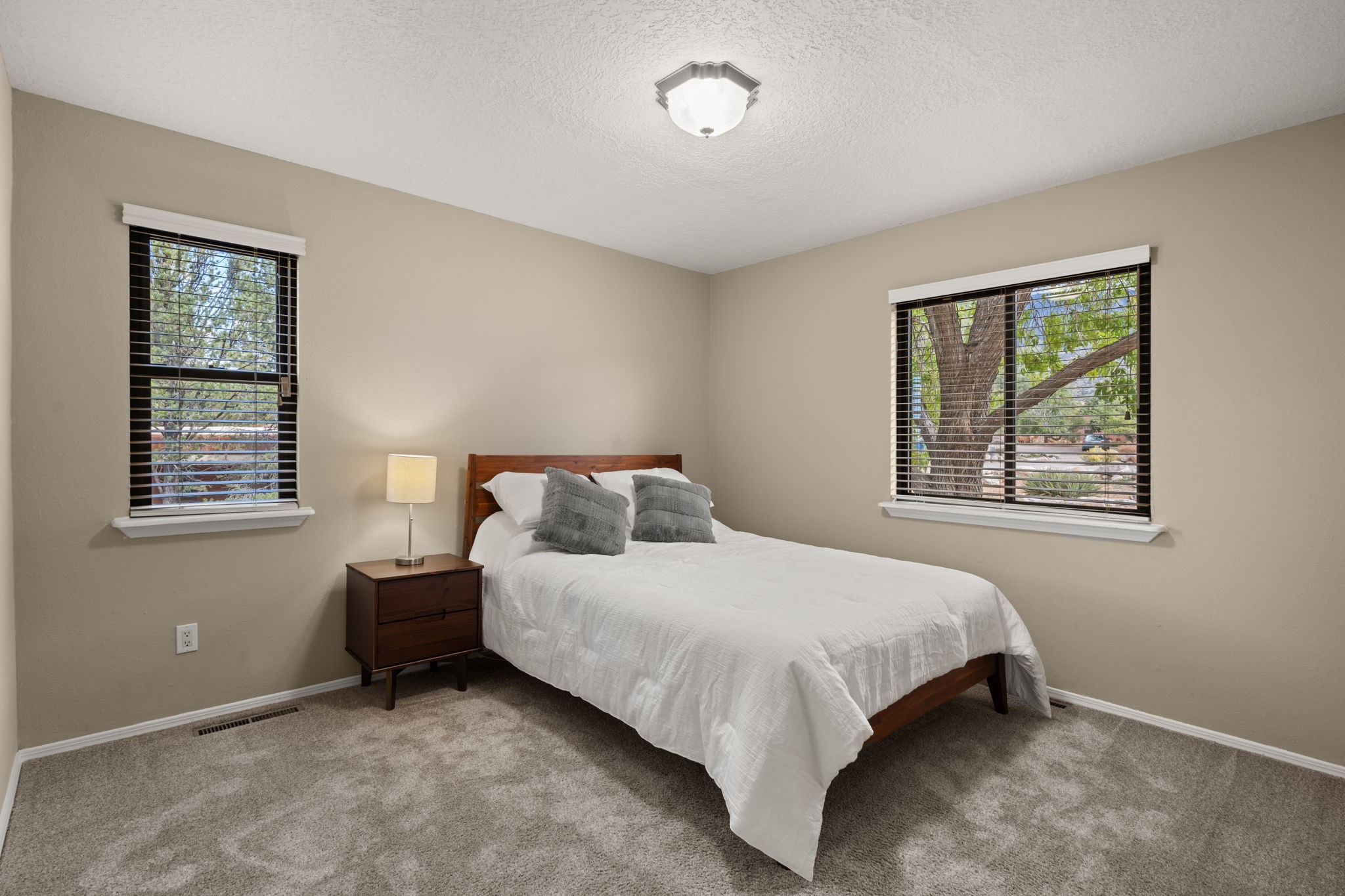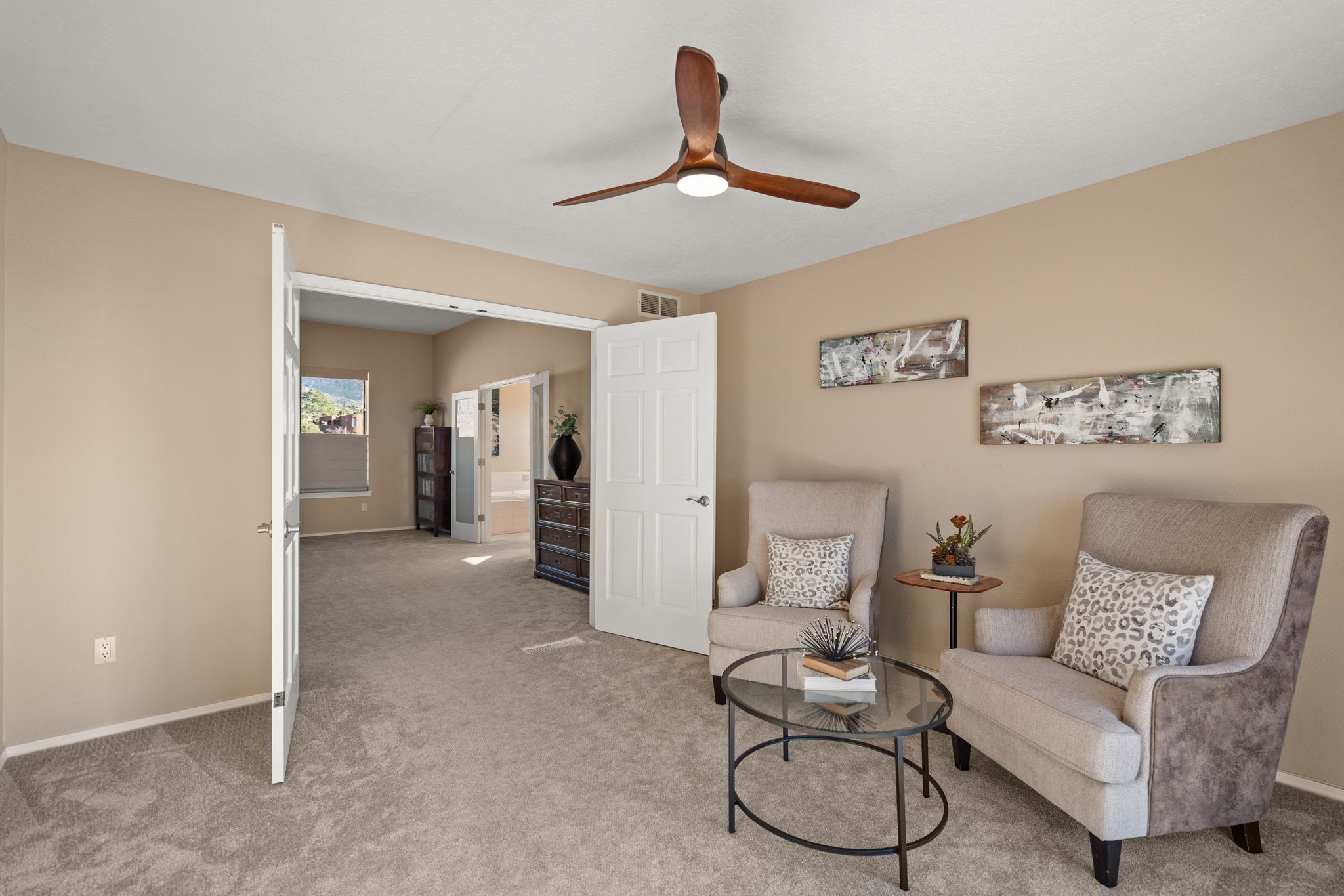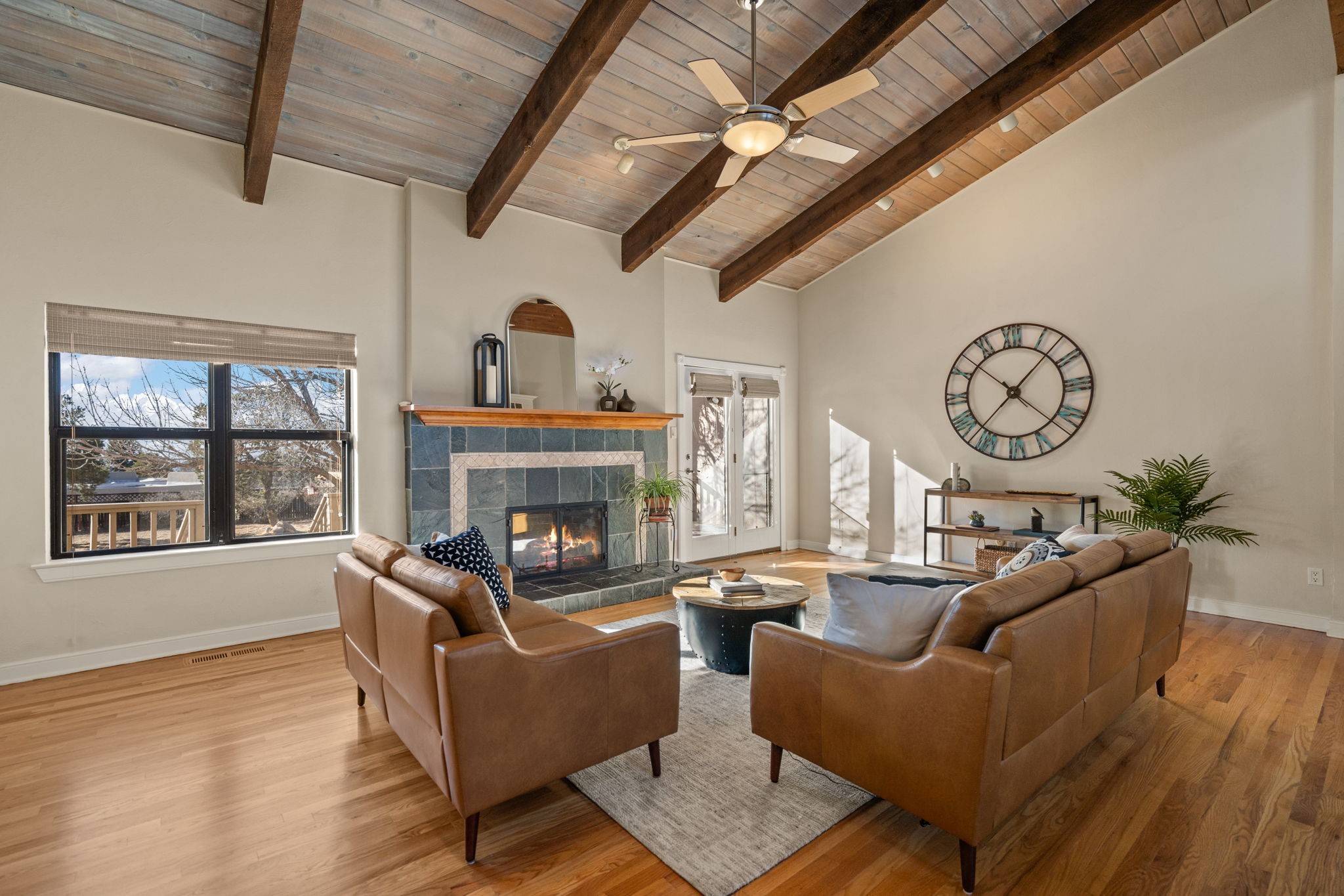 Move-in ready with major upgrades already complete! This stunning Sandia Heights home impresses with new stucco, two brand-new furnaces, a new water heater, newer evaporative coolers, radon mitigation, a whole-house water softener with dechlorinator and potassium treatment system, and a recently passed septic inspection--delivering comfort, efficiency, and true peace of mind. Brand-new decks extend living space off the primary suite as well as into the backyard, ideal for morning coffee, fiery sunsets, and starlit evenings. Inside, gleaming hardwood floors and an open, light-filled layout create an inviting setting for everyday living and entertaining. The chef-inspired kitchen features granite countertops, a gas cooktop island, generous cabinetry, and reverse osmosis filtration, flowing into a welcoming great room complemented by a classic Kiva fireplace. The luxurious upper-level owner's retreat offers a spa-like bath, sitting area, private balcony, and breathtaking Sandia Mountain and city light views. Enjoy nearby hiking and biking trails, peaceful deer crossings, and the serenity of Sandia Heights living, all set on a .58-acre lot with endless backyard potential- your ABQ Dream Home awaits.