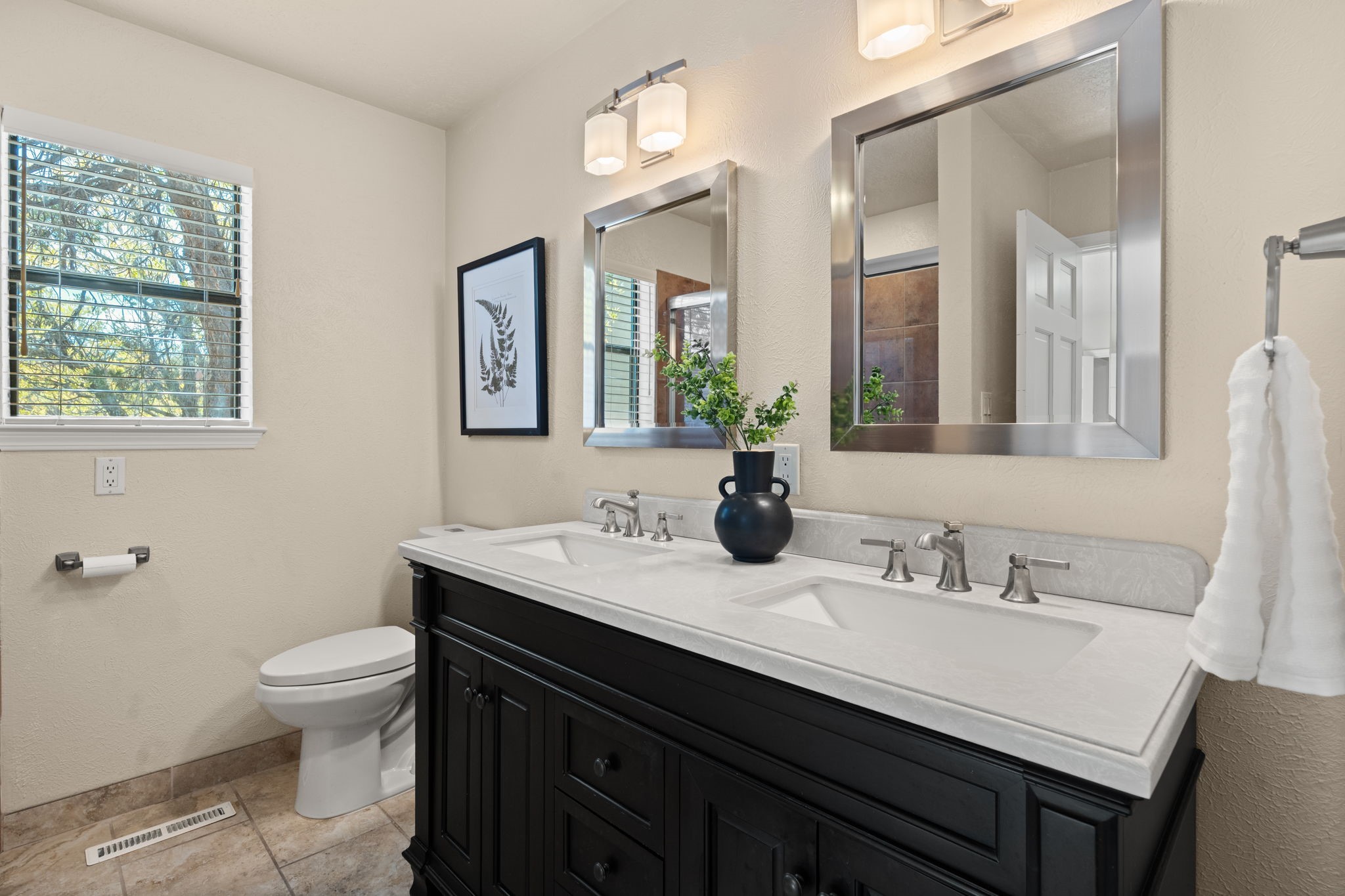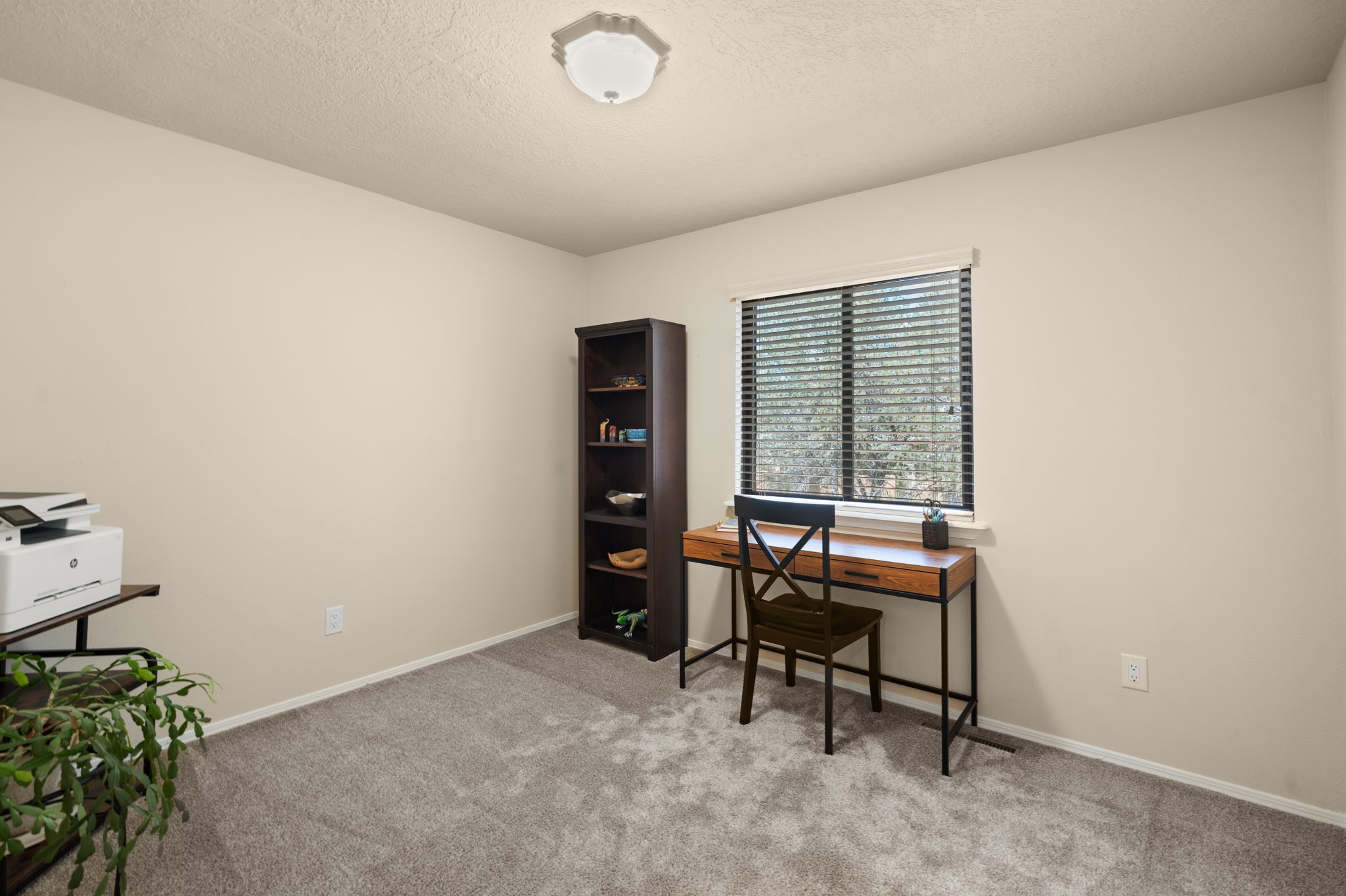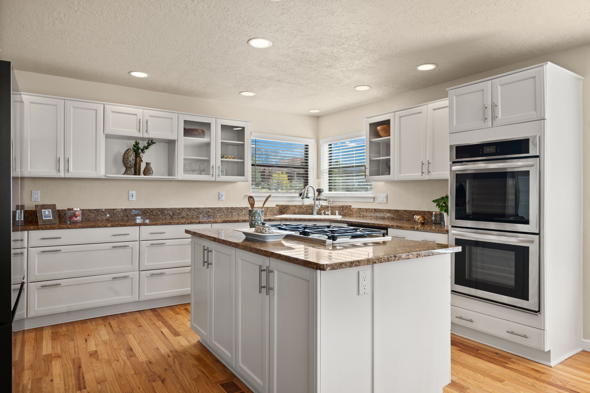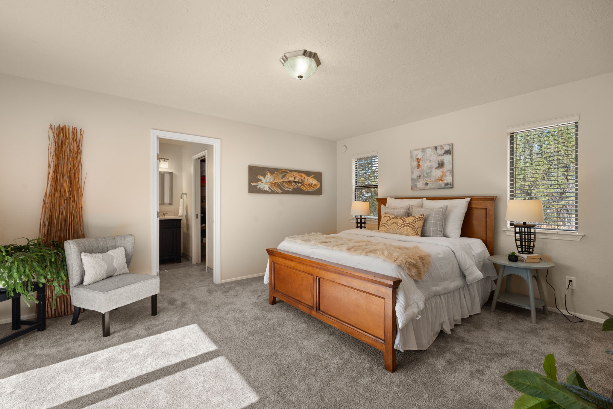 Move-in ready with major upgrades already complete! This stunning Sandia Heights home impresses with new stucco, two brand-new furnaces, a new water heater, newer evaporative coolers, radon mitigation, a whole-house water softener with dechlorinator and potassium treatment system, and a recently passed septic inspection--delivering comfort, efficiency, and true peace of mind. Brand-new decks extend living space off the primary suite as well as into the backyard, ideal for morning coffee, fiery sunsets, and starlit evenings. Inside, gleaming hardwood floors and an open, light-filled layout create an inviting setting for everyday living and entertaining. The chef-inspired kitchen features granite countertops, a gas cooktop island, generous cabinetry, and reverse osmosis filtration, flowing into a welcoming great room complemented by a classic Kiva fireplace. The luxurious upper-level owner's retreat offers a spa-like bath, sitting area, private balcony, and breathtaking Sandia Mountain and city light views. Enjoy nearby hiking and biking trails, peaceful deer crossings, and the serenity of Sandia Heights living, all set on a .58-acre lot with endless backyard potential- your ABQ Dream Home awaits.