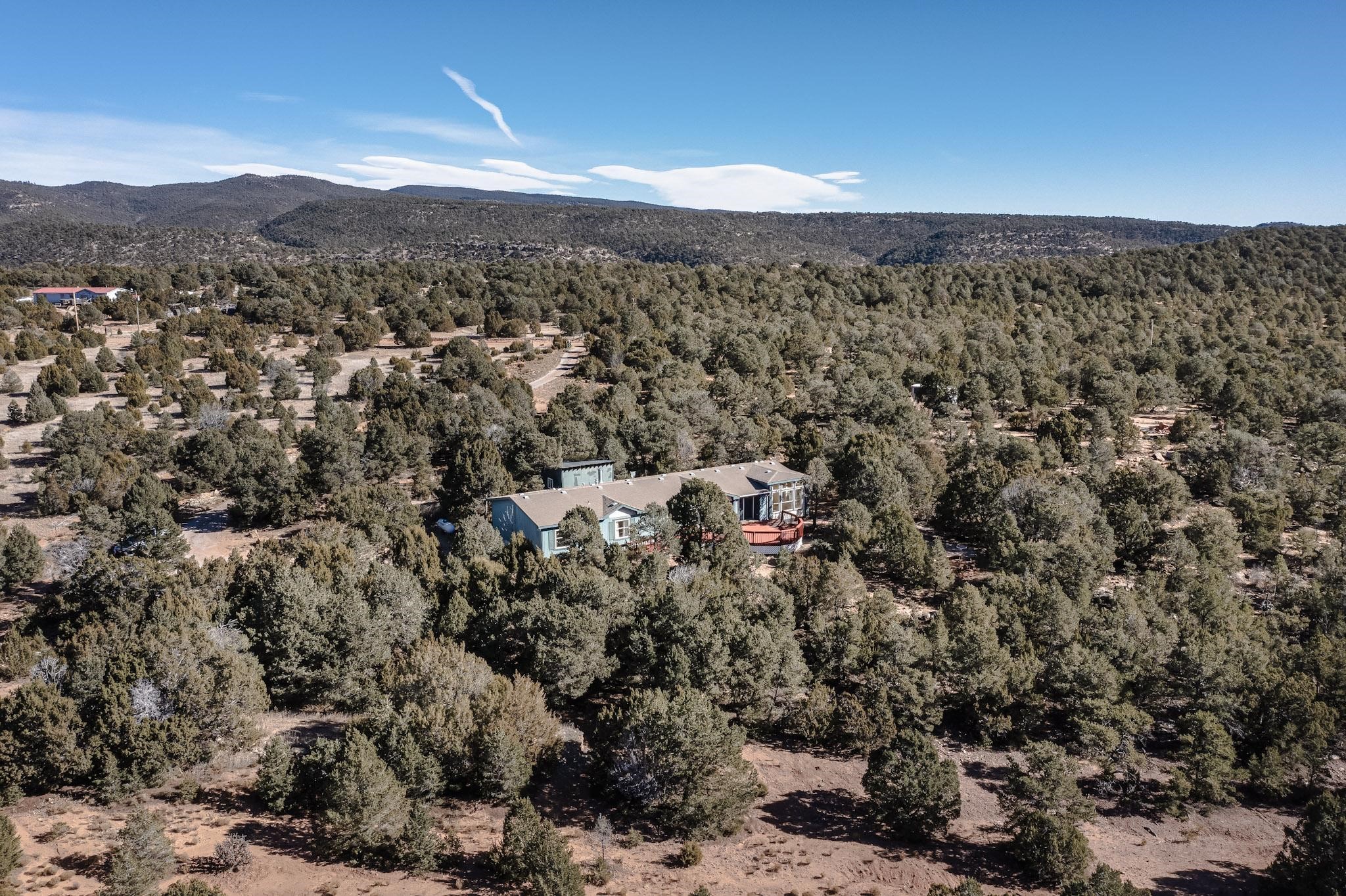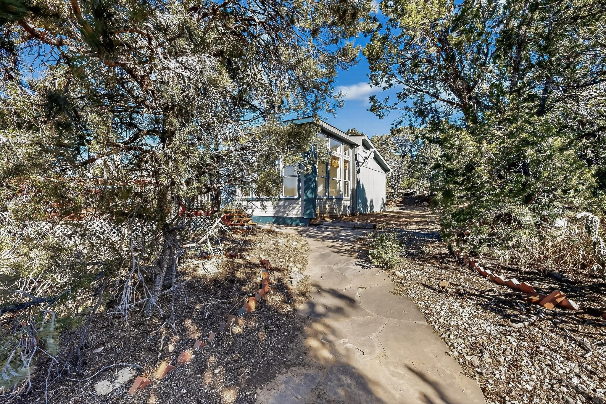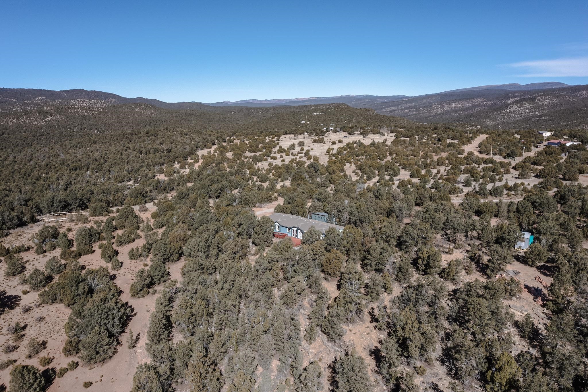 PRICED TO SELL - Discover the perfect blend of country living and modern convenience at 103 Hidden Valley Ranch Road, Ilfeld. The centerpiece of this expansive acreage is a well-maintained 2001 4 bedroom, 3 bath Oak Creek manufactured home, boasting a generous 2,418 square feet. This layout offers flexibility of living spaces with living room, family room, open concept kitchen, primary bedroom with adjacent study/large bathroom, split bedroom design with 3 additional bedrooms on the other end of the home. With 10.02 fully fenced acres at your disposal, the property is ideally suited for horse lovers, outdoor aficionados, hiking lovers, and star gazers. There is an existing small corral and a hitching post as in the past horses were present. Imagine waking up to the stunning sunrise over your own valley, with your horses grazing peacefully nearby. Additional features include marble window sills throughout, woodburning fireplace, large well house containing 2500 gallon storage tank servicing the private well, brand new GE refrigerator and electric stove/oven. Used washer, dryer, dishwasher, refrigerated air conditioning, 2 water heaters and flagstone patio with firepit and benches. Utilities are underground and fiber optic cable for fast internet are in place. For folks seeking a destination, rural property, please consider 103 Hidden Valley Ranch Road.