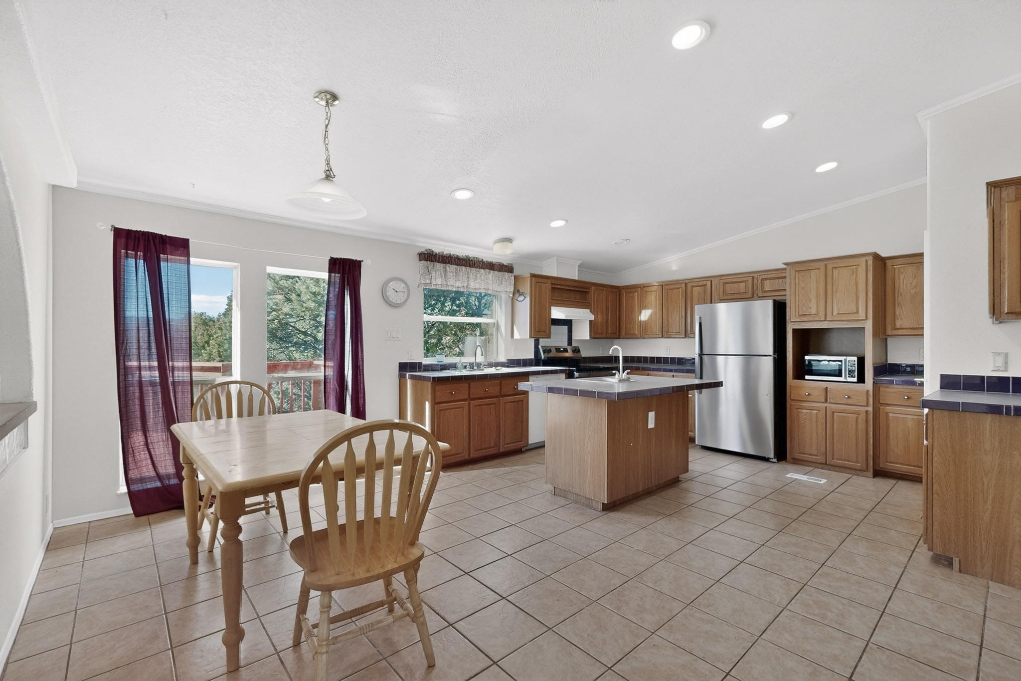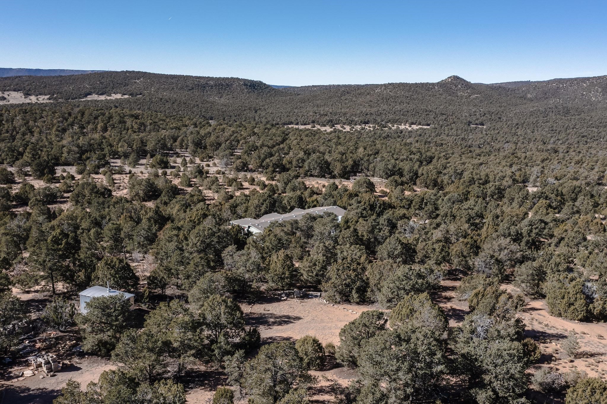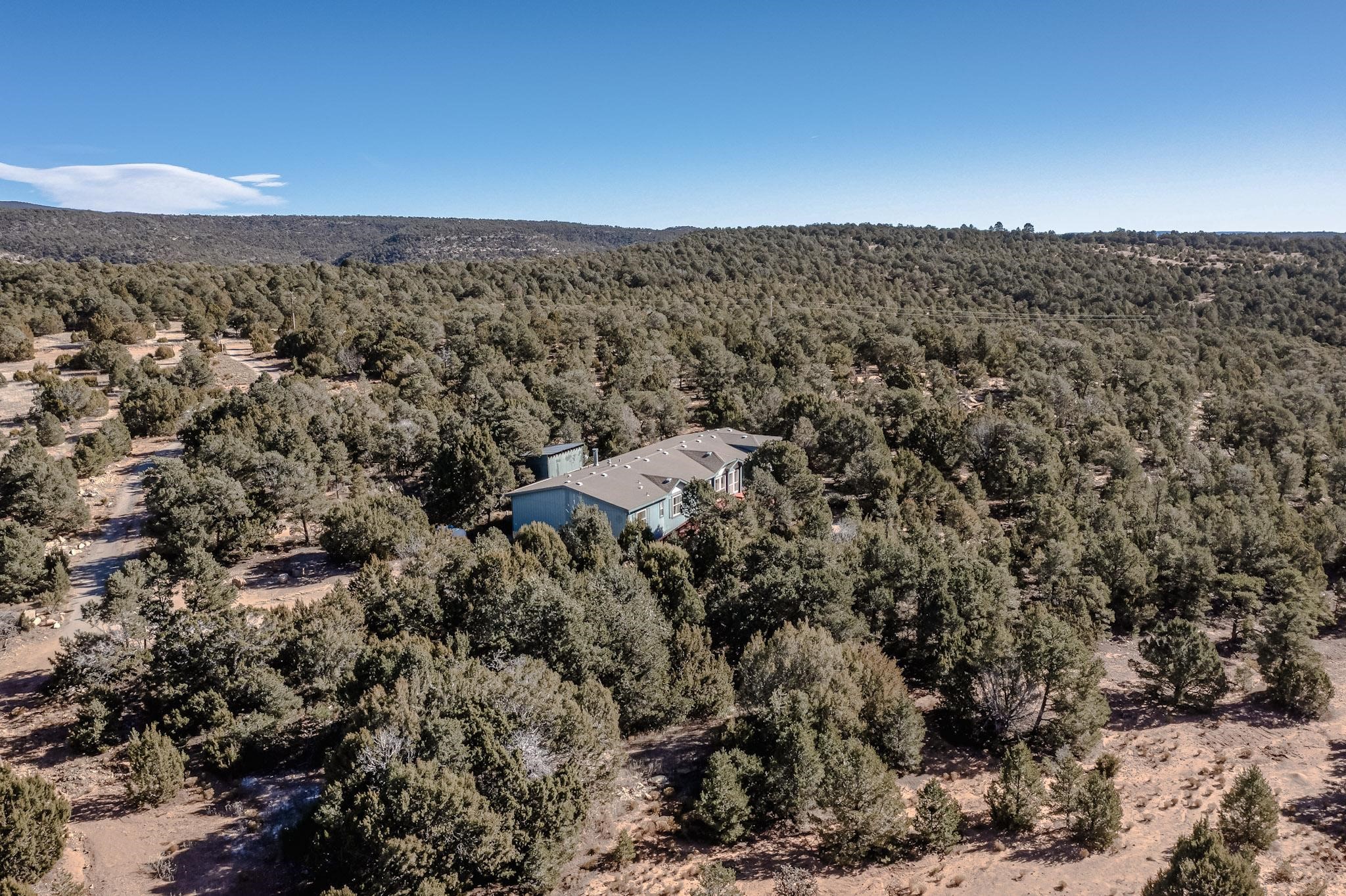 PRICED TO SELL - Discover the perfect blend of country living and modern convenience at 103 Hidden Valley Ranch Road, Ilfeld. The centerpiece of this expansive acreage is a well-maintained 2001 4 bedroom, 3 bath Oak Creek manufactured home, boasting a generous 2,418 square feet. This layout offers flexibility of living spaces with living room, family room, open concept kitchen, primary bedroom with adjacent study/large bathroom, split bedroom design with 3 additional bedrooms on the other end of the home. With 10.02 fully fenced acres at your disposal, the property is ideally suited for horse lovers, outdoor aficionados, hiking lovers, and star gazers. There is an existing small corral and a hitching post as in the past horses were present. Imagine waking up to the stunning sunrise over your own valley, with your horses grazing peacefully nearby. Additional features include marble window sills throughout, woodburning fireplace, large well house containing 2500 gallon storage tank servicing the private well, brand new GE refrigerator and electric stove/oven. Used washer, dryer, dishwasher, refrigerated air conditioning, 2 water heaters and flagstone patio with firepit and benches. Utilities are underground and fiber optic cable for fast internet are in place. For folks seeking a destination, rural property, please consider 103 Hidden Valley Ranch Road.