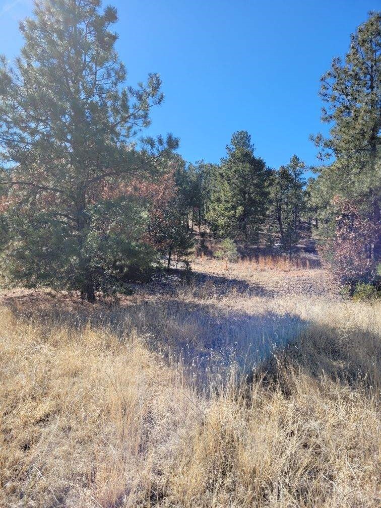 This is one of the most gorgeous lots located within the gated Birds of a Feather LGBTQ community. It is also the largest lot in the community at 3.10 acres offering privacy and magnificent panoramic views of the surrounding mountains and Glorieta Mesa. There is a flat building site on a ridge overlooking a meadow and the lot has many large pine trees.