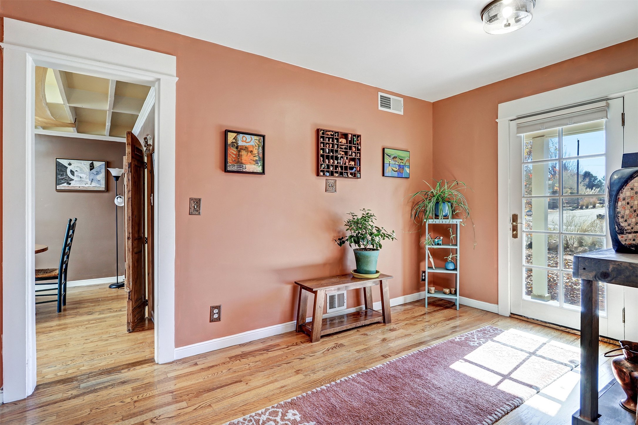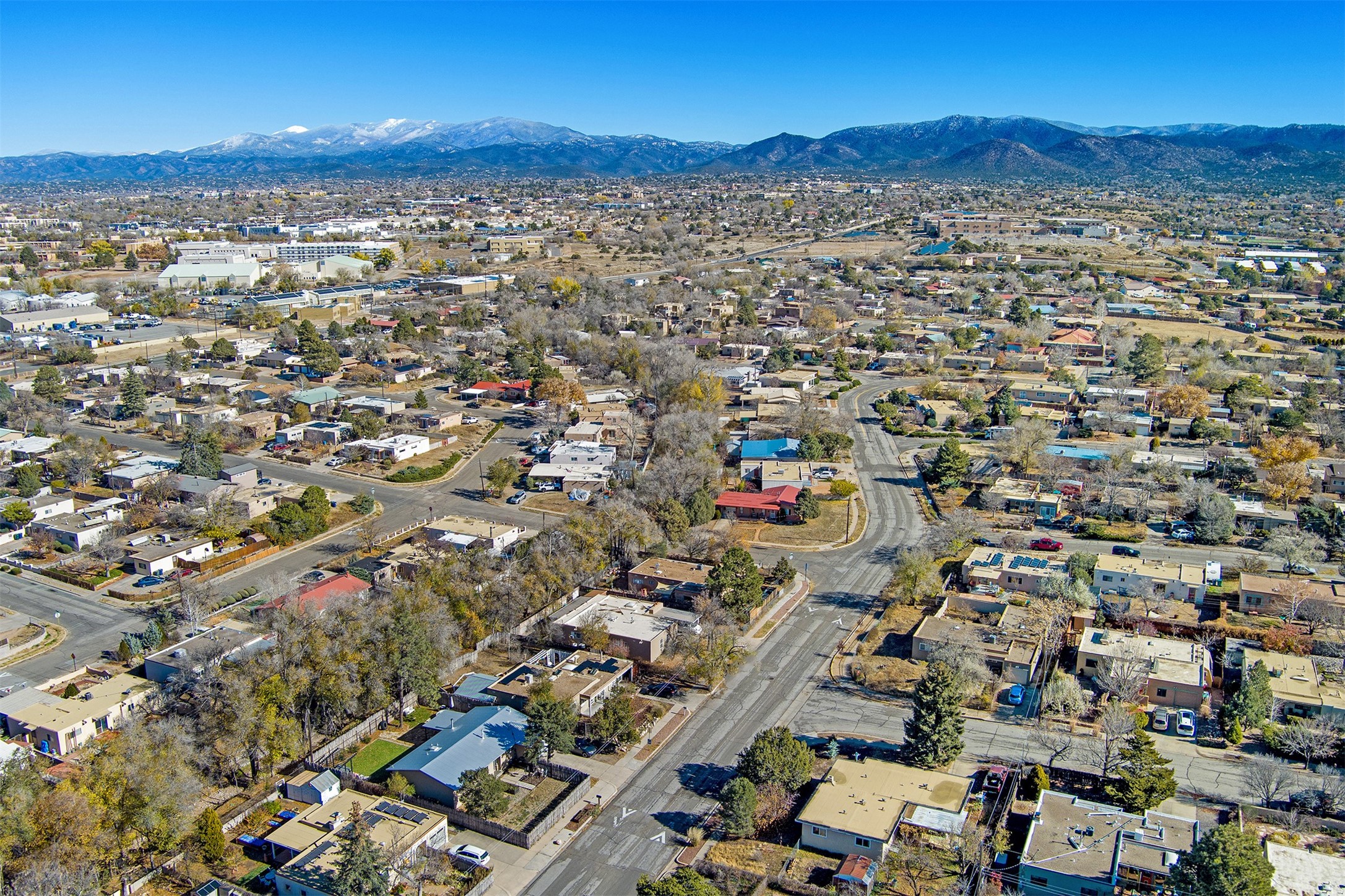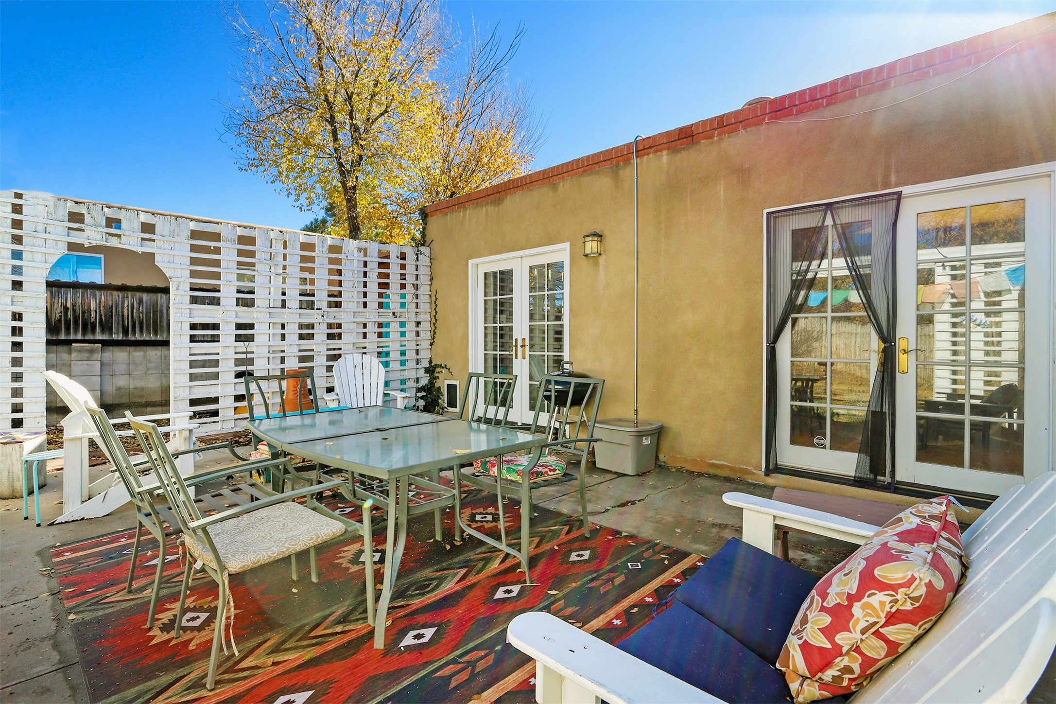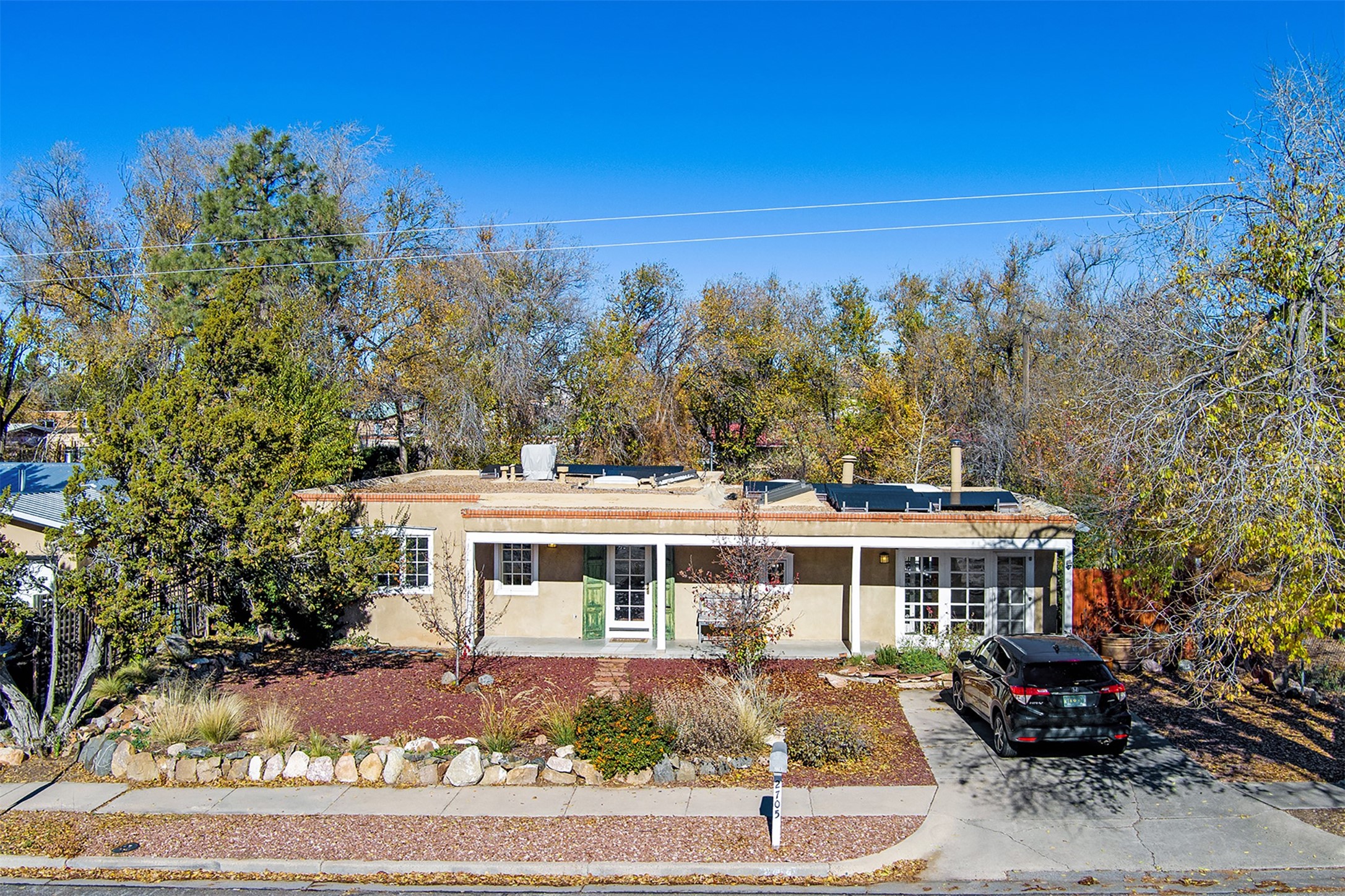 Charming, quintessential Stamm Territorial Style home located in the heart of Santa Fe. Perfect for the romantic artist, or family wanting to grow roots in a well-established neighborhood close to gorgeous city parks and recreation center. 2705 Camino Chueco is a light-filled beauty offering 3 Bedrooms and 2 Baths, generous sized dining and living areas, hardwood flooring, mud-room entry off the kitchen and a private studio perfect for any hobby or activity that fills you with joy. The primary bedroom has a large walk-in closet with built-ins and access to the large private backyard with new coyote fencing for added privacy. The sunny dining and third bedroom room also open onto the back patio via French doors, and speaking of doors, notice all the artistic touches including fun and fanciful doors and many details throughout the interior and exterior. New in February 2025 are the solar panels making your energy consumption footprint throughout the year near to zero! Tour today and feel for yourself the abundance of character and charm that is 2705 Camino Chueco.