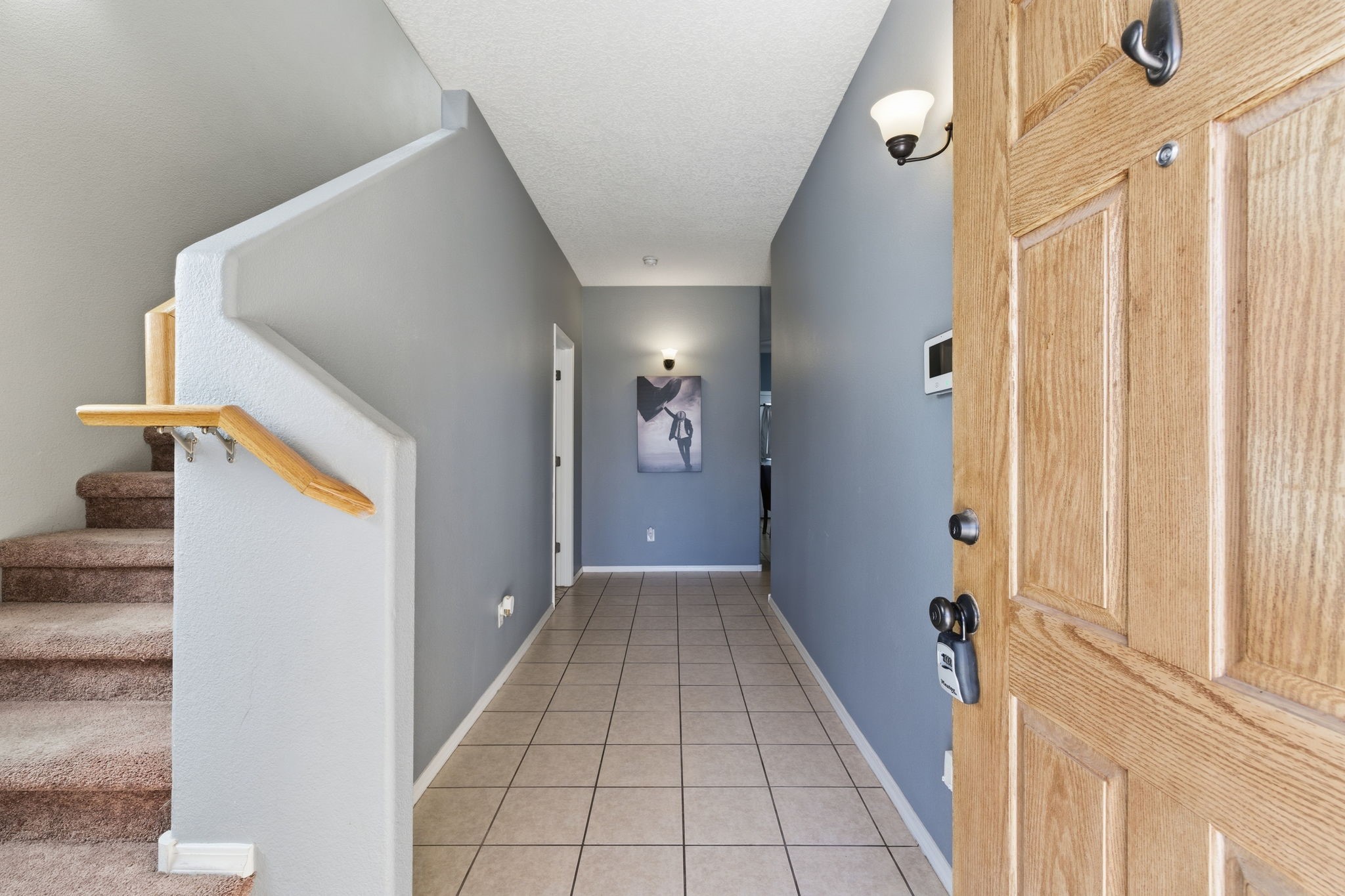 Offered at $535,000 3 Bed 3 Bath 1,843 sq ftBeautifully maintained two-story home built in 2010 with open floor plan and modern finishes. Main level features a bright living area with gas Kiva fireplace, dining space, and kitchen with stainless steel appliances, glass tile backsplash, and tile flooring. Upstairs includes a versatile loft and spacious primary suite with soaking tub, shower, and two walk-in closets.Enjoy outdoor living in the fully fenced backyard with wood pergola, built-in firepit, and storage unit. Additional highlights: refrigerated air, forced air heating, rain barrels, front portal entry, and attached two-car garage. HOA provides access to community park and walking trails.Conveniently located near schools, shopping, medical facilities, Santa Fe Community College, and Genoveva Chavez Community Center, with easy access to I-25 and Hwy 599. Move-in ready and full of Santa Fe charm!