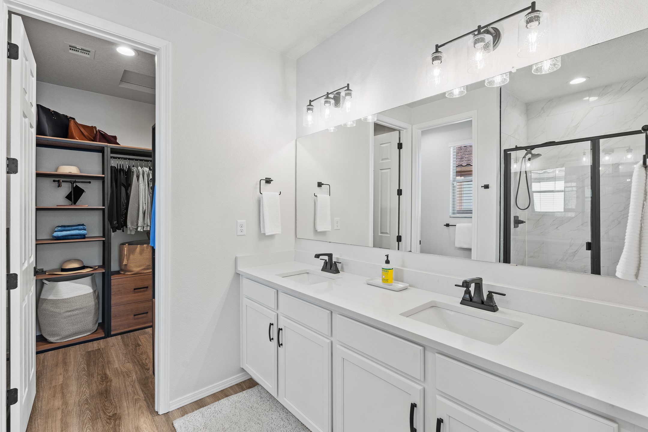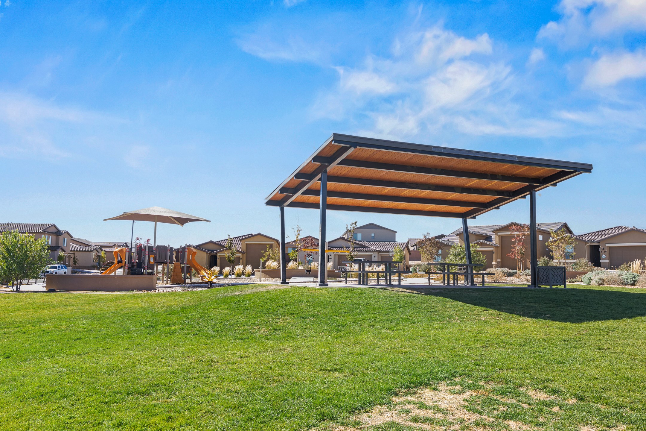 This better than new Copper plan includes an open floor plan with many owner upgrades. 3 Beds plus an office, walk-in pantry and a center island, open dining area and a generous great room. A covered patio for entertaining or just relaxing outside. The private owner's suite with large walk in closet and access to the back patio. You'll have no shortage of space for parking and storing your vehicles with a 2-car garage and an oversized RV garage. $35k upgraded large corner lot fully landscaped, hot tub, heated and cooled garage with Epoxy flooring, upgraded refrigerator, all window coverings. Across from neighborhood park. A master-planned community, indoor and outdoor pools, fitness center, parks, 2,200 acre preserve with hike/bike trails and mountain Views.
