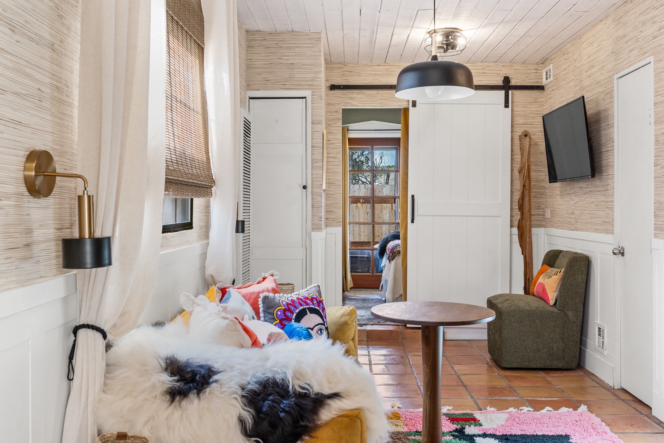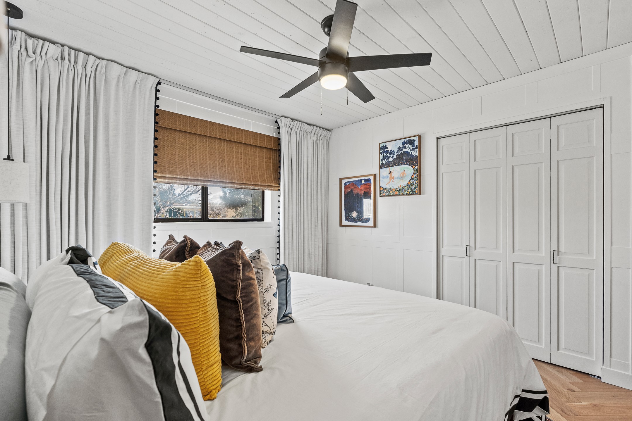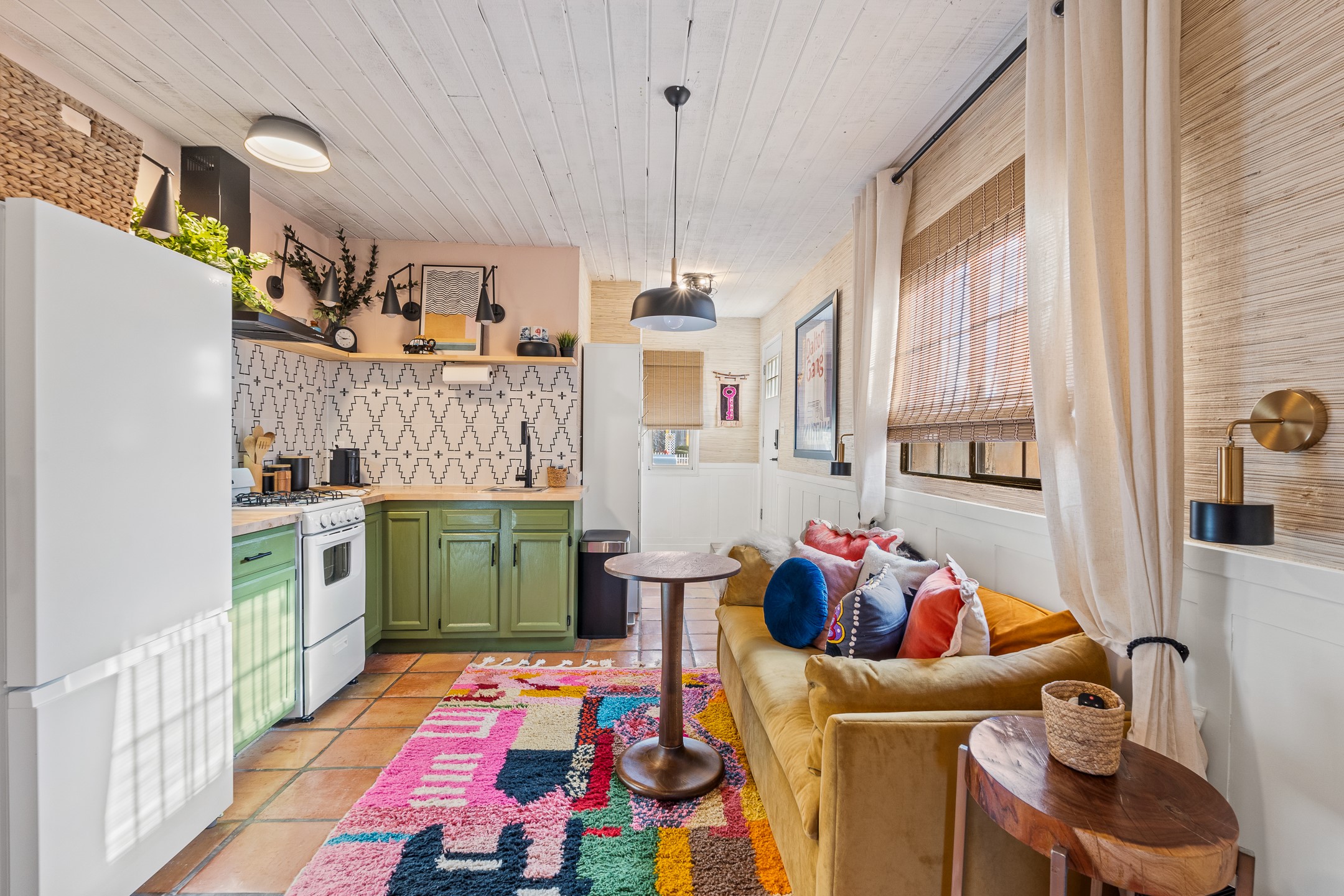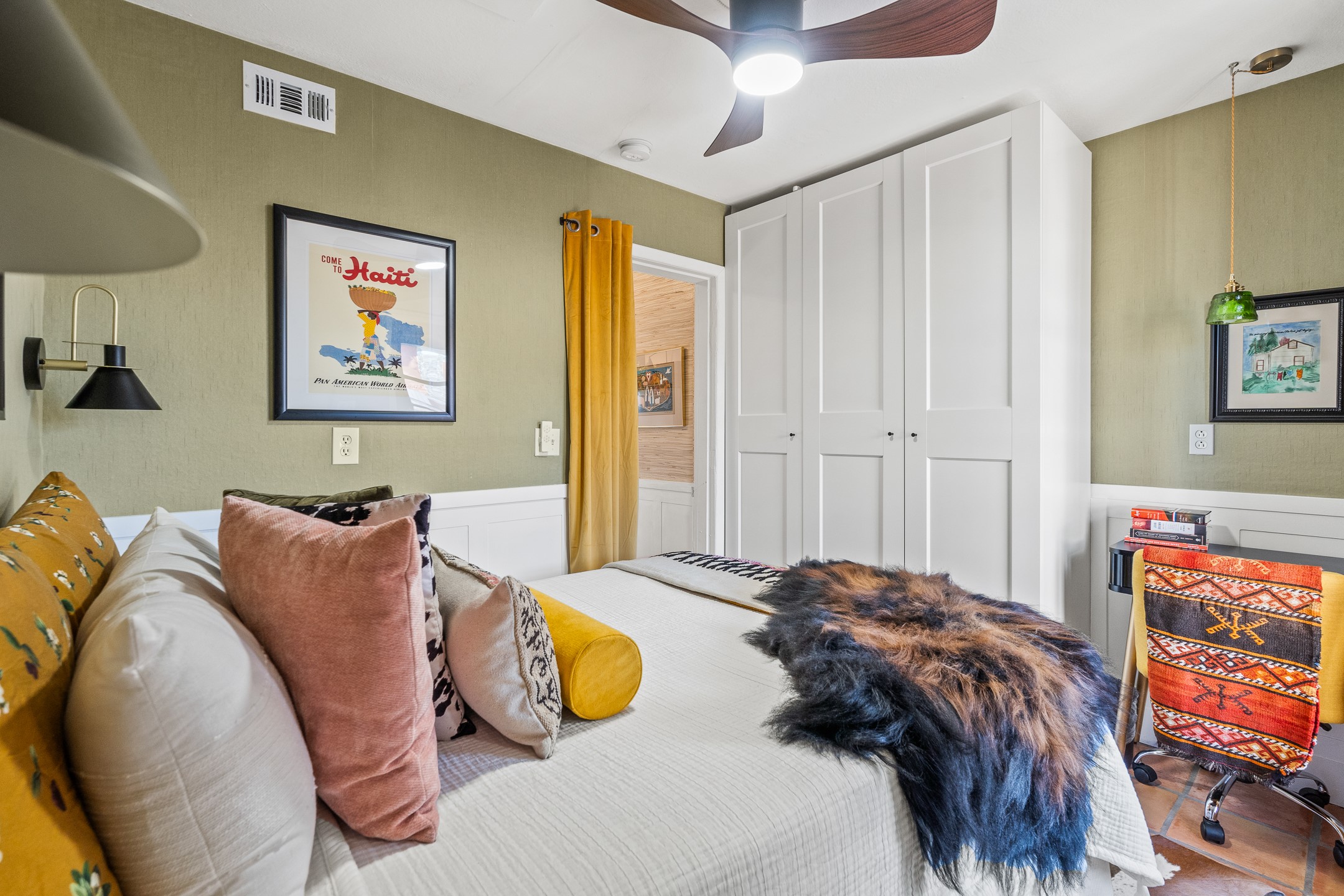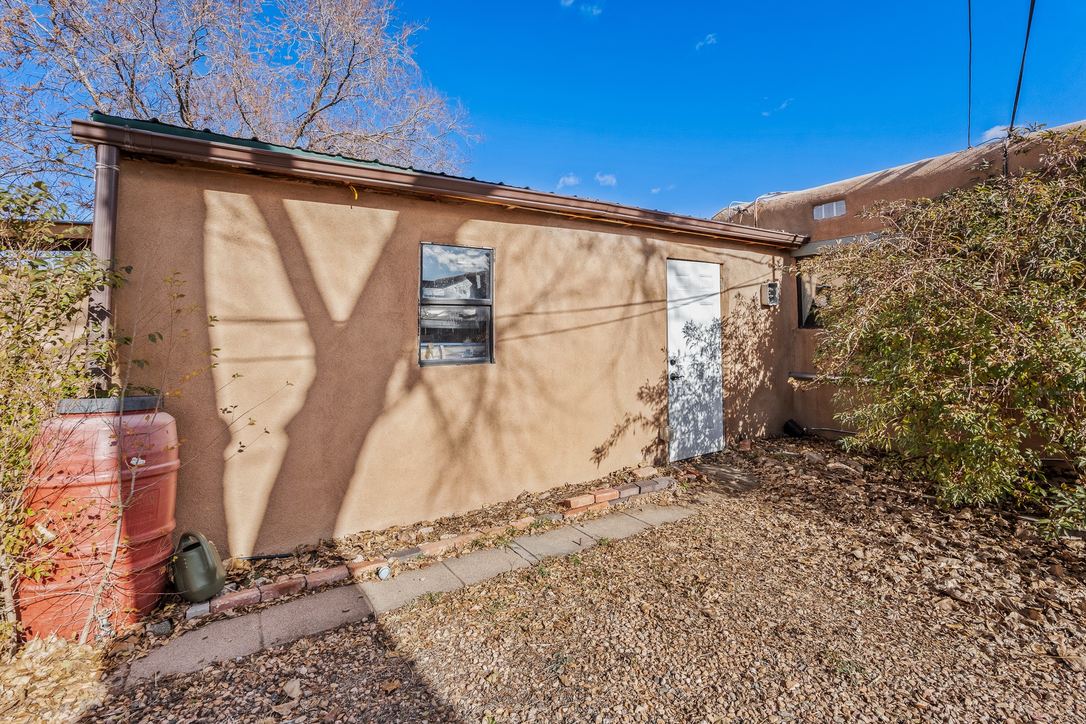 Completely remodeled and stylishly true to its mid-century roots, this three bedroom one bath house in Barrio La Canada with an attached one bed one bath is sure to wow. So much in this house has been improved or upgraded, there's nothing left to do but enjoy. The long list of upgrades includes but is not limited to new HVAC, appliances, kitchen counter tops, doors, flooring, walls and ceilings, as well as a new electrical panel and a roof sealing. The attached casita has its own entrance and yard and is just as charming as the primary. A shed in the back provides extra storage. Two miles from the plaza and short walk from the Santa Fe River, this move in ready home is convenient to everything. Priced at stated value from a recent (November 2025) appraisal.
