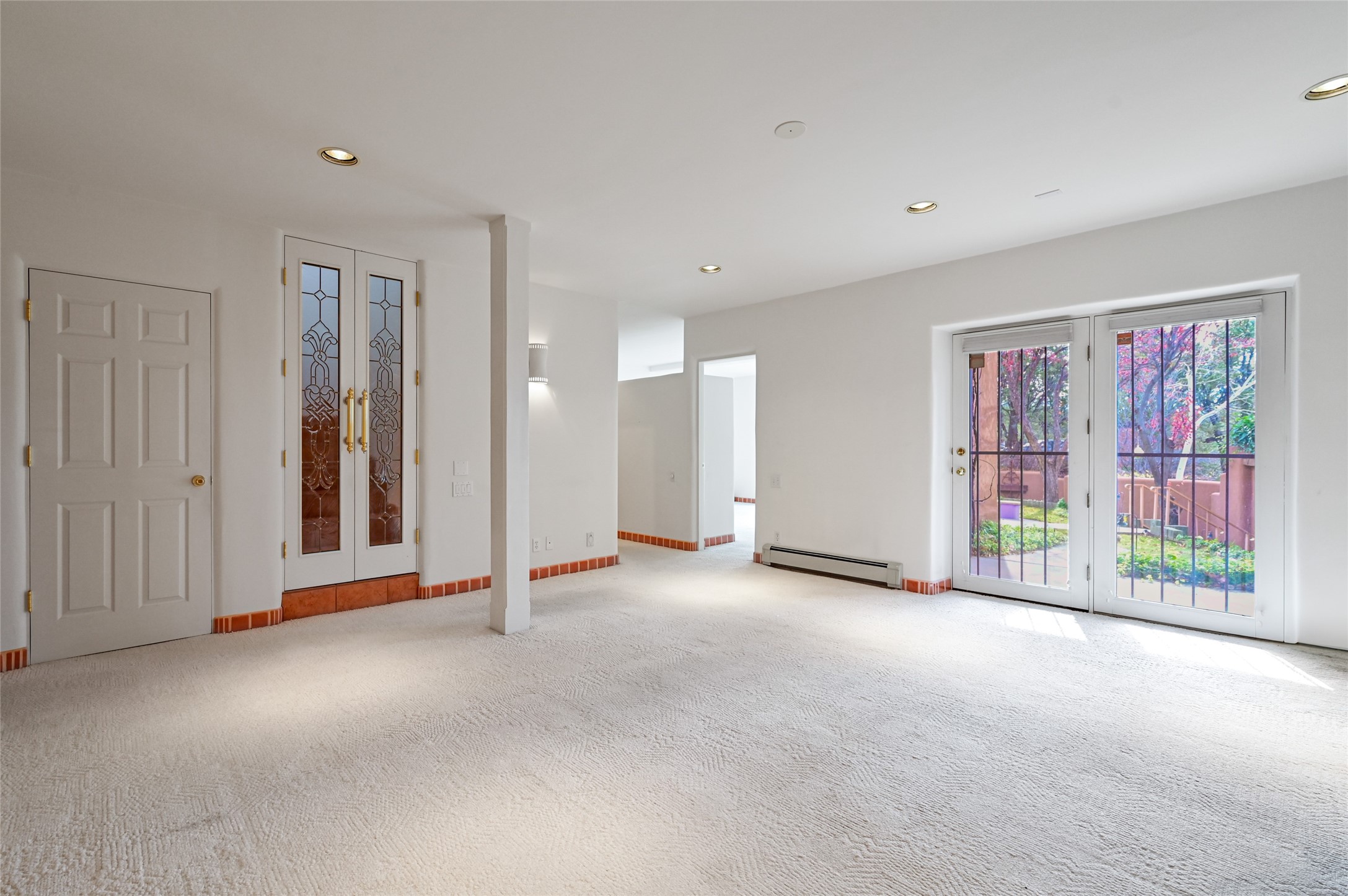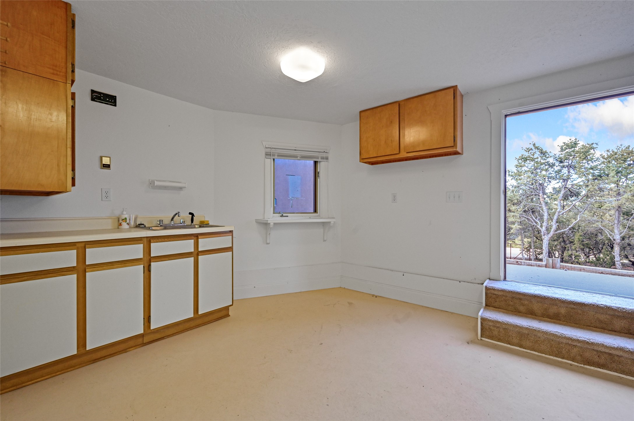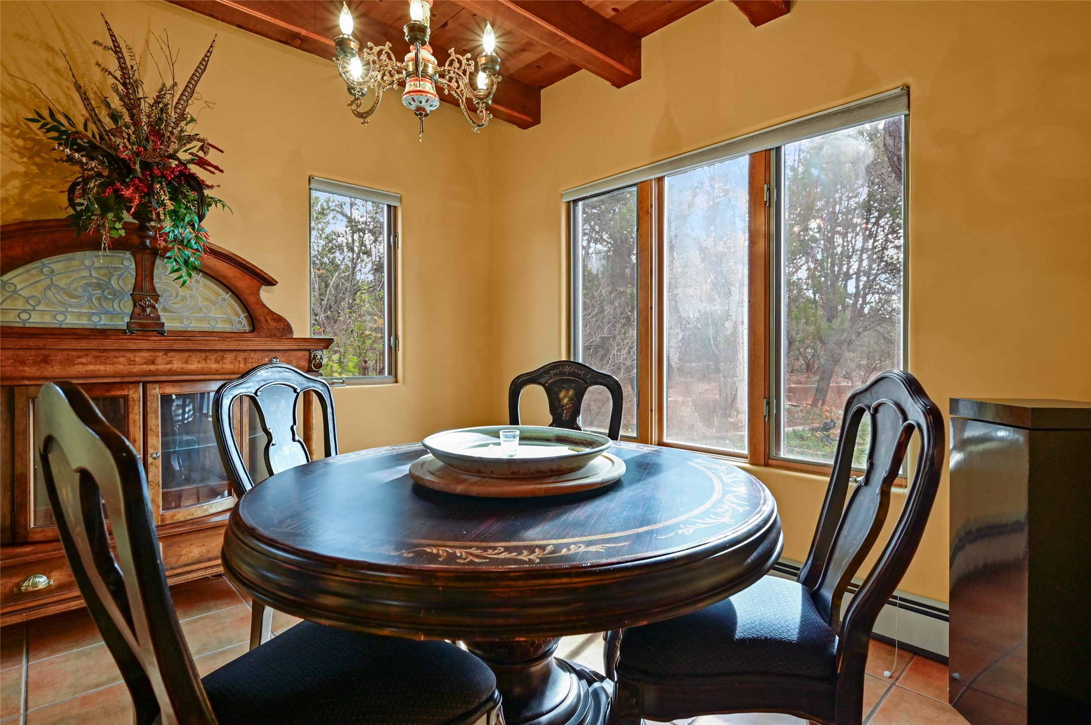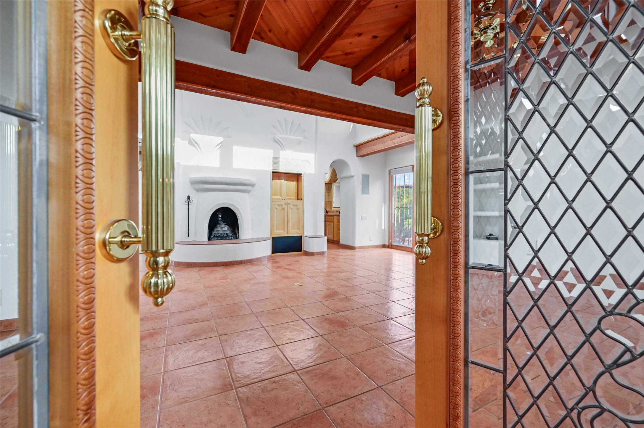 This is a fabulous opportunity to live in a great area and location of the NE side of town that is just minutes to the Plaza and downtown area. Fabulous and long westerly views which includes a beautiful main house, attached guest house, plus attached studio. A large RV Garage plus 3 additional garage bays and lots of additional parking spaces. Private Security entry gate. This home does need some minimal TLC to make it the pristine and cozy home that it is now. The natural light that it has is rarely found in many homes and adds so much to it's charm and character. Easy fit for an on the go professional couple, artist, crafts person, gardener, writer and certainly perfect for entertaining, On City water and has its own Private Well on site.