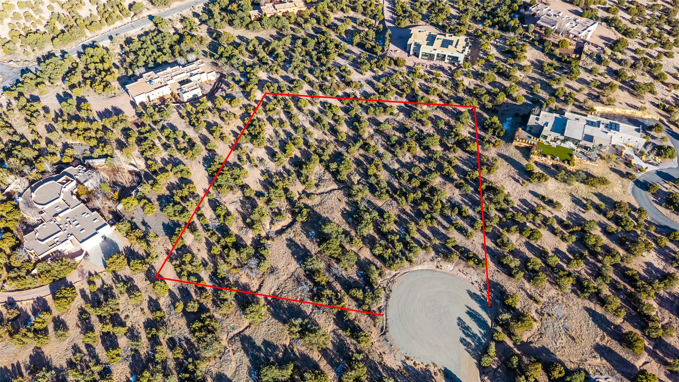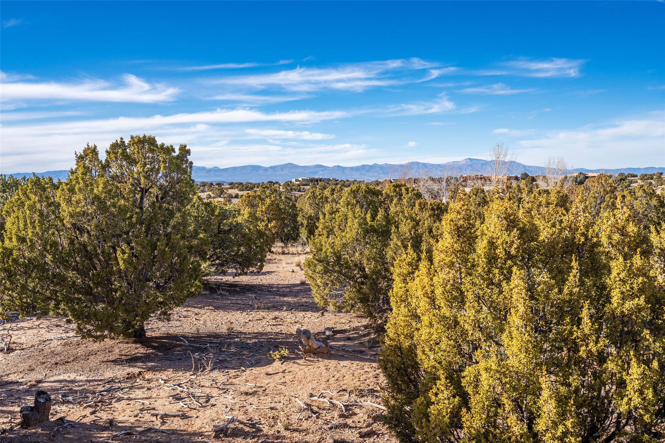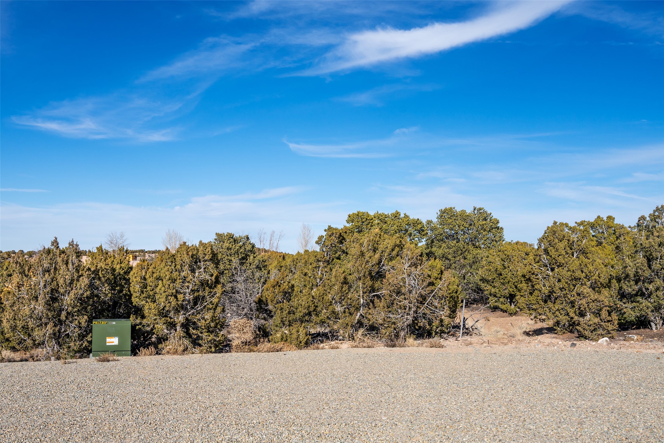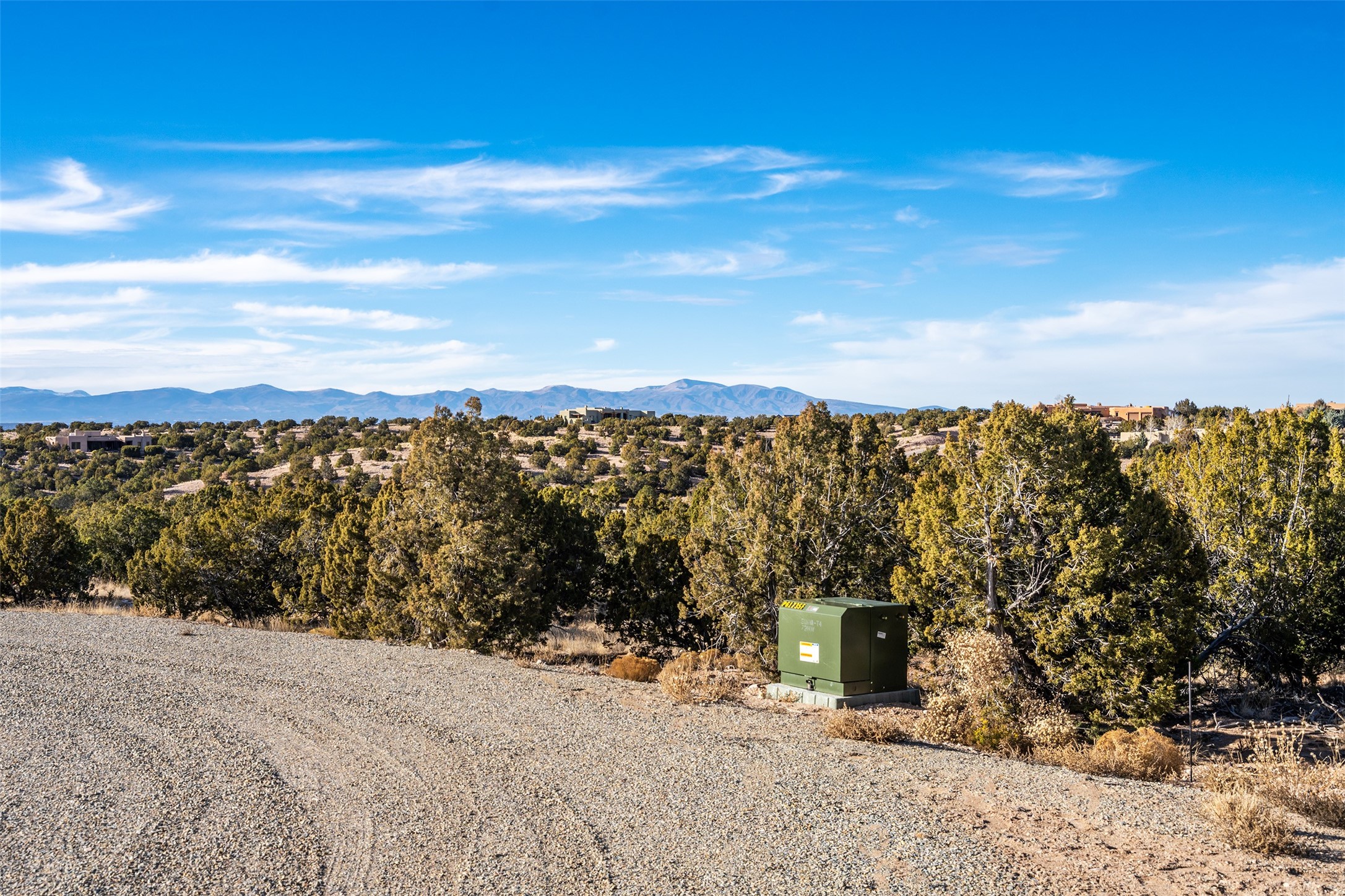 This gorgeous 2.5 acres plot sits at the end of quiet cul de sac and features a gentle slope and panoramic views of the Jemez mountains to the west and the Sangre de Cristos to the east. Serene and tranquil, yet only minutes from downtown- this lot is an ideal location to build your dream home.Price includes a membership to the much desired Las Campanas Country Club. There is a Newly installed transformer on site. No HOA. Shared well.