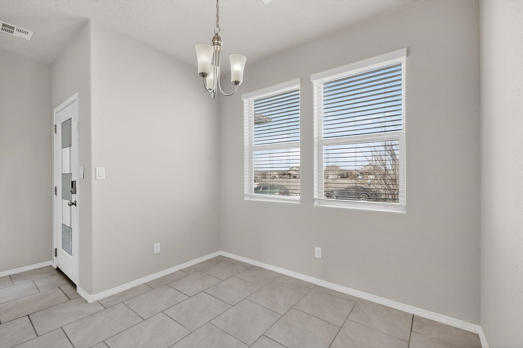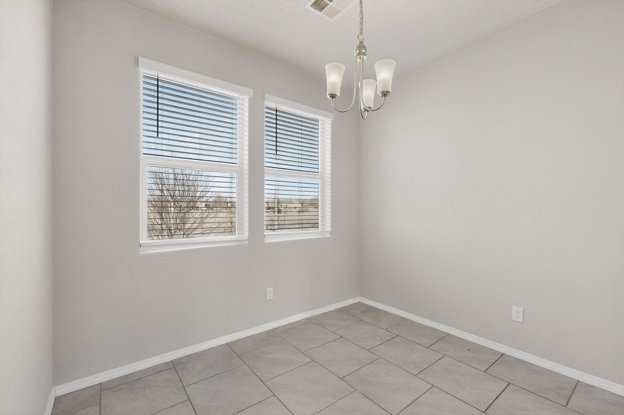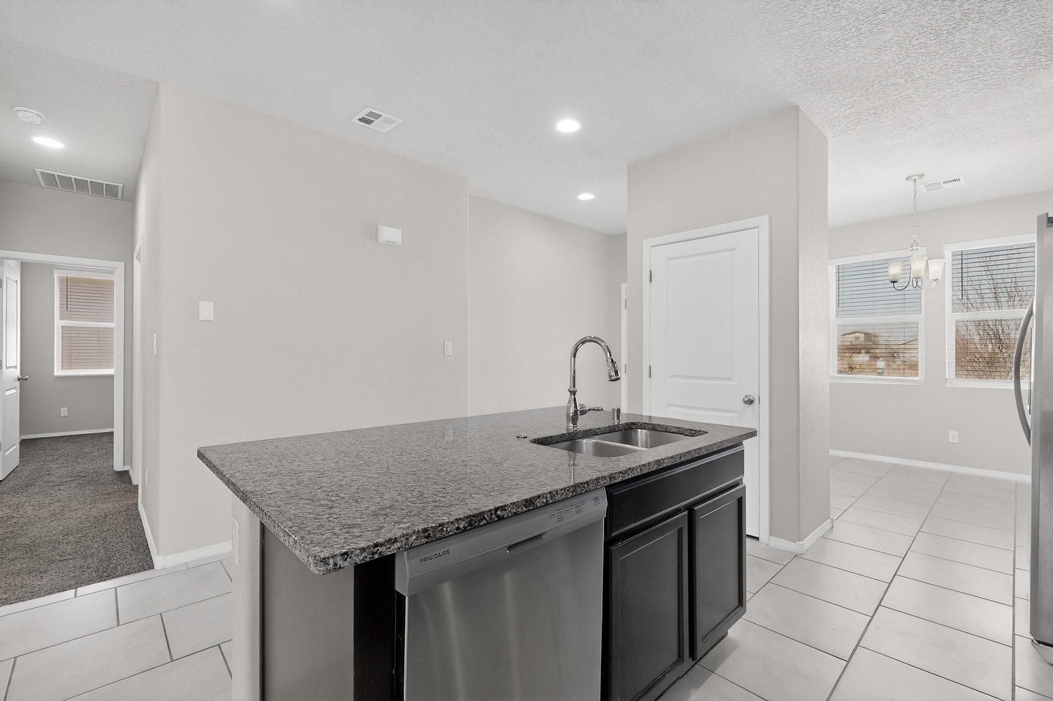 Opportunity is knocking with this 3 bedroom, 2 bathroom single level detached home in the completely sold out Cielo Azul Subdivision. Located across the street from the community open space you will be just steps away from daily walks/strolls, bike rides or walking your 4 legged loved one. Upon entry, the open concept kitchen and living area offer the perfect space to gather. The kitchen is sleek with granite counters, stainless appliances and lots of natural light. Casual eating can be enjoyed at the kitchen island or marvel in the separate dining area with great views of the community park. Wonderful separation of bedrooms allows the primary suite privacy with views to the walled back yard. Move-in ready with a finished garage, tankless water heater, refrigerated A/C, Washer & Dryer and matching stainless appliances. The backyard awaits your landscaping ideas and the location is great with easy access to 599 for both Los Alamos and Albuquerque commuters.