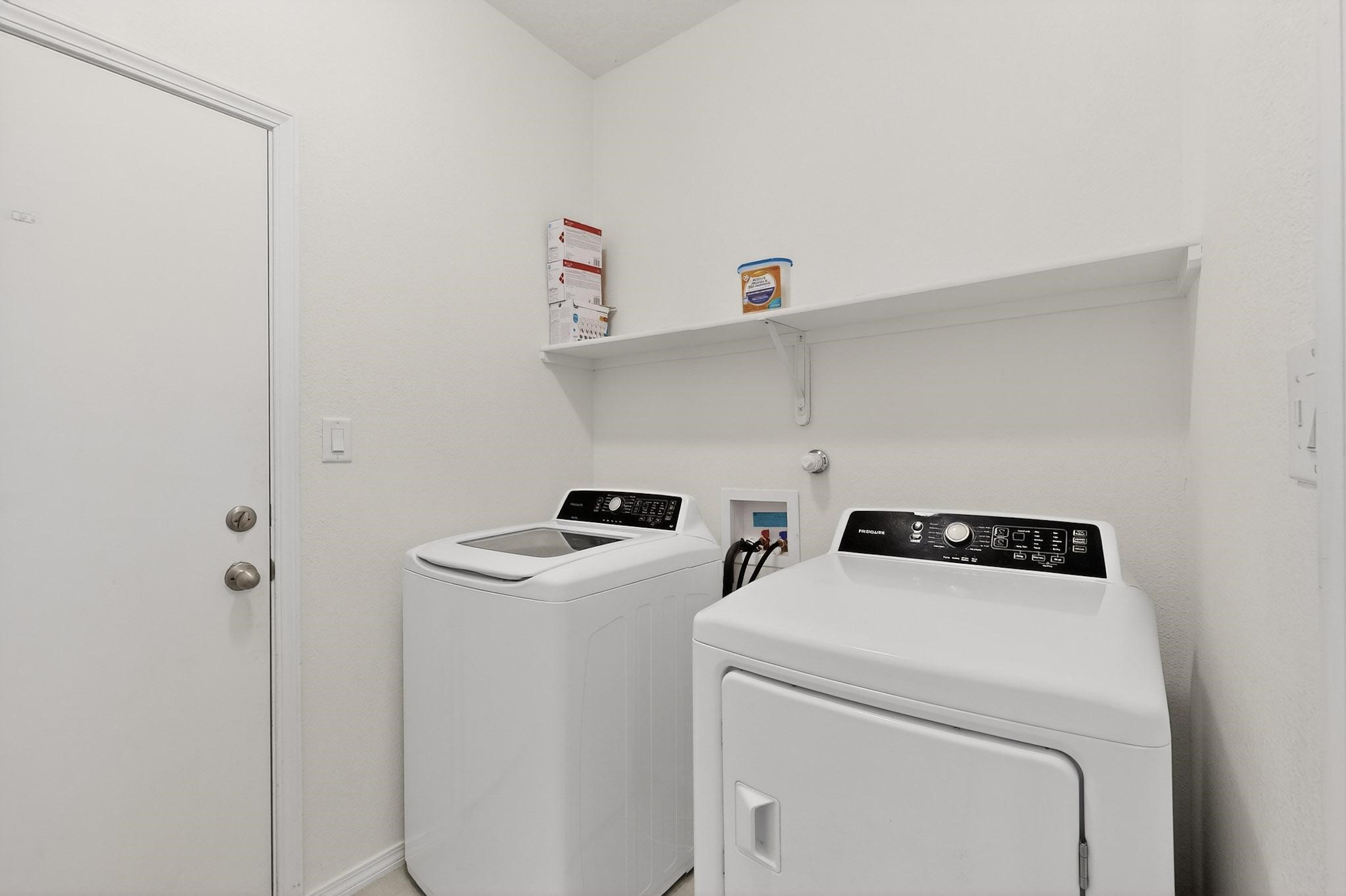 • AppliancesDryer, Dishwasher, Gas Cooktop, Disposal, Microwave, Oven, Range, Refrigerator, Washer