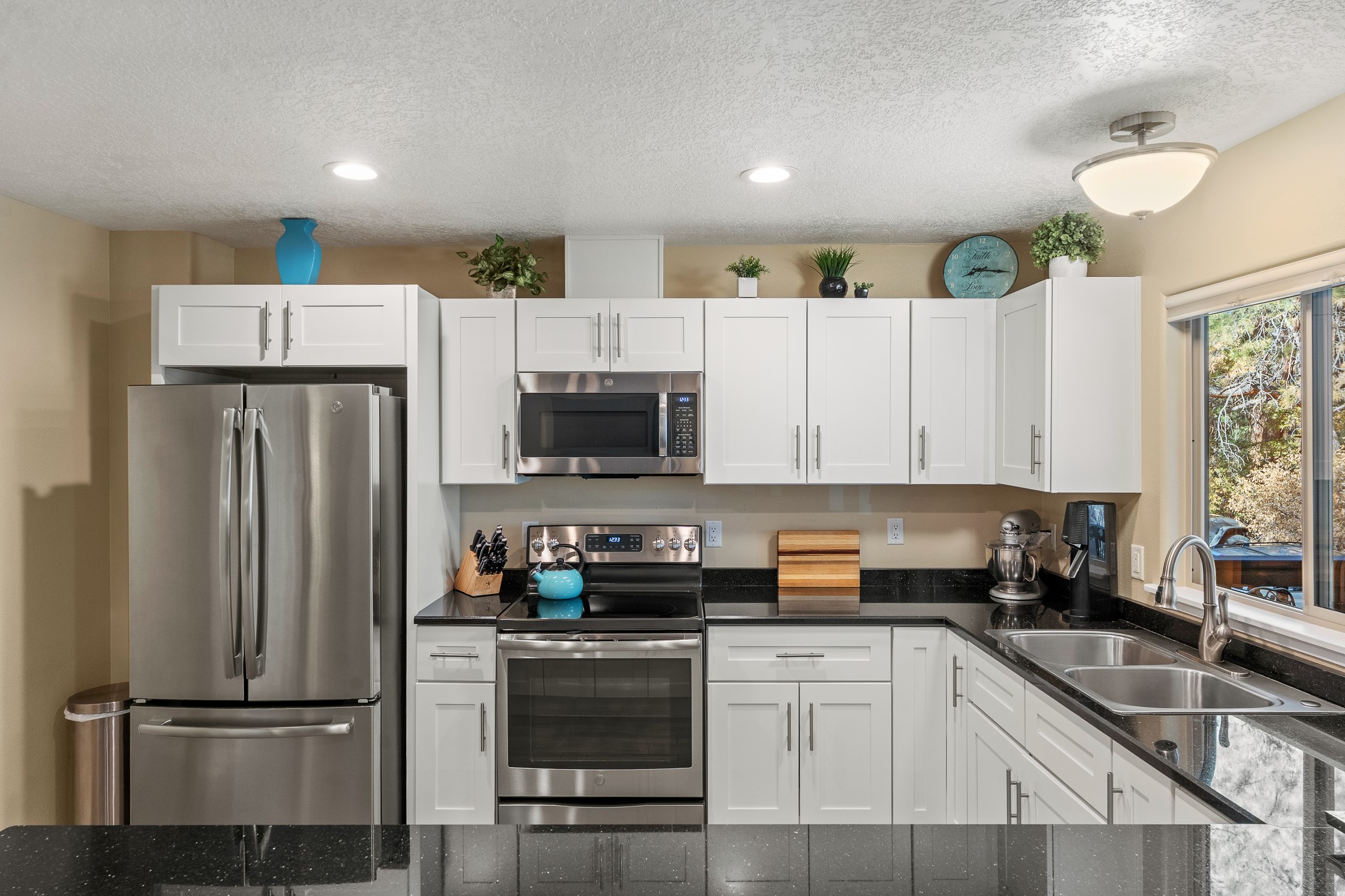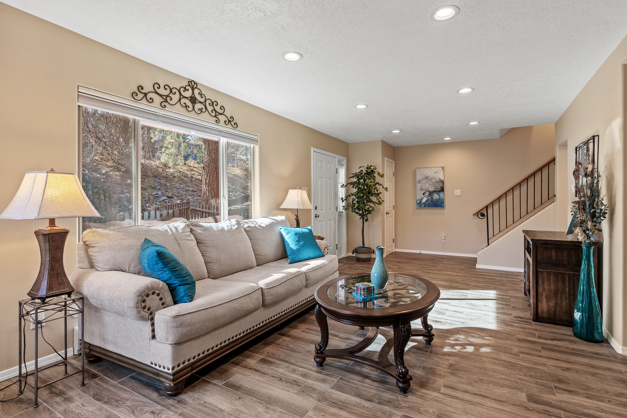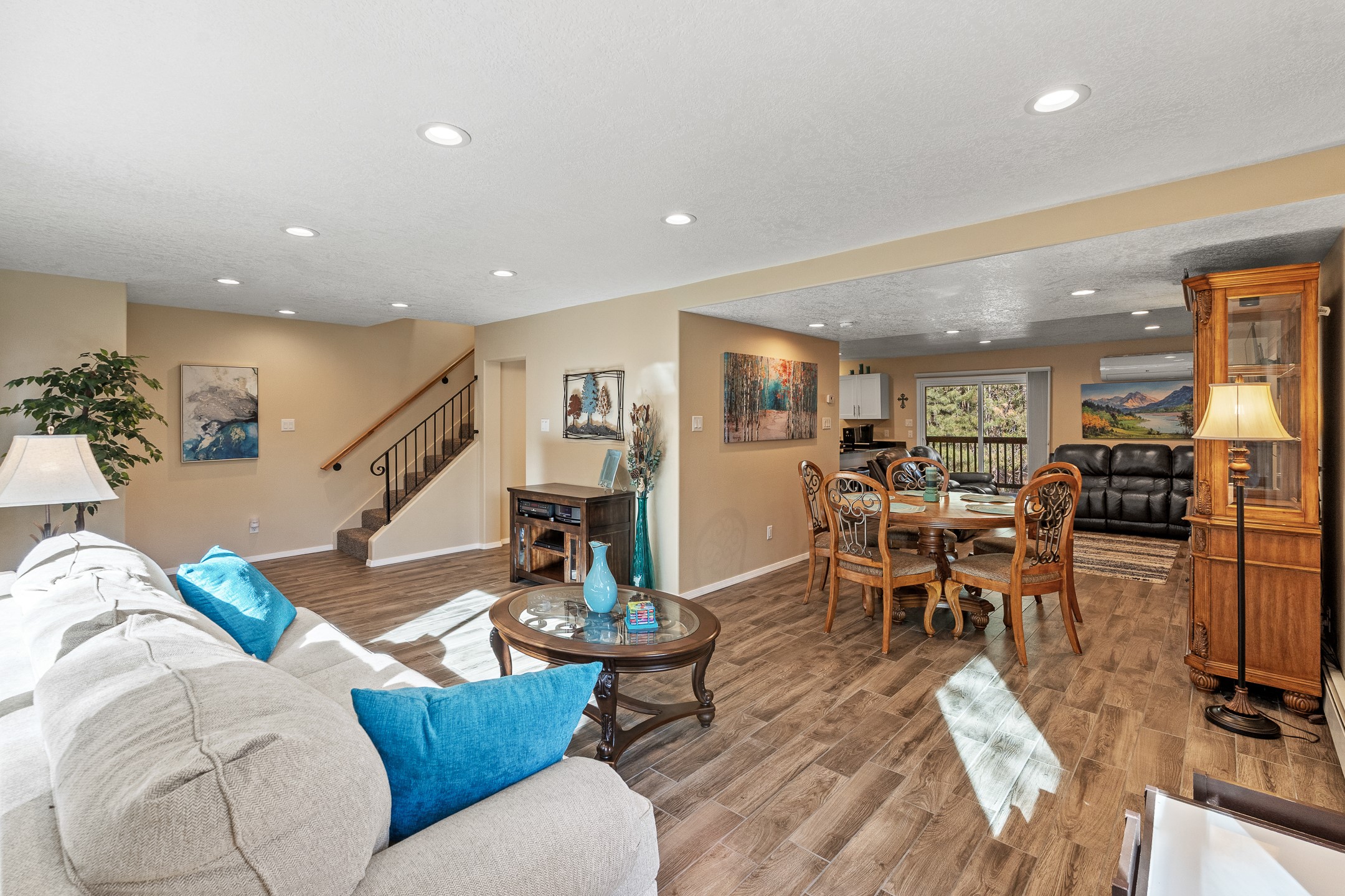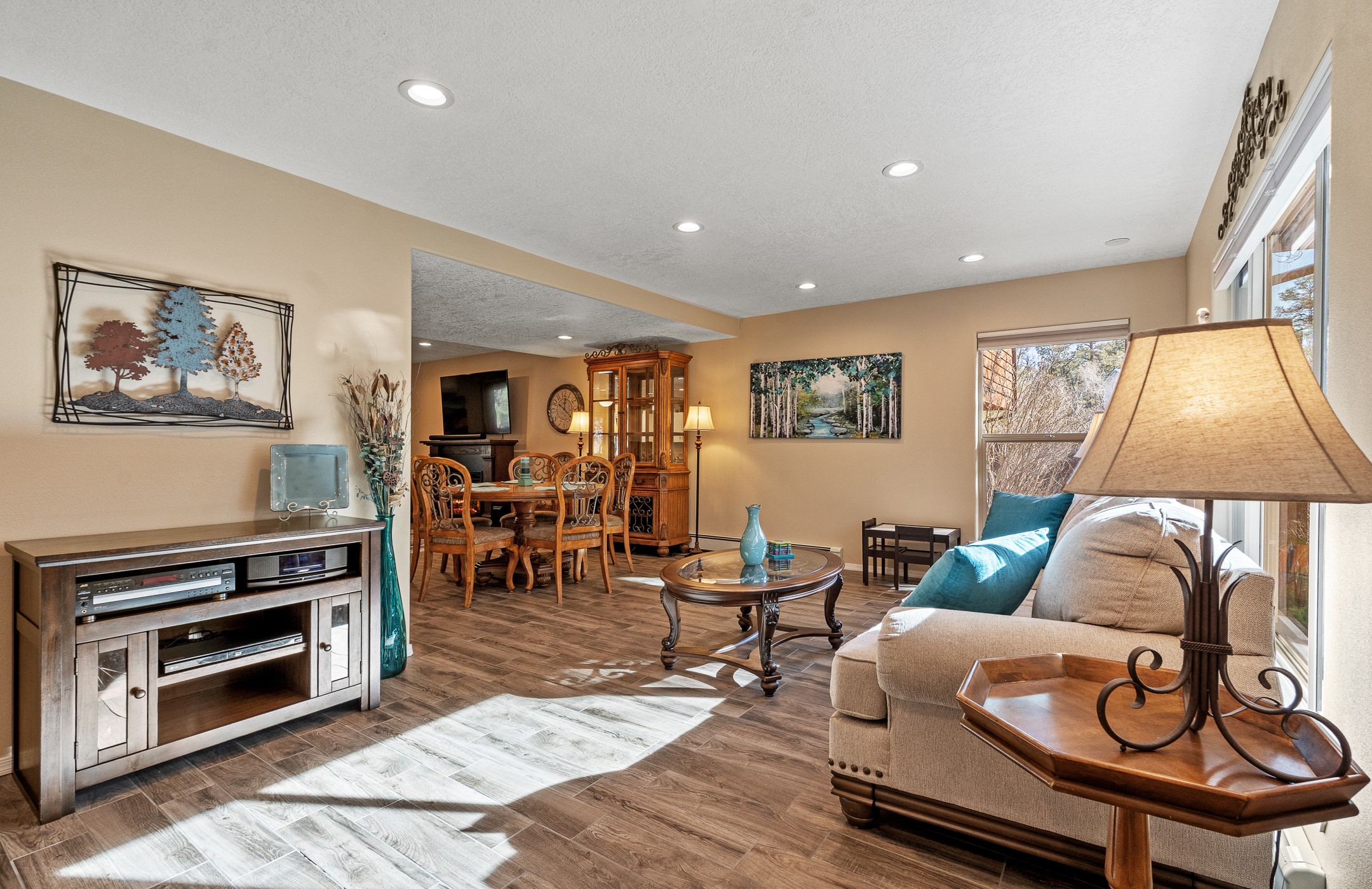 Beautifully remodeled townhome with a desirable multi-level floor plan, multiple decks with scenic views, mini split air conditioning, and a bright loft to top it all off. Welcome to 998 Alamo!Nestled among towering pines, this home offers a peaceful sense of retreat while still showcasing lovely views in North Mesa. Upon entry, you're greeted by updated recessed lighting and flooring that flows seamlessly throughout the main level. Just around the corner, a formal dining area opens to an inviting open-concept layout, connecting the kitchen and living room and extending onto a spacious deck--perfect for entertaining or simply enjoying the tranquil setting. The modern kitchen is equipped with stainless steel appliances, solid-surface countertops, and a charming window over the sink with views of the pines beyond. A conveniently located powder room completes this level.Upstairs, the living quarters await! The primary suite includes an en suite bathroom with a beautifully-tiled, modern shower, as well as a private deck to enjoy views of the night sky. The guest wing features two additional bedrooms, a full bathroom, and a dedicated laundry room.The next level reveals a bright and cheerful loft with large windows, offering flexibility as a home office, reading nook, or additional living space.On the lower level, you'll find a generous recreation area set up with a hot tub--perfect for relaxing after a long day. The spacious two-car garage includes ample storage.This thoughtfully updated home combines comfort, style, and serene mountain living. Don't miss the opportunity to make it yours--schedule a showing today before it's gone!