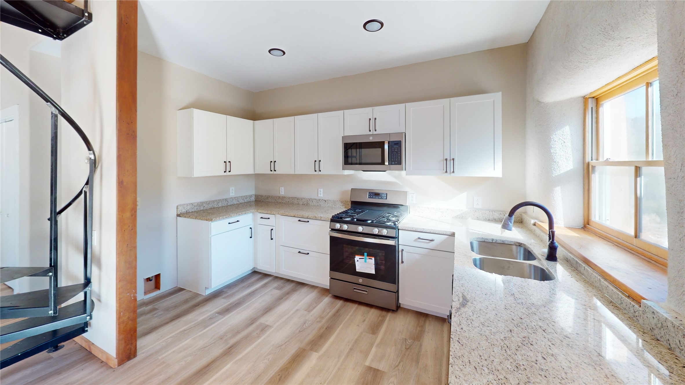 Off-grid living at its finest. Breath-taking panoramic views, quiet and serene amongst the natural flora and fauna of the beautiful, high deserts of New Mexico. 58 acres located outside the historic Village of Cerrillos, nestled between Santa Fe and Albuquerque. This strawbale home has all the amenities. Fully solar-powered home, radiant floor heating, a wood stove, rain catchment system attached to a pitched, metal roof, and an enchanting open-concept kitchen and common area. One master bedroom, laundry room, full bath, and a loft, accessible by a spiral staircase from the common area. There is a detached, insulated building with windows can be used as a studio. Recently renovated at the end of 2025.