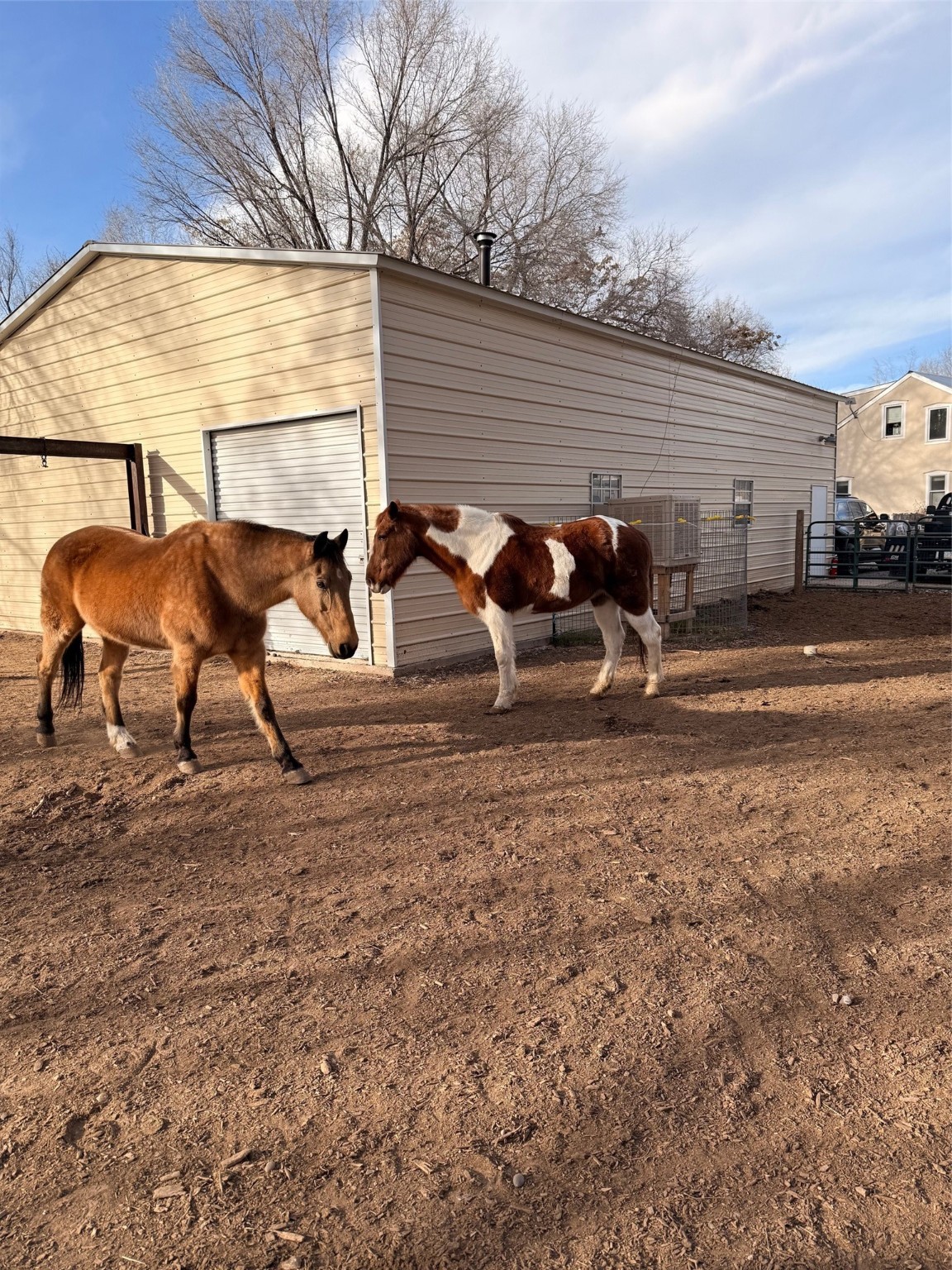 This rare Santa Fe County (Namb area), fenced horse property has water rights, mountain views, lots of shade trees, a barn, a shop, and a greenhouse. Situated on 1.389 lush, irrigated and fenced acres, this 3-bedroom, 2-bath, custom northern NM style home offers 2,196 sq ft with refrigerated-air, HVAC, ceiling fans, vaulted pine ceilings, exposed vigas, solid ash hardwood floors,and a spacious loft for hobbies or relaxing. Open living area features high-efficiency Acucraft wood-burning fireplace insert. Kitchen includes granite countertops, island, custom cabinets with pull-out shelving, wine storage, and quality appliances. Primary suite offers walk-in closets, spa-style bath with air-jetted tub, and natural travertine tile. Private guest suite includes separate exterior entrance and ensuite bath with travertine tile and cave horse art accent tiles by a local artist. Outdoor living features flagstone portals and walkways, ceiling fan, 1620 Trex deck, patio with fire pit, mature landscaping with drip irrigation, fruit trees, 1220 greenhouse, raised-bed garden, solar-powered gate, perimeter fencing (partial latilla), RV trailer parking and horse trailer parking. Horse amenities include grassy fenced turnout, 3035 three/four stall barn with partially insulated feed/tack room, huge area for hay storage, large corral, and ability to ride out from the property on shady trails (also Bureau of Land Management access within 3 miles). The 3045 metal building "dream shop" features three roll-up doors, reinforced slab for heavy-duty car lift installation, 110V and 220V electricity, workbench with lower shelf, generous fluorescent lighting, and two overhead piping systems (shop vacuum and compressor). All of this plus deeded acequia water rights and a private well. This unique offering--just off the High Road to Taos--is set against beautiful views of Sacred Heart Church, Santa Fe Ski Basin, and Santa Fe Baldy, just minutes from Pojoaque and an easy drive to Santa Fe and Los Alamos. Bring all of your animals, and move right in! Come visit and you will want to stay forever!