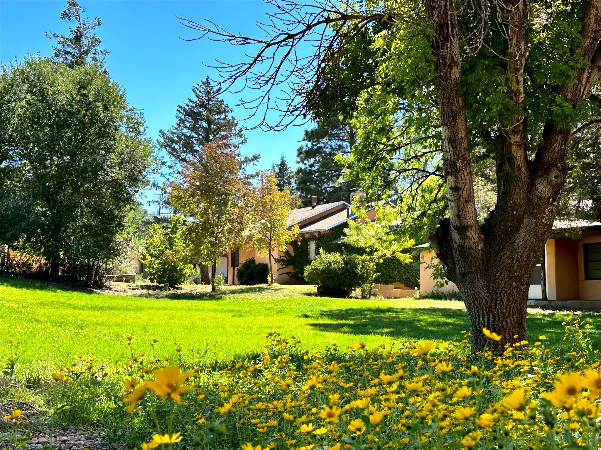 The finest of the remaining single-family homes in this downtown core district gated communities. Plaza del Monte represents a lifestyle that is seldom found on the east or north side of the City Different. Get in on the ground floor of this unique opportunity. It will only get better as time goes on. Mid-Century Modern with a contemporary twist. This 2 bedroom, 2 bath home has a sun filled main living area, a sunroom that opens onto a fabulous large outdoor yard, waiting to be landscaped to complete the masterpiece this home offers. Some photos have been virtually staged.