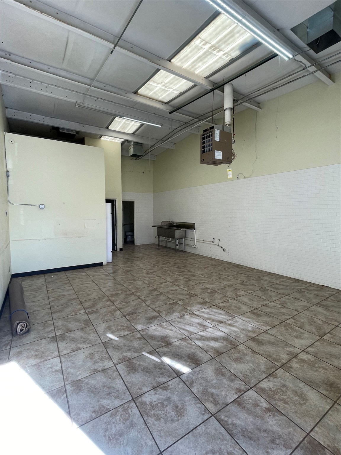 Elevate your business in this bright, adaptable 660-square-foot commercial suite. Unit C balances industrial utility with a clean, professional aesthetic, featuring an open floor plan, durable tile flooring, and soaring ceilings. Overhead skylightsflood the space with natural light, creating an inviting atmosphere perfect for a workshop, studio, or small-scale distribution hub. Designed for efficiency, the unit includes a large three-compartment stainless steel sink and a private restroom. Storage is a highlight, with a dedicated interior office and a bonus mezzanine loft--accessible via a pull-down ladder-- ideal for managing inventory. Complete with wall-mounted heating, this well-located space offers exceptional value for entrepreneurs seeking a functional and inspiring home for their work.