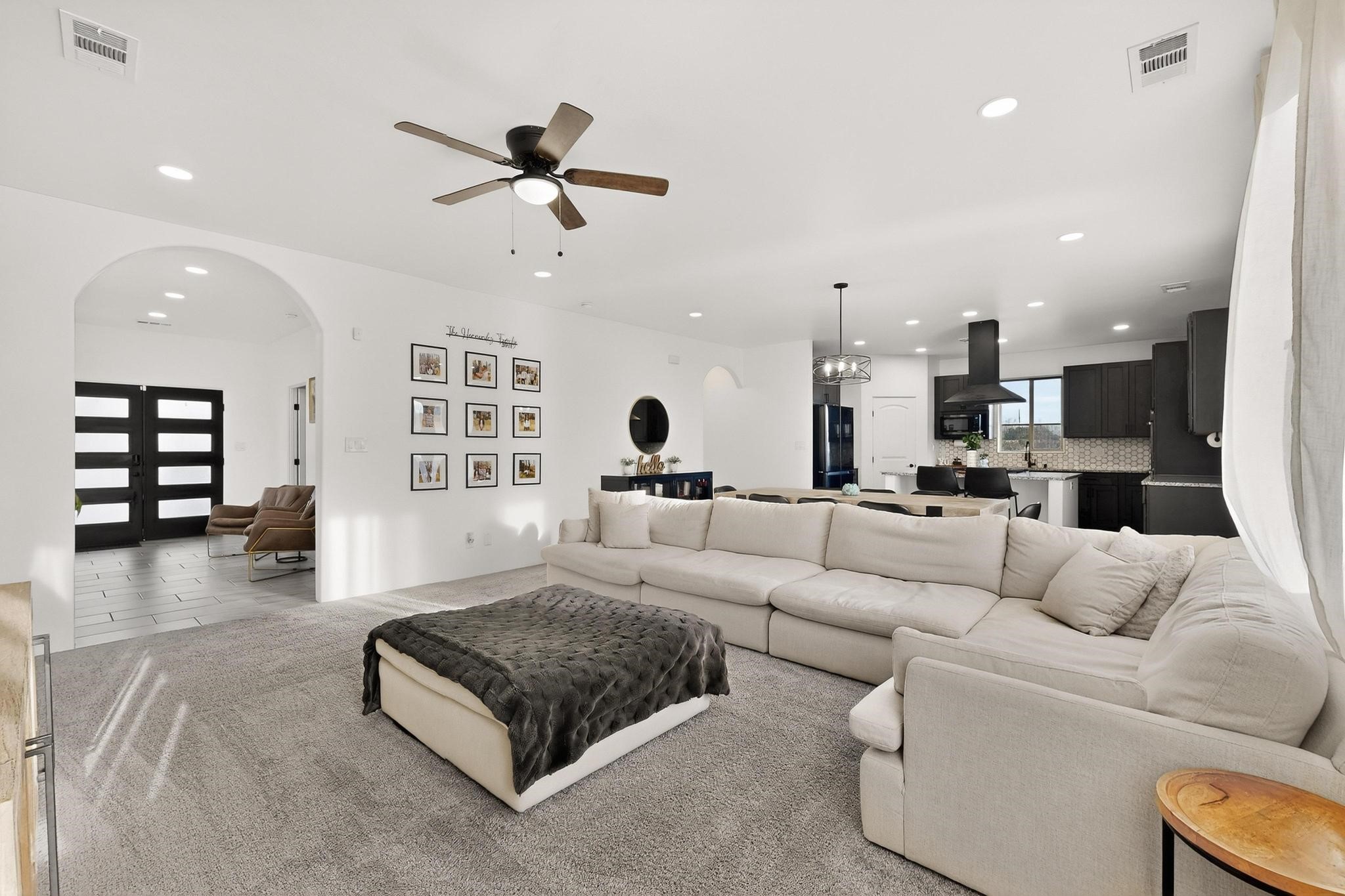Welcome to 3930 Jaxson Lane, a beautifully appointed turnkey home perfectly positioned on a desirable corner lot in Santa Fe. Just minutes from Hwy 599 and Santa Fe Place Mall--with easy access to Target, Starbucks, and Albertsons--this property offers the ideal blend of comfort, convenience, and modern living.Featuring 5 spacious bedrooms Plus Bonus Flex Room and 3 full bathrooms, this home provides exceptional flexibility for families, professionals, guests, or home office needs. The thoughtfully designed layout includes an inviting open loft, perfect for movie nights, a play area, or a relaxing retreat.The heart of the home is the gourmet chef's kitchen, equipped with three ovens, a sleek dark stainless steel refrigerator and microwave, and high-end finishes--making holiday gatherings and entertaining effortless. Energy-efficient appliances and HVAC add to the home's smart, modern appeal.Elegant bronze finishes and striking double doors at both the front and back flood the home with natural light and create a warm, welcoming atmosphere throughout. Two bathrooms feature beautiful tiled walls, offering a spa-like experience for everyday living.Step outside to enjoy a large backyard ideal for entertaining or quiet evenings, complete with a private hot tub for ultimate relaxation. The private balcony off the primary bedroom is a peaceful retreat--perfect for morning coffee or unwinding at the end of the day.Additional highlights include a dedicated laundry space upstairs, a large driveway accommodating up to six vehicles, and a 3-car garage with EV charger providing ample space for parking, storage, and hobbies.With a convenient 45-minute commute to both Los Alamos and Albuquerque, this home delivers the charm of Santa Fe living with excellent regional access.Filled with warmth, comfort, and thoughtful upgrades, 3930 Jaxson Lane is a home designed to be lived in and loved. Don't miss the opportunity to make this exceptional property your own.